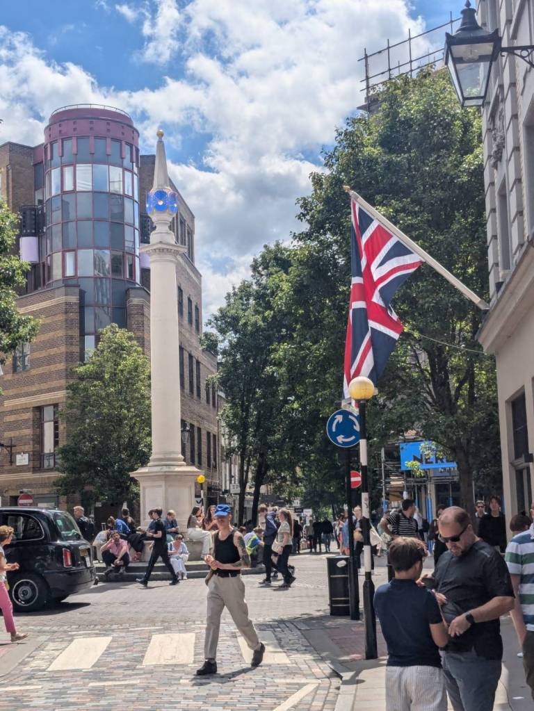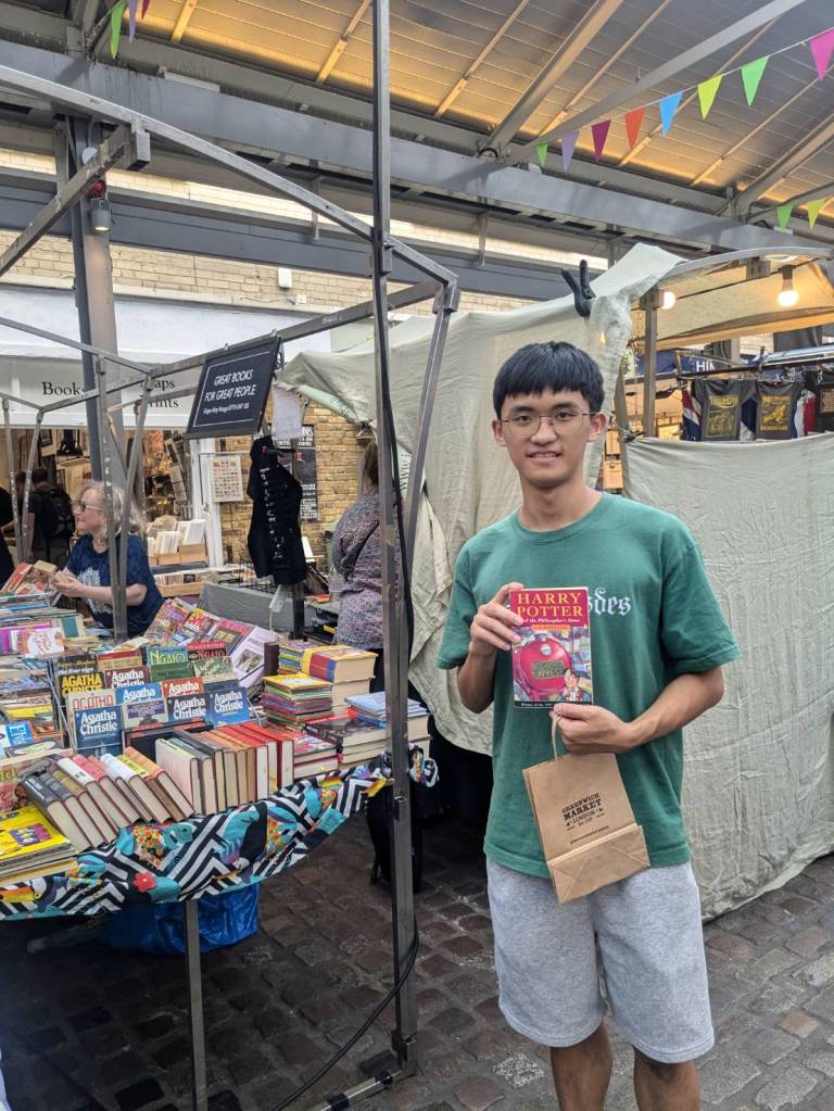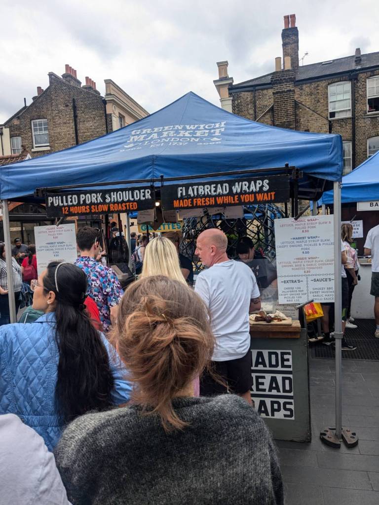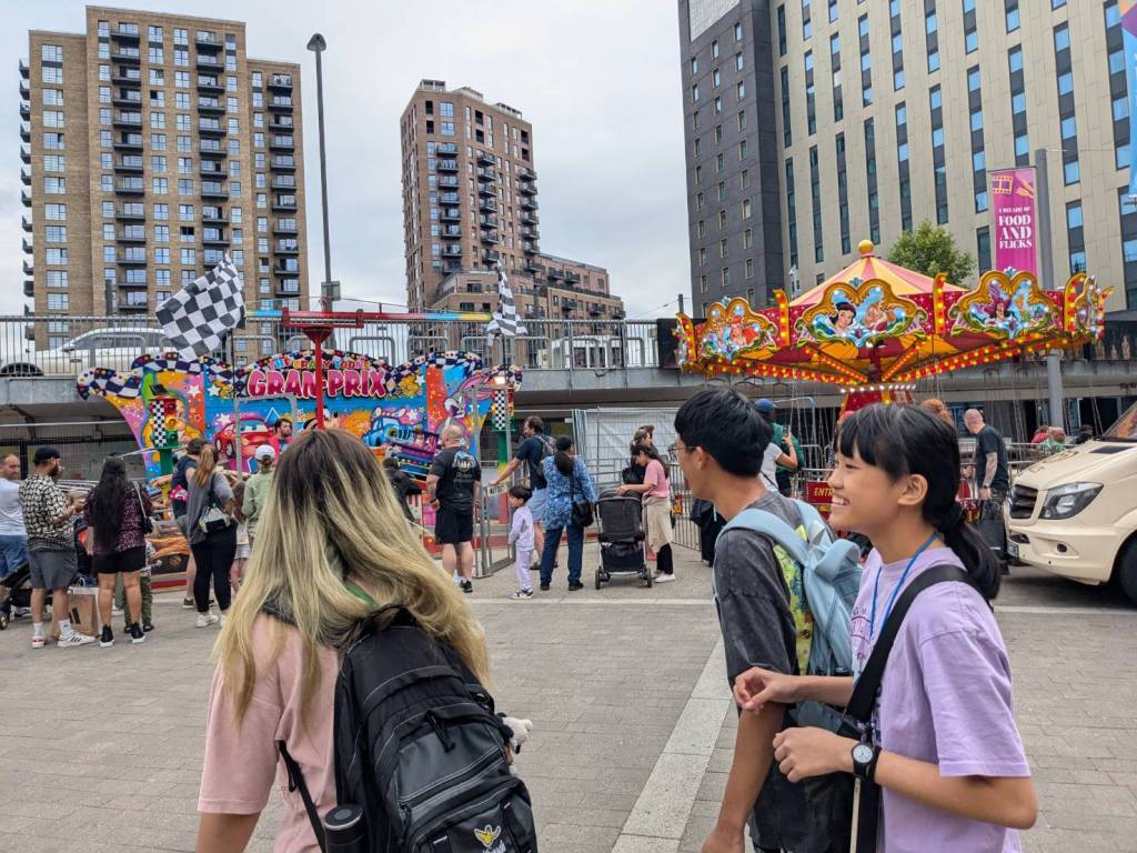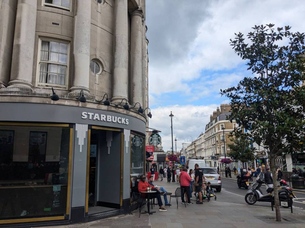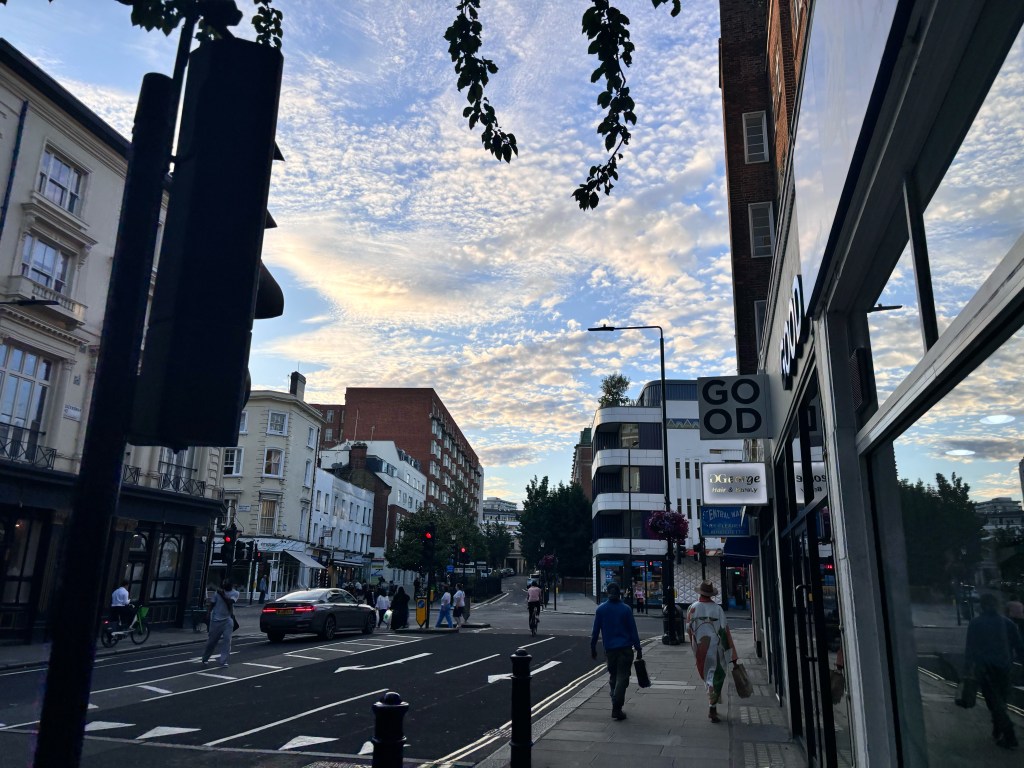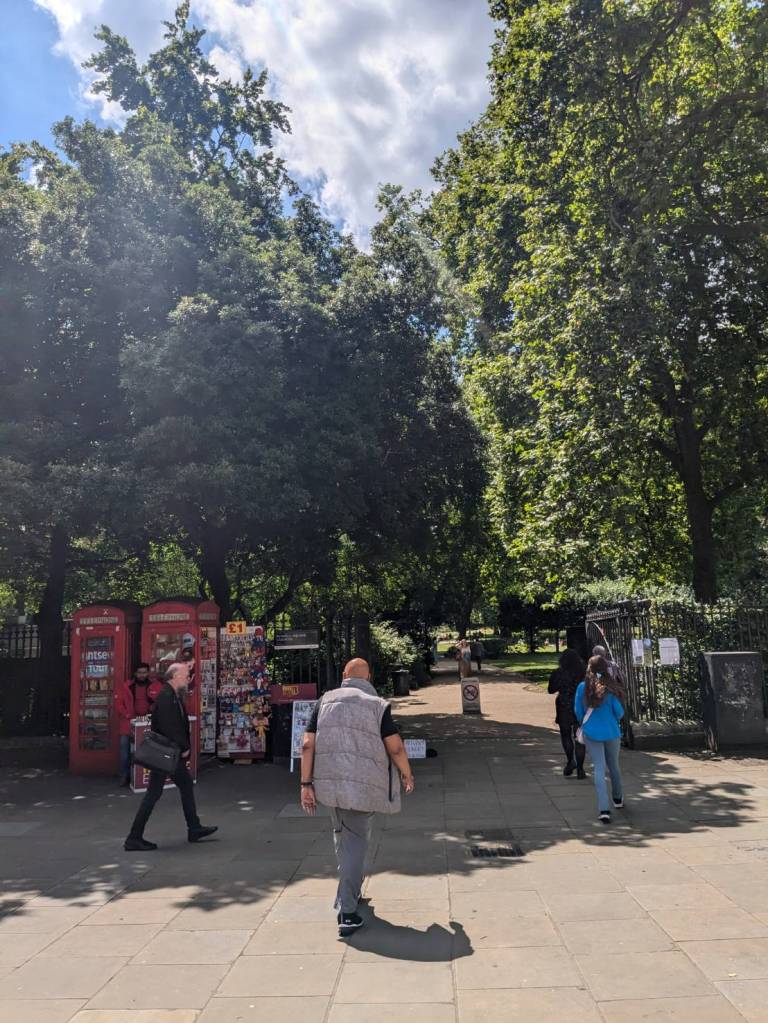 穿越「波多貝羅市集」(Portobello Road Market),在這條熱鬧的在地多元市集,販售各式復古商品、街頭小吃、紀念品及琳瑯滿目的商品,主要是開在週六,但今天週五也有蠻多商家與人潮的。