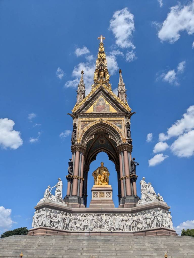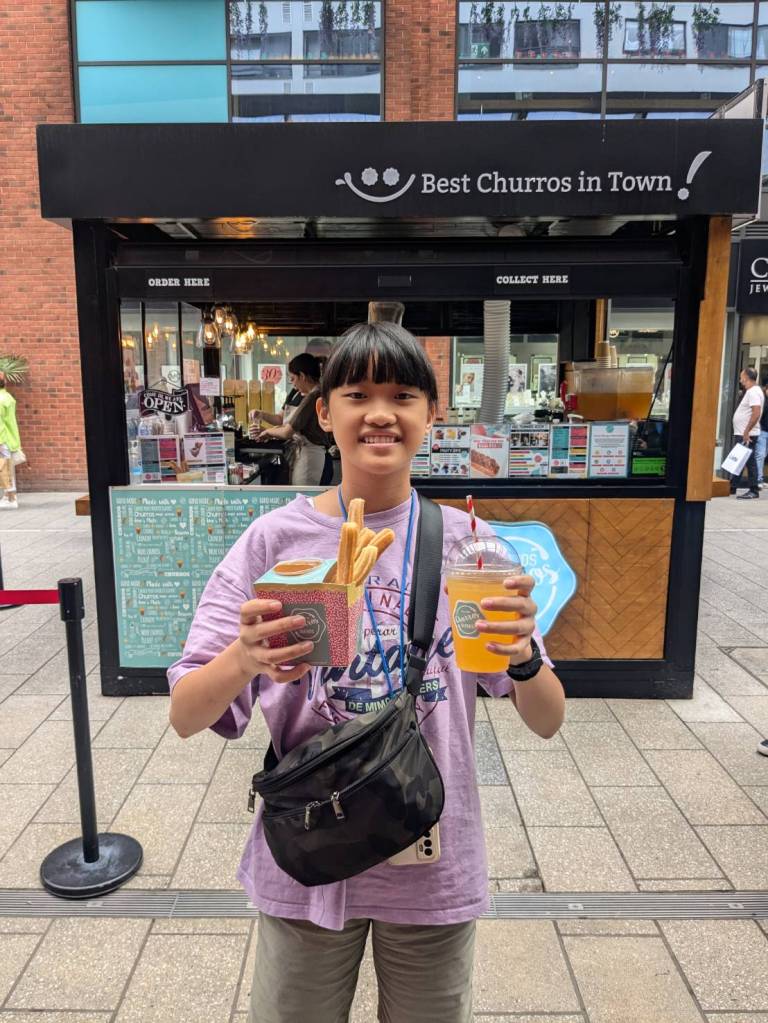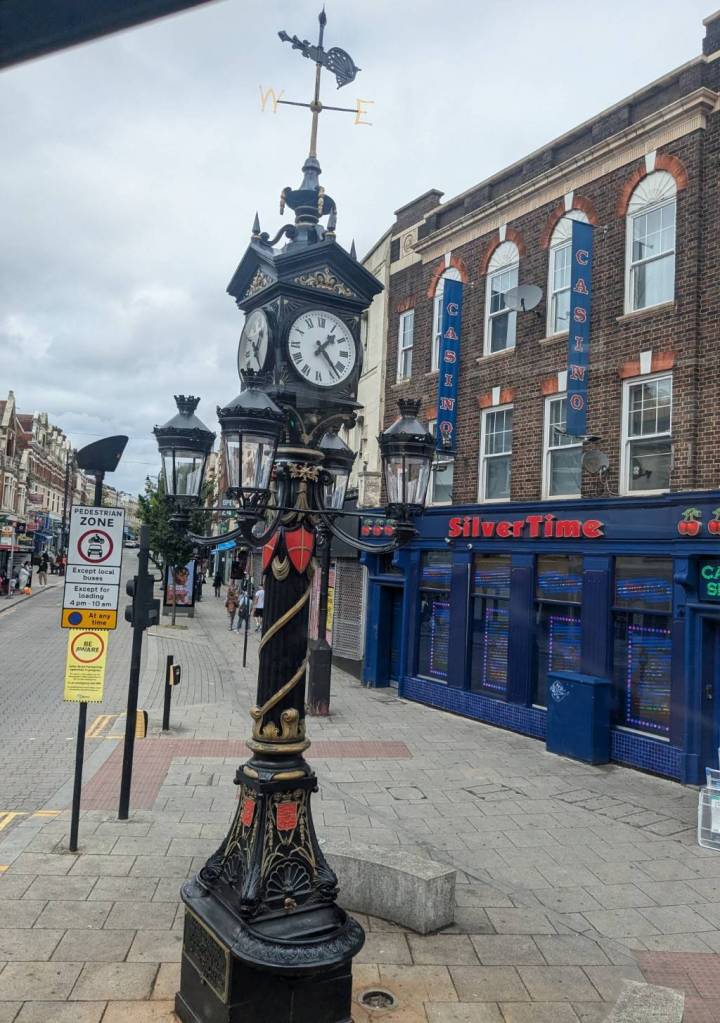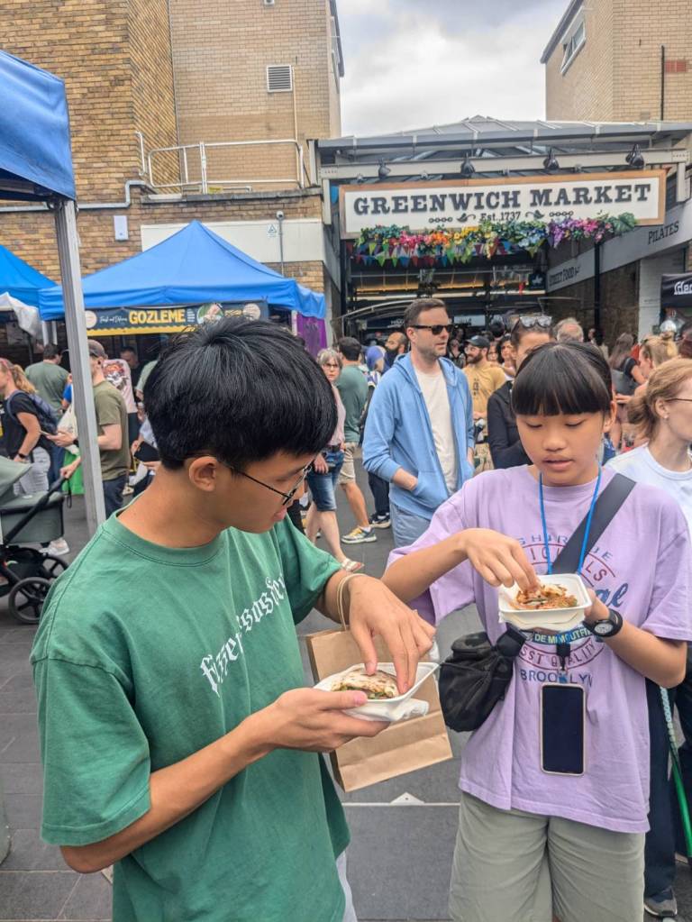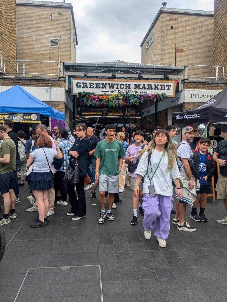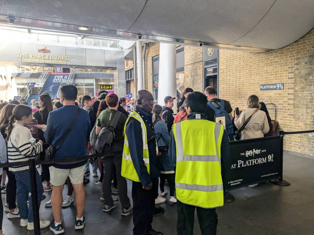 穿越「波多貝羅市集」(Portobello Road Market),在這條熱鬧的在地多元市集,販售各式復古商品、街頭小吃、紀念品及琳瑯滿目的商品,主要是開在週六,但今天週五也有蠻多商家與人潮的。