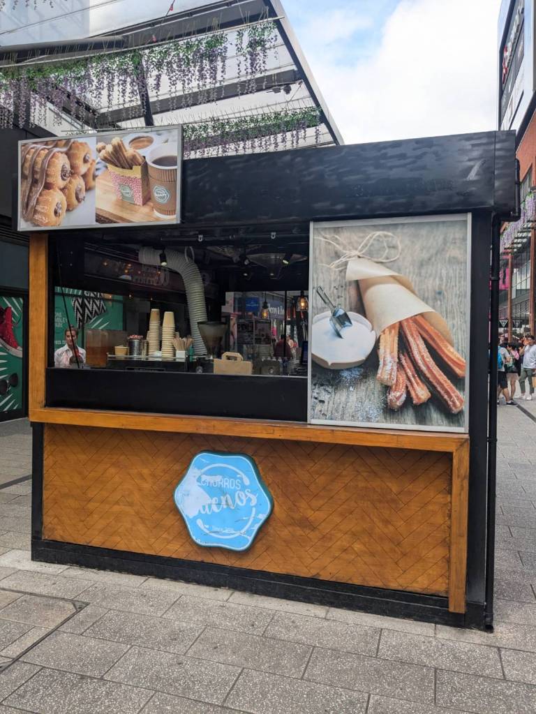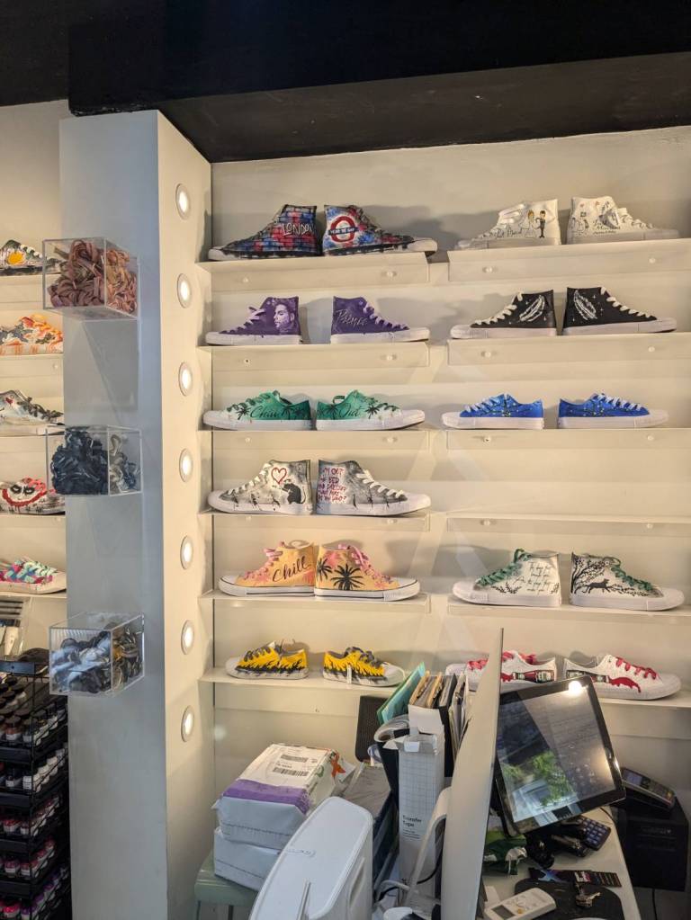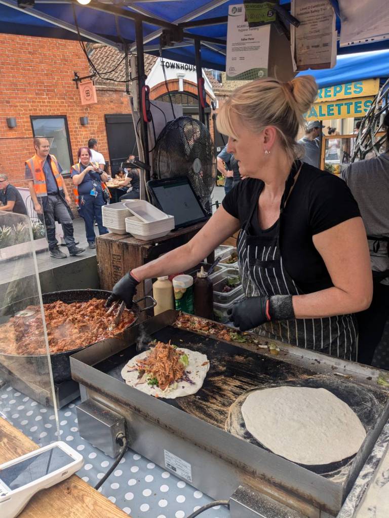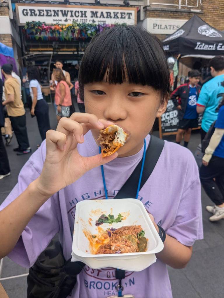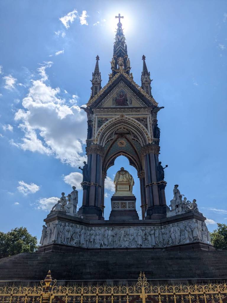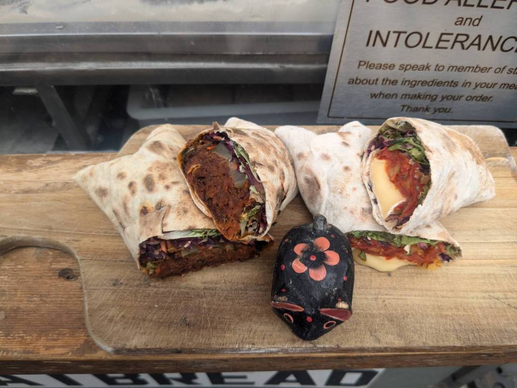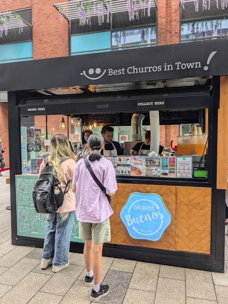 穿越「波多貝羅市集」(Portobello Road Market),在這條熱鬧的在地多元市集,販售各式復古商品、街頭小吃、紀念品及琳瑯滿目的商品,主要是開在週六,但今天週五也有蠻多商家與人潮的。