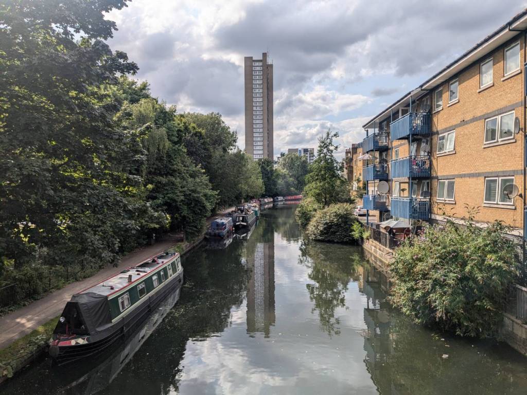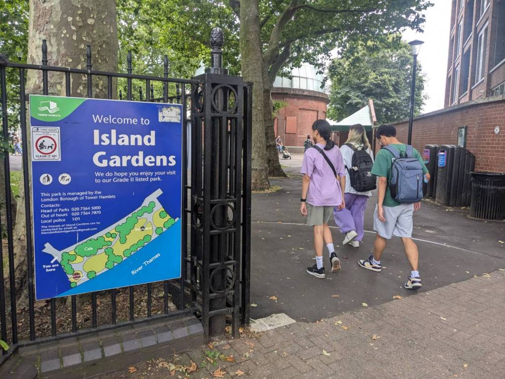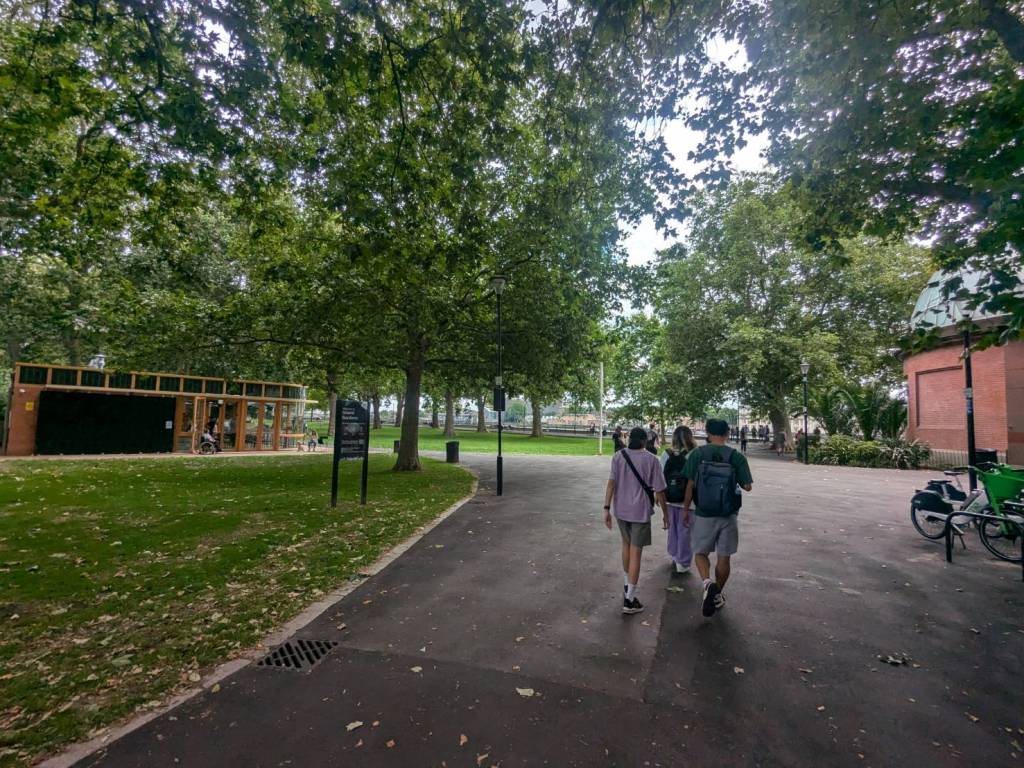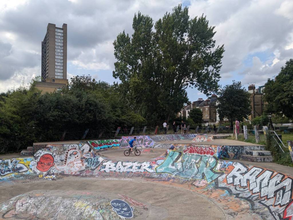 路過「大聯合運河」及河畔的「滑板公園」(Meanwhile Skate Park),沿著運河走來風景秀麗,涼爽微風輕輕拂過樹梢伴行。