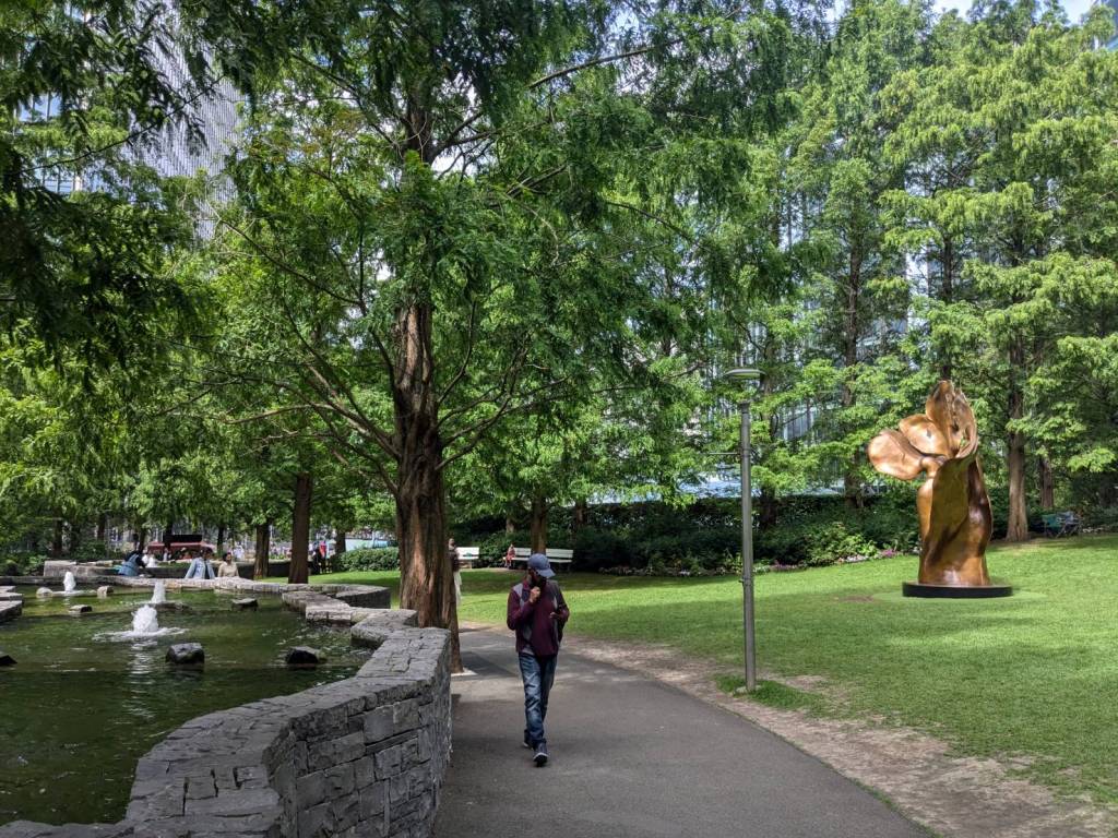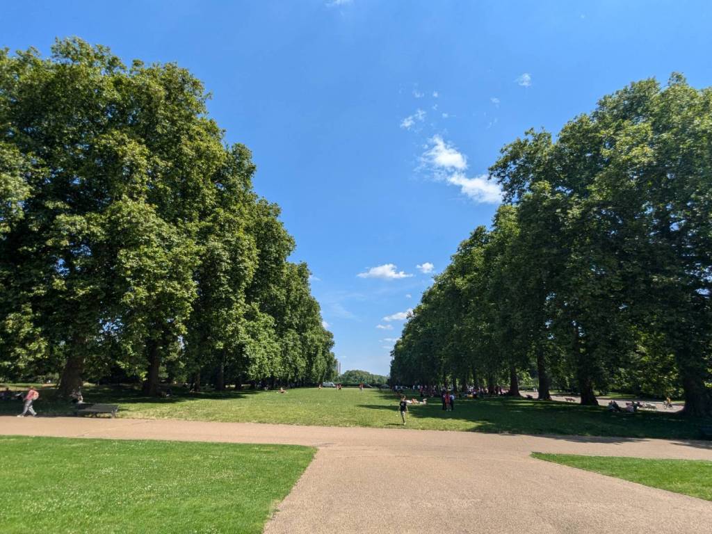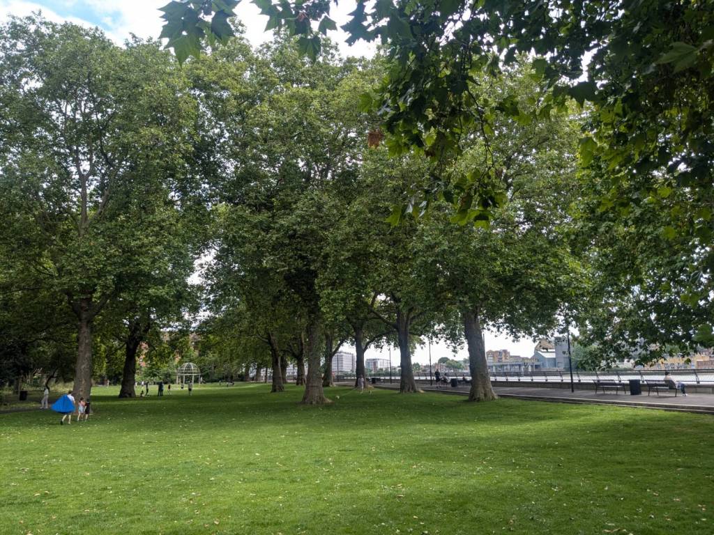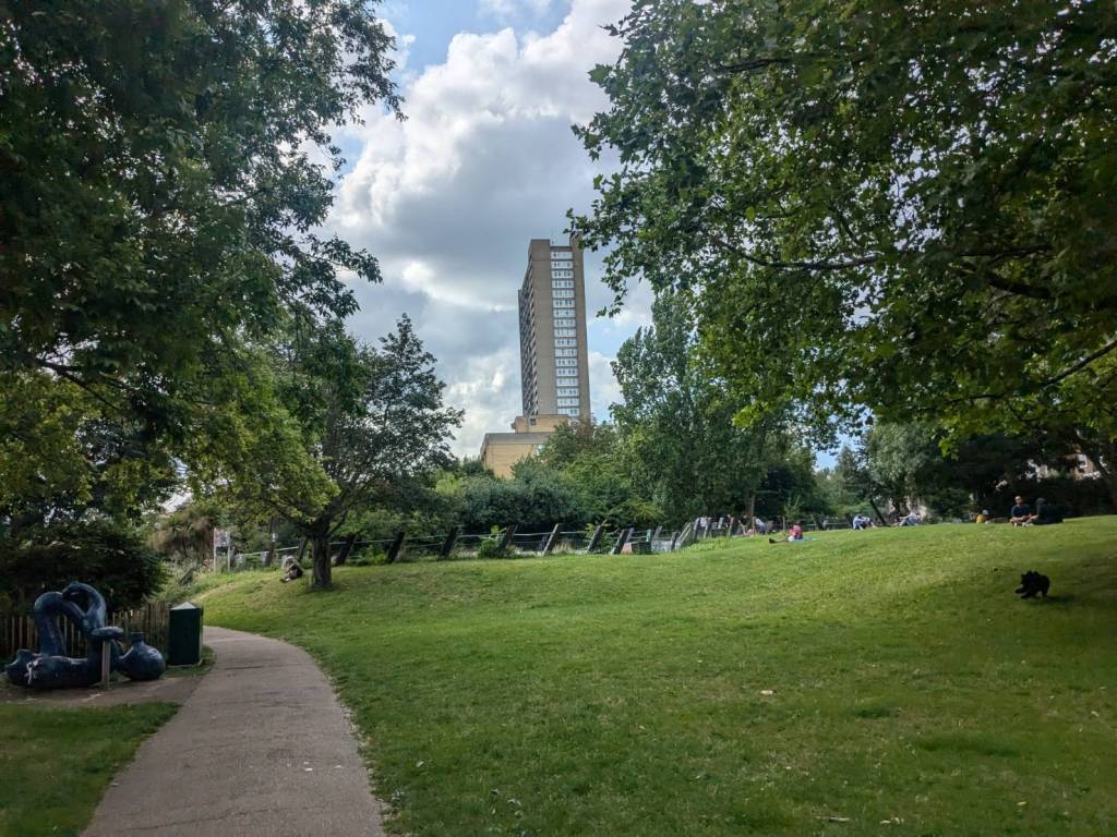 路過「大聯合運河」及河畔的「滑板公園」(Meanwhile Skate Park),沿著運河走來風景秀麗,涼爽微風輕輕拂過樹梢伴行。