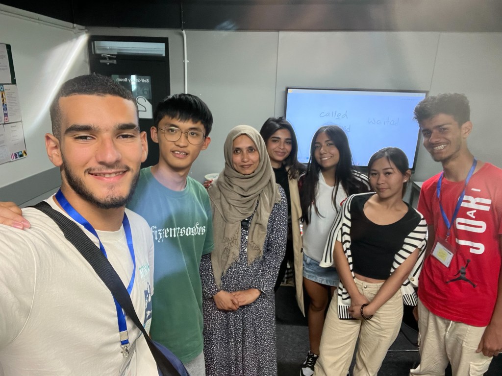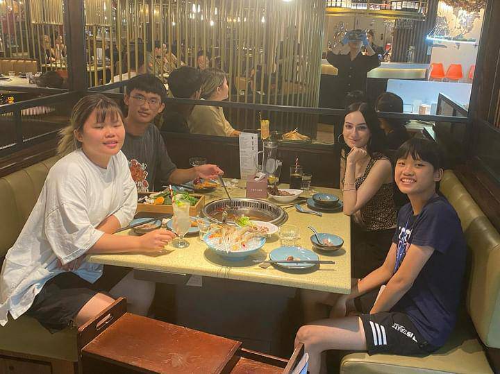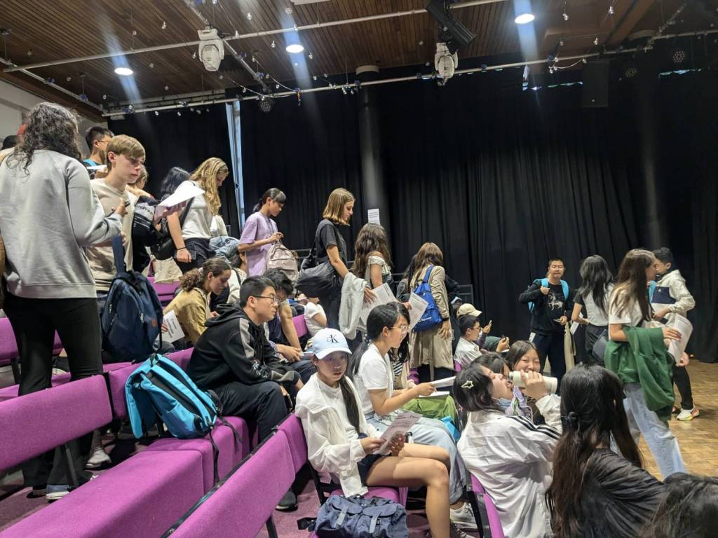 今天古妹參加同學們的夏令營結業典禮,這是她上課兩個禮拜來的第二次,可以說是每週一次;因為各國夏令營遊學團上課時間才1週,她經歷了講法文的「留尼旺群島」團、講葡萄牙文的「巴西」團,講中文的「中國」團以及其他搞不清楚來歷的遊學團。總之,14歲成為學校老鳥的她,還要再參加兩次結業典禮,為什麼要參加那麼多次又跑不了,她也很莫名其妙吧…^^