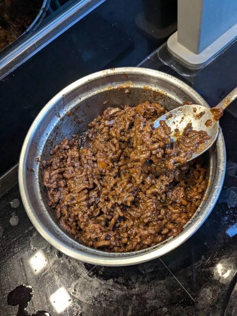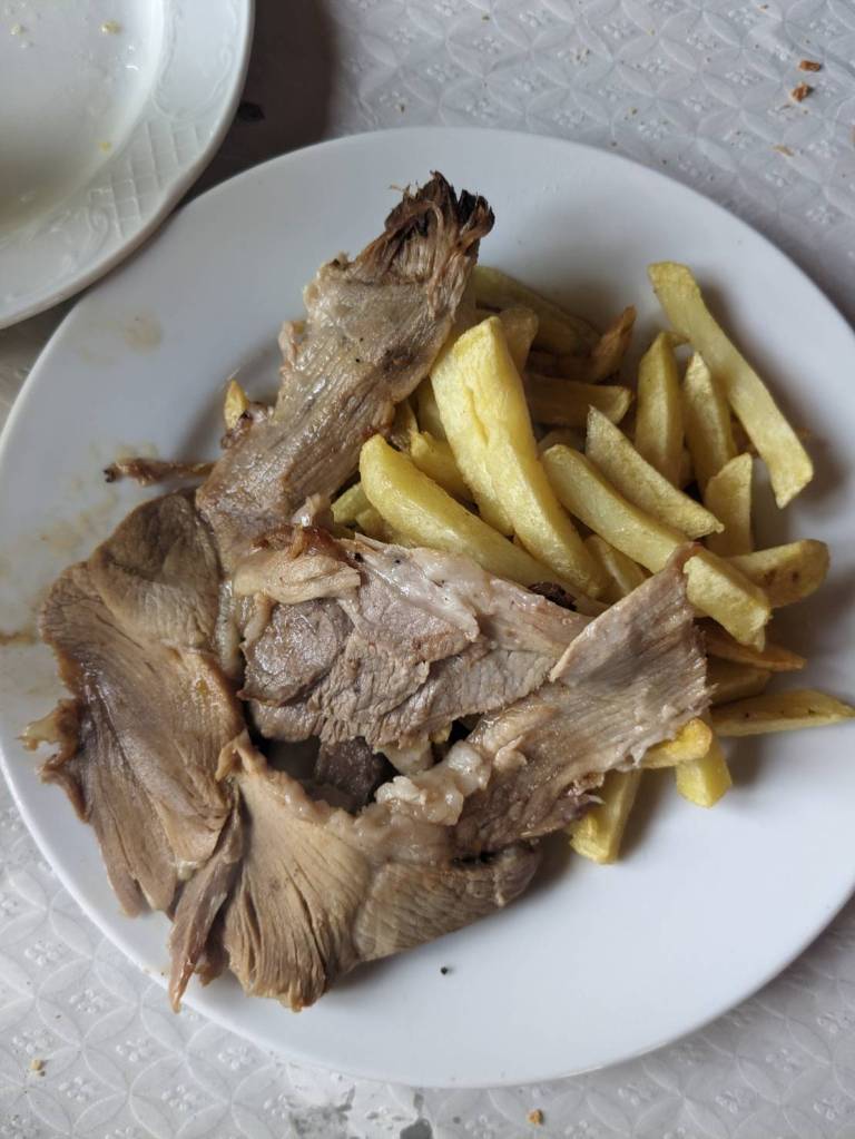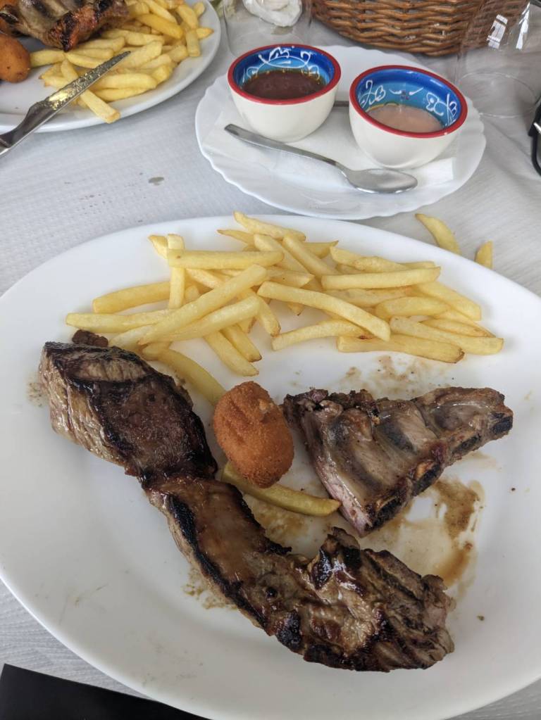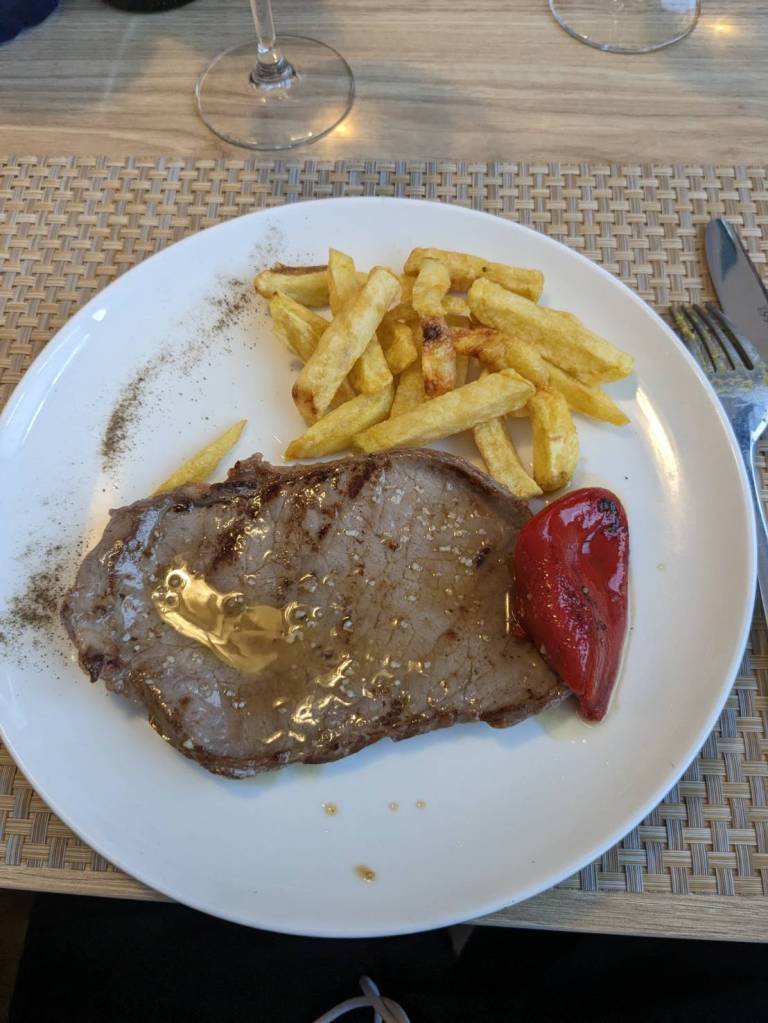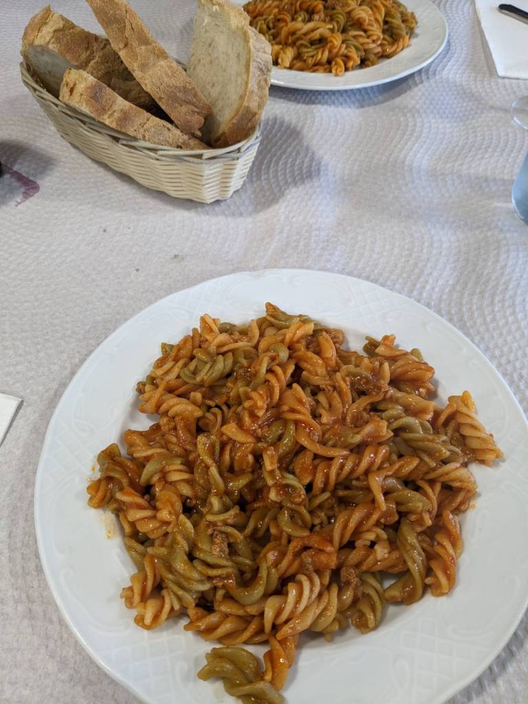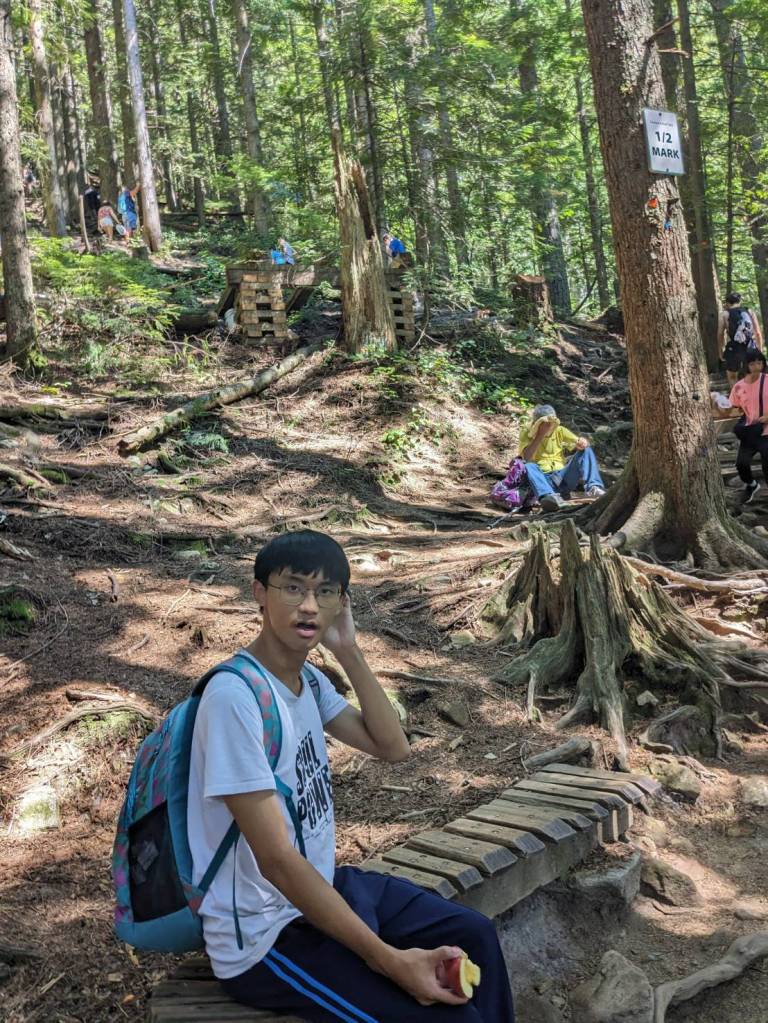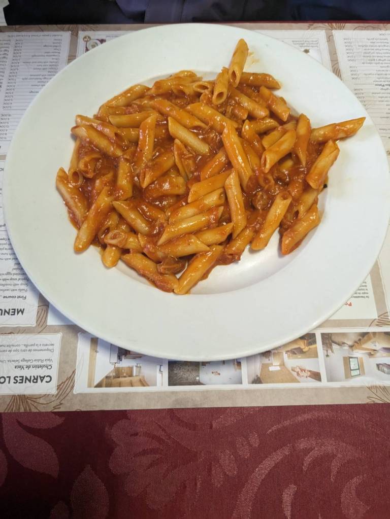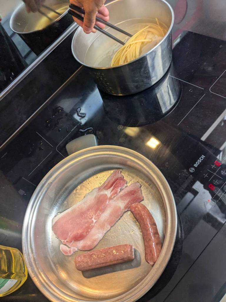還好今早早餐在昨天有先準備好,基本上是超市的麵包、牛奶穀片,還有沾醬炸薯條雞塊,好像熱量都有些兒高。。。