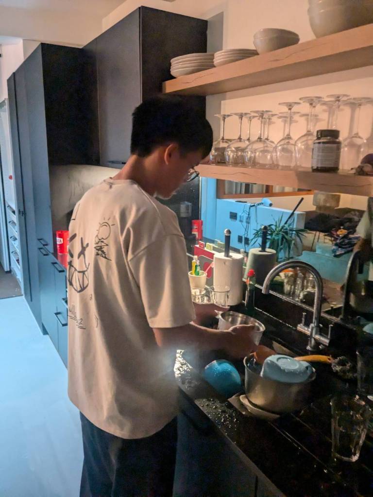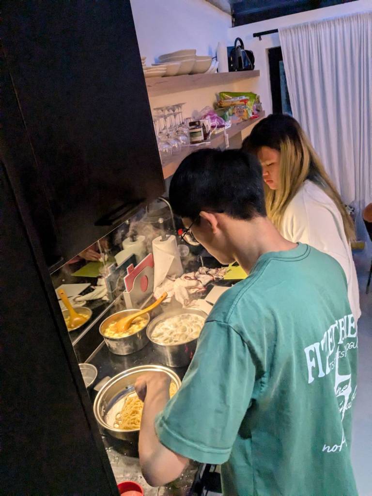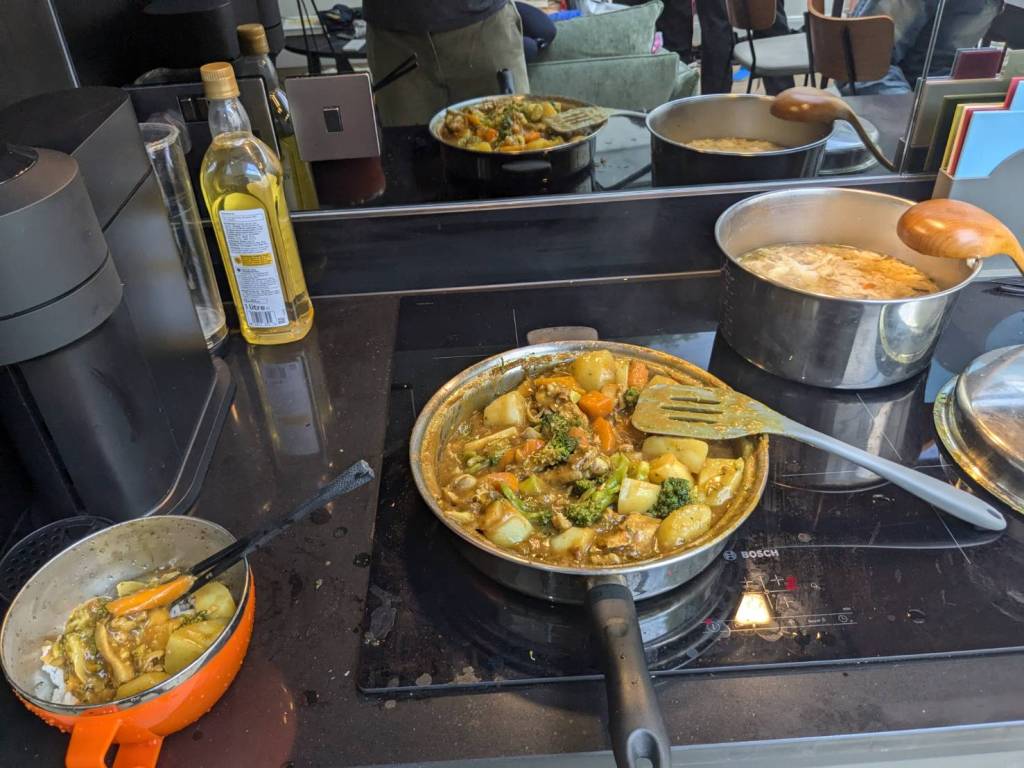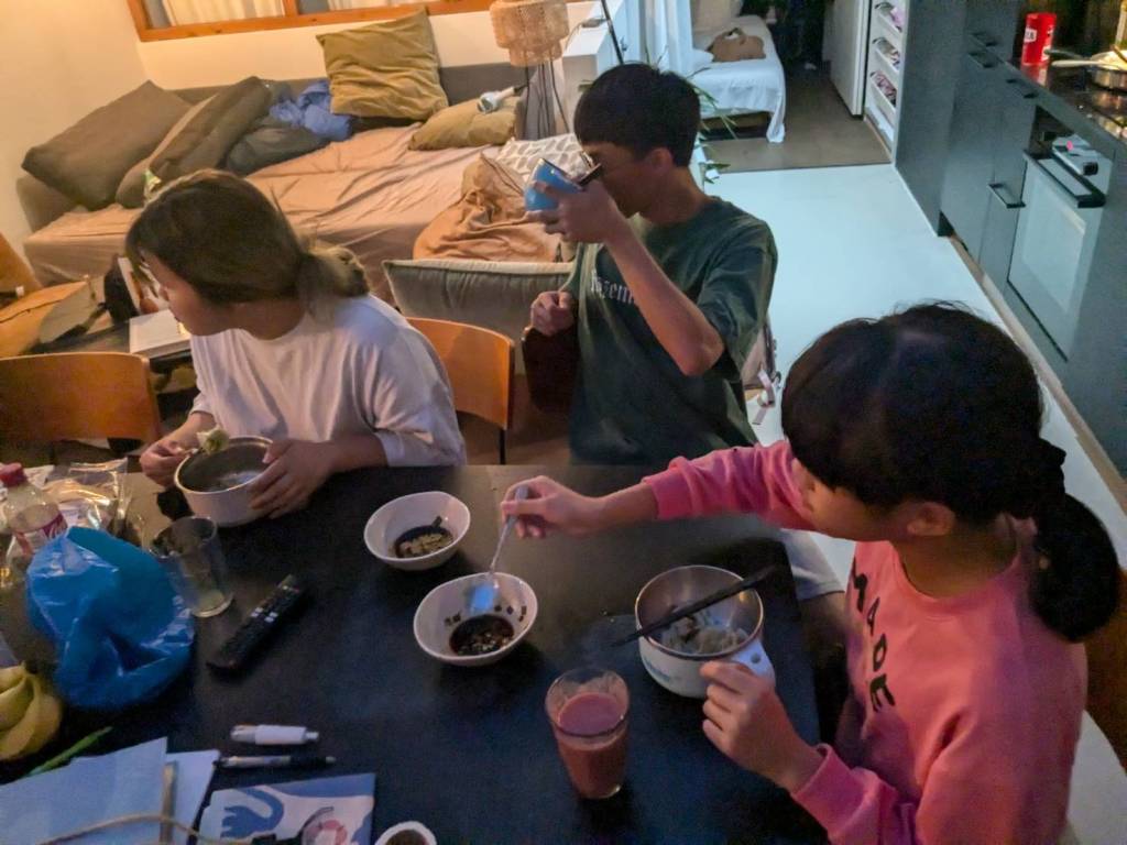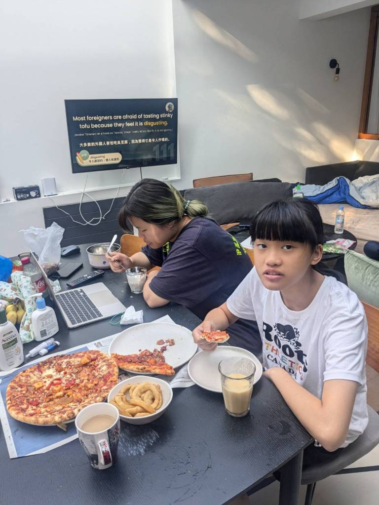 下午5點半回到溫暖的家,因為外面均溫不到20度,而家裡經過一天日曬已有26度,感覺比較悶,但「英國」住家很少有冷氣空調,倒是有暖氣。。。今晚是吃「咖哩飯」及「酸辣湯」,自己第一次煮飯會有點擔心熟度,但品嚐結果卻是相當可口好吃呢!!!(小孩子們說的)^^