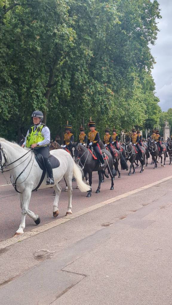 以後得早點來佔位子,萬頭攅動地看不到儀式進行,下次再補看吧!!!小叮嚀。。。觀看「白金漢宮」衛兵交接,交接儀式就在「白金漢宮」前面的院子進行;原則上每週一、三、五、日的上午11:00,交接儀式大約45分鐘,通常要在上午9點半前才佔到好位置。