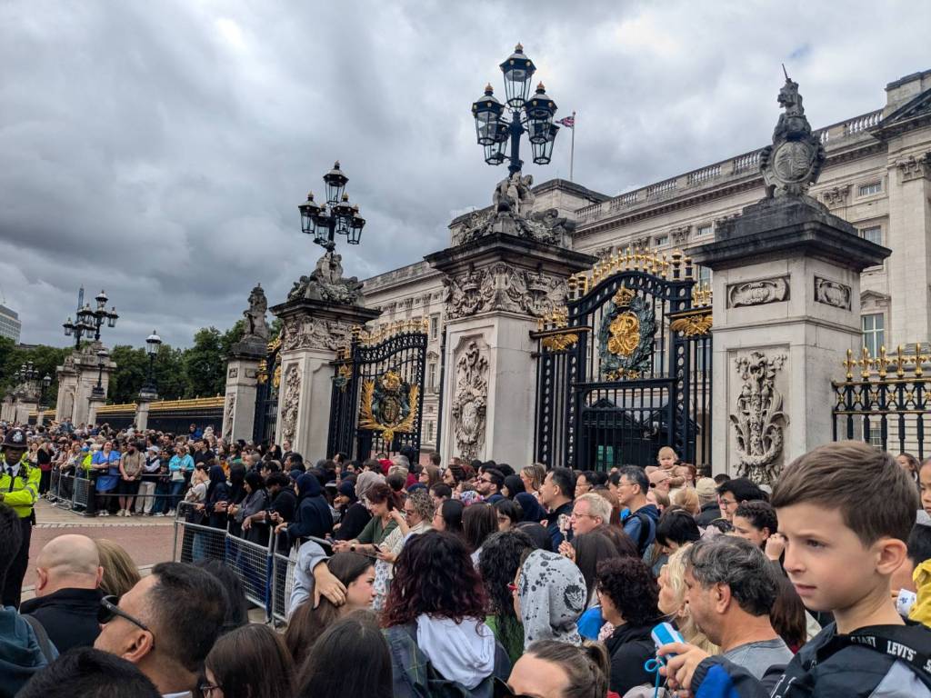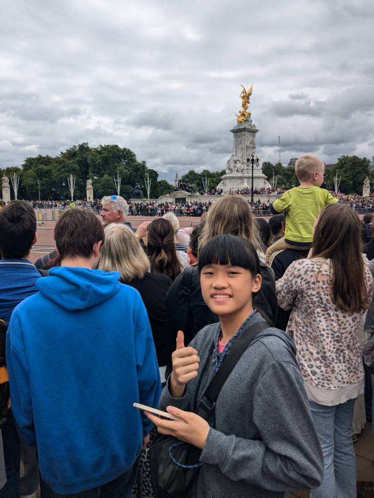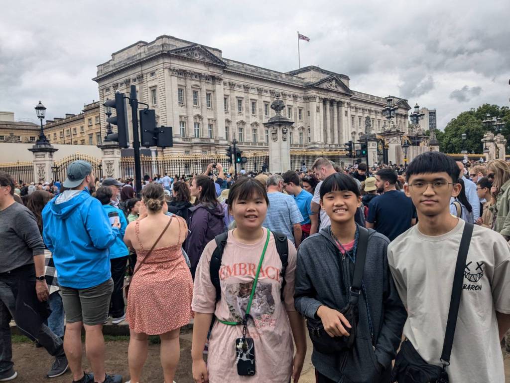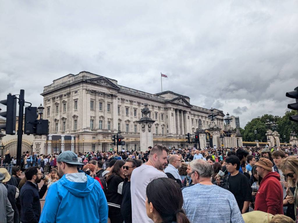 走到人潮擁擠的「白金漢宮」(Buckingham Palace)前,所以人都是衝著來看衛兵交接儀式的,這裡是「英國」君主位於「倫敦」的主要寢宮及辦公處。