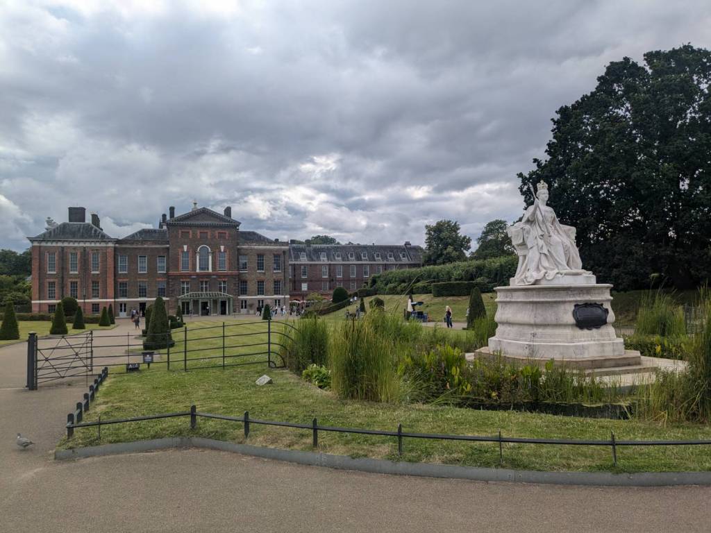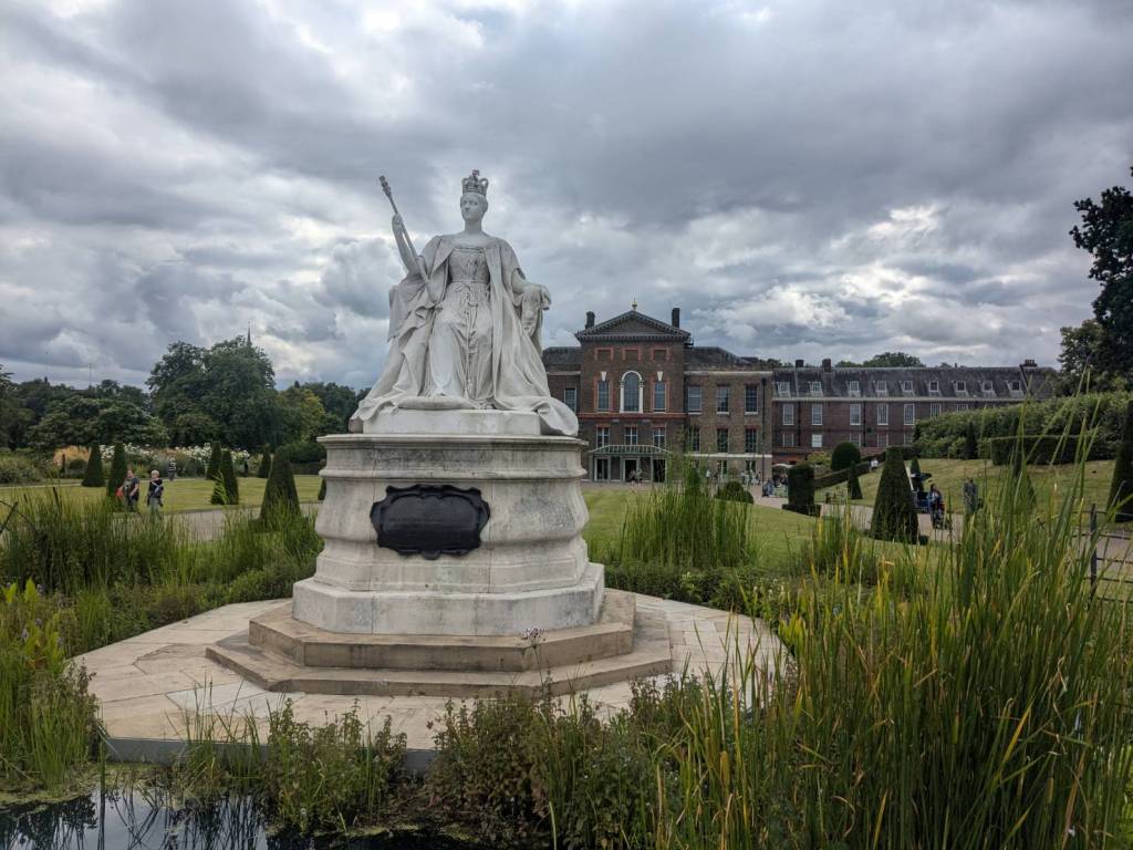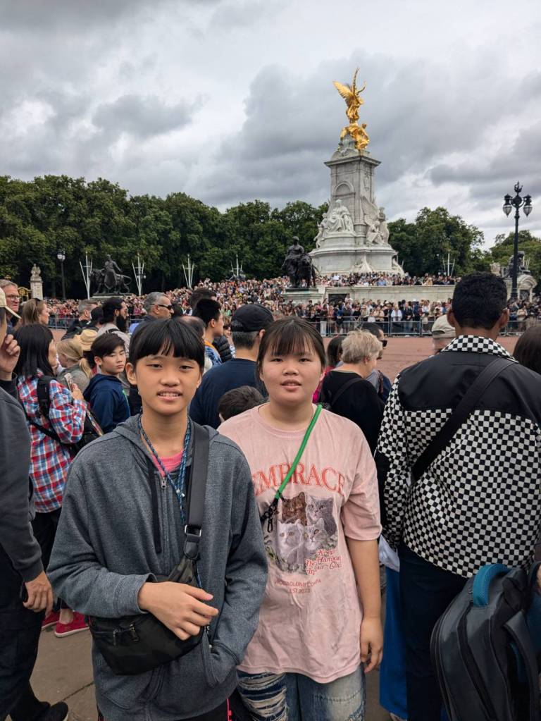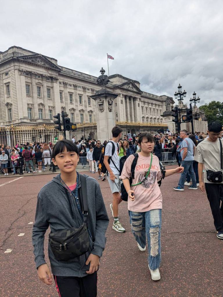 走到人潮擁擠的「白金漢宮」(Buckingham Palace)前,所以人都是衝著來看衛兵交接儀式的,這裡是「英國」君主位於「倫敦」的主要寢宮及辦公處。