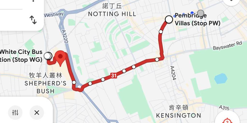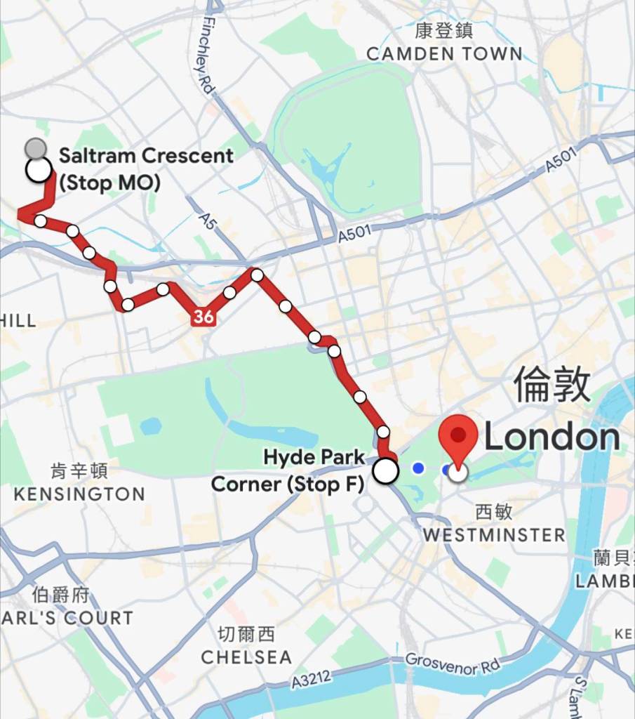 接下來我們得坐50分鐘的公車,先坐「148號」公車,並在「海德公園」轉乘「36號」公車。