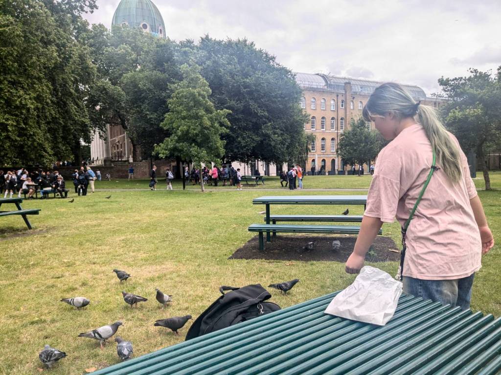 這裡的鴿子超多的,飛來飛去尋找人類留下的食物碎屑。