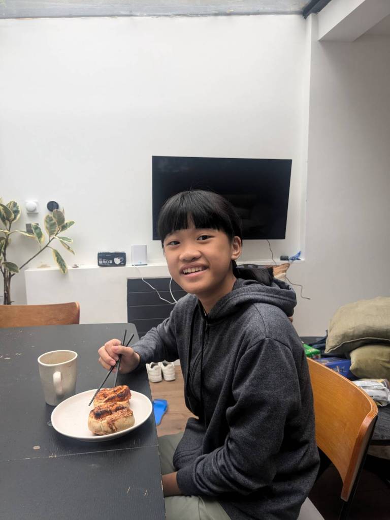雖然昨天一路巔簸來到千里外的城市—「倫敦」,我跟庭睿初次睡的床也不好睡,但格外涼爽的夏日天氣是非常舒服的。今早6點半就起床摸東摸西了,順便研究一下這房子的設備如何使用,不久小孩子們不知道是還不習慣時差還是什麼,大家在7點半就都起來了。