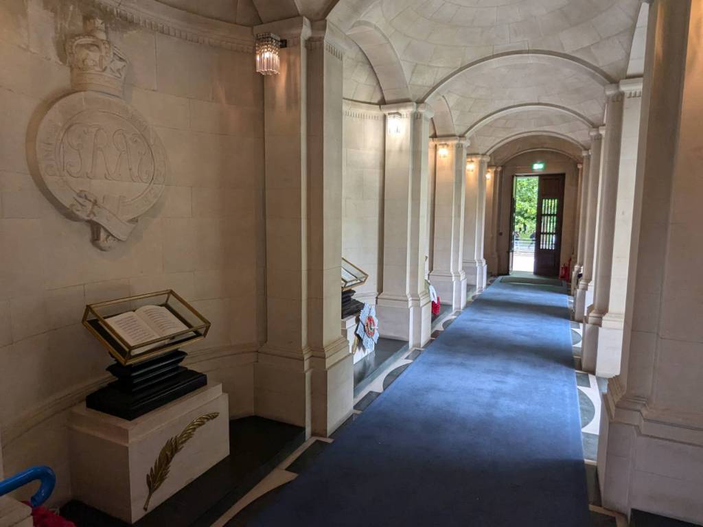 紀念門由四根柱子組成(波特蘭石),道路兩側各兩根,柱子頂部有青銅燈籠,在特殊場合會點燃燈籠。路旁有一個圓頂形狀的石亭,裡面有一份被授予「維多利亞十字勳章」或「喬治十字勳章」的人之名單,穹頂的天花板上刻有74個人的名字。