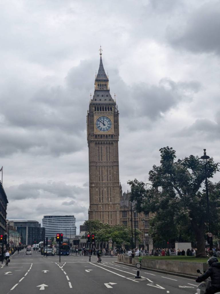 上午11點半,我們離開教堂,繼續向東走10分鐘,深入「西敏區」(Westerminster),天際線上出現一幅感動,看到「大笨鐘」了!!!