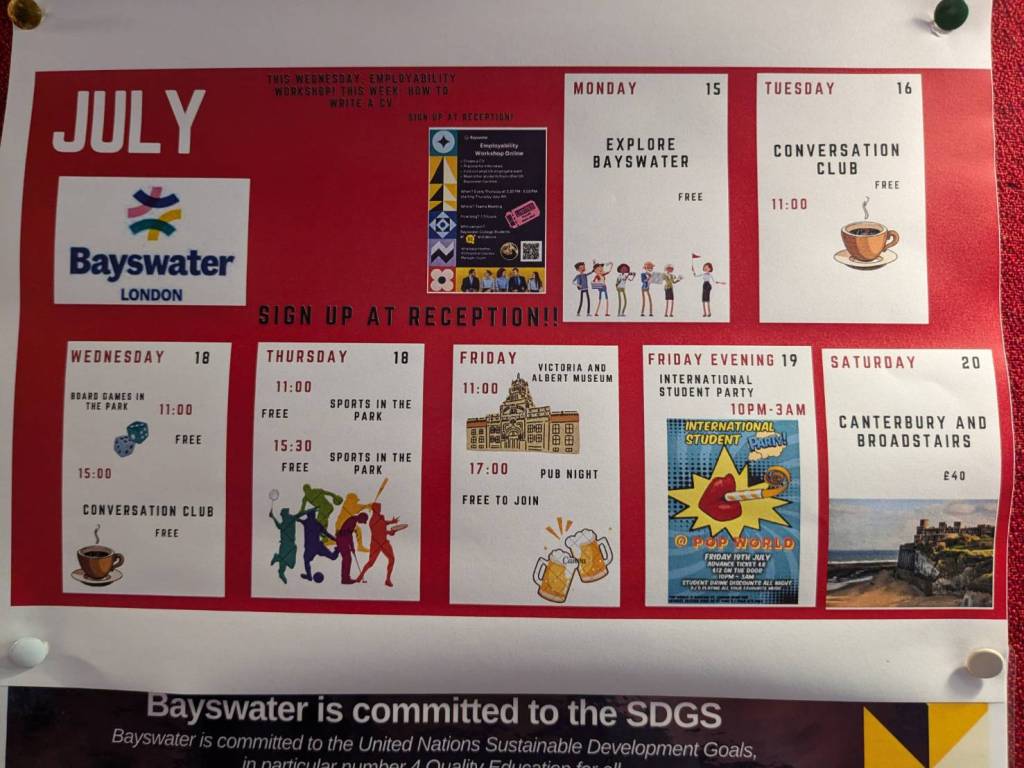 先帶小孩子到他們即將就讀的語文學校–「貝斯沃特學院」(Bayswater College London)踏踏點,認識環境,並在樓下的超市買一下晚餐的佐料。