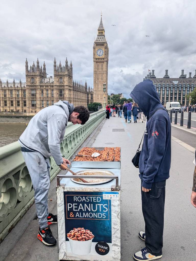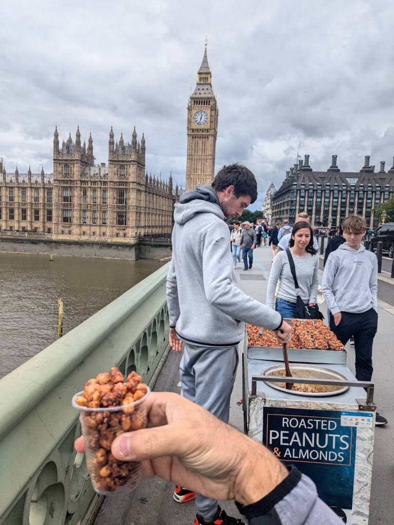 「炒杏仁花生」攤販是在「倫敦」常見的小吃,嘗一下感受不同的體驗,甜甜脆脆還滿好吃的。
