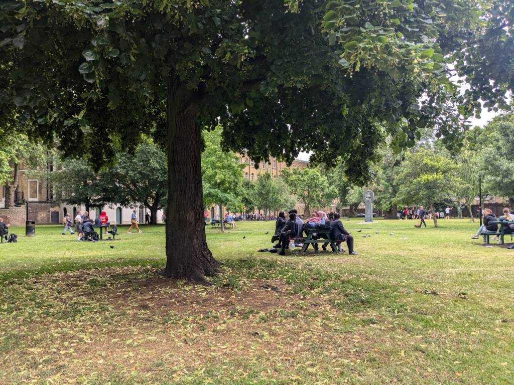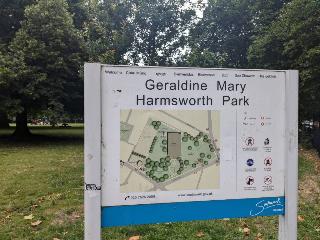「傑若丁瑪莉杭斯沃斯公園」(Geraldine Mary Harmsworth Park),是一座擁有蔥鬱優美綠色植物與步道小徑、適合休閒漫步與野餐的理想場所,這時有學校的學生在這裡戶外教學與玩耍,中午時分相當熱鬧。公園維護良好,擁有美麗的花壇及迷人的池塘,並且育樂設施齊全,四面八方都有花園的入口。