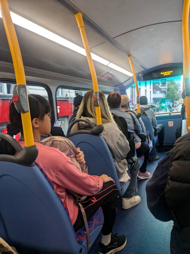 今天第一次坐「倫敦」雙層巴士,上層看的風景更廣且視野更棒。