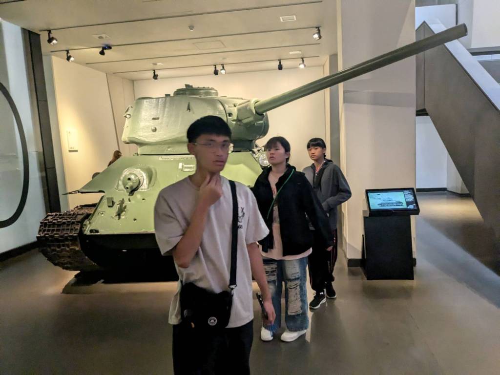 哇!一進門就見到飛機「飛」滿整個上空,從一樓到三樓都有戰車、火炮及軍事裝備,非常壯觀。