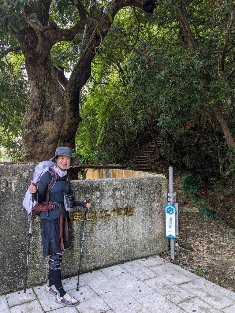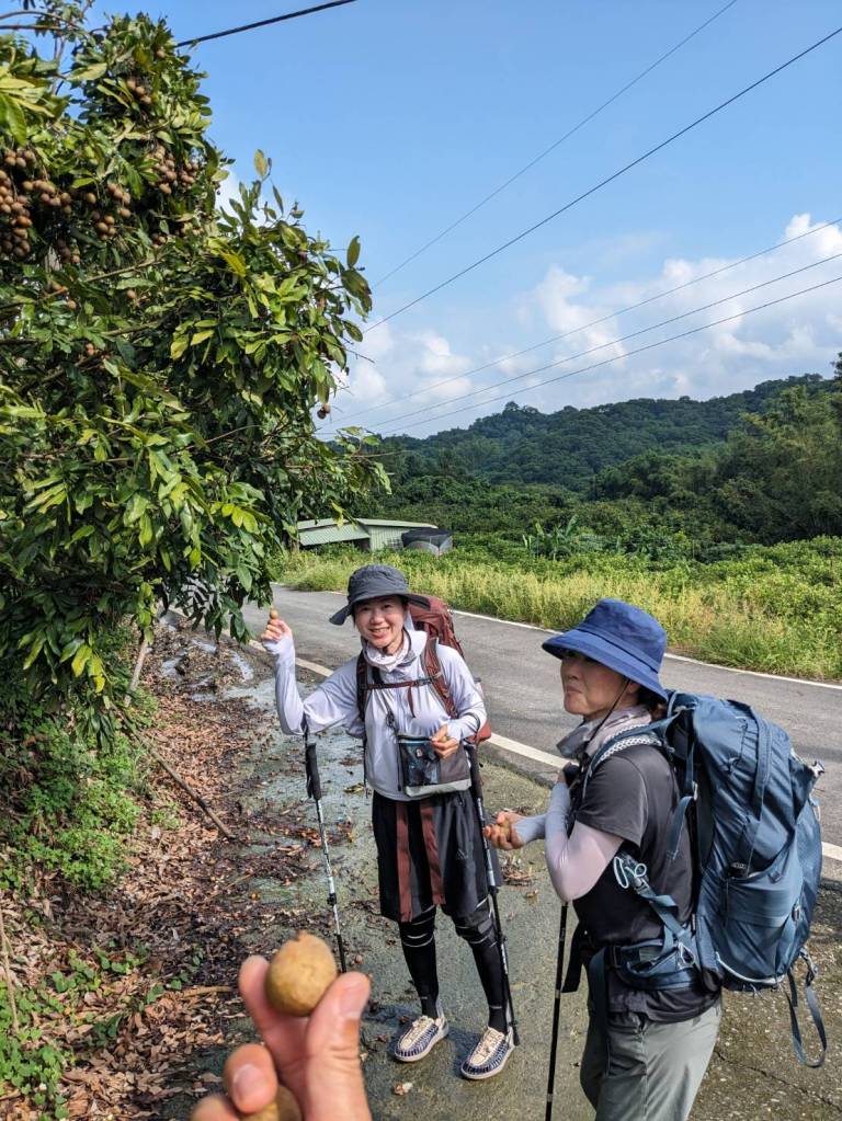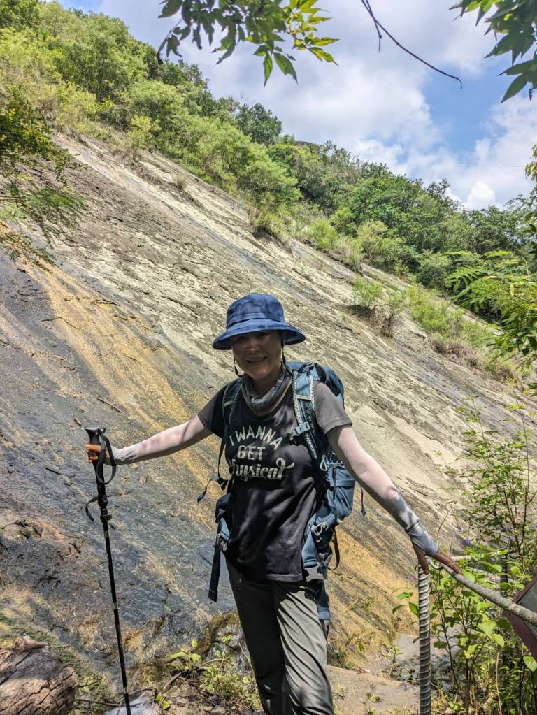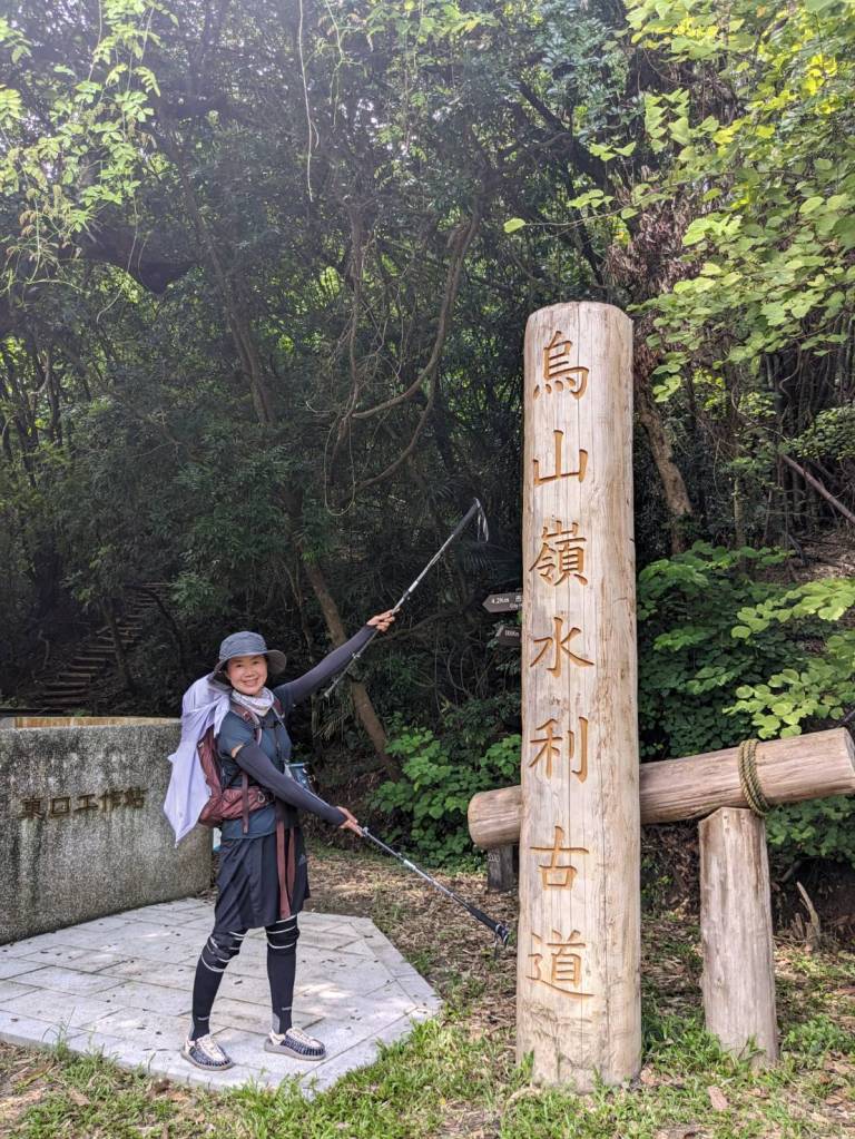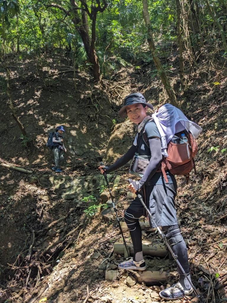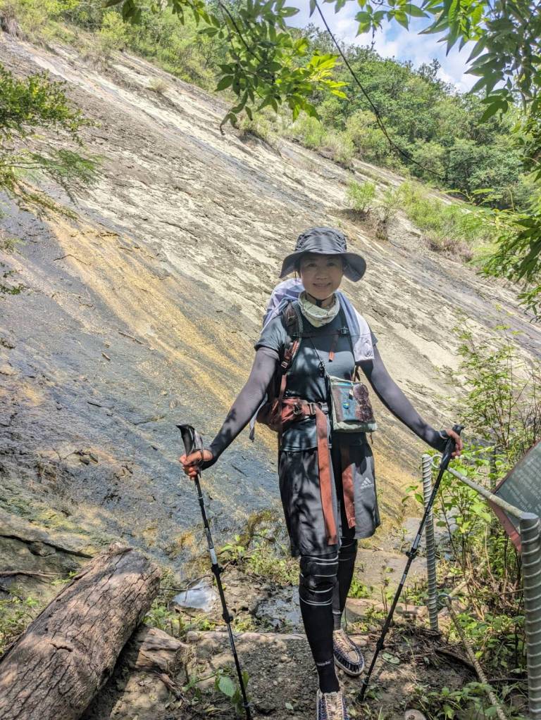 太座手拿著的是我在小徑撿到的打熊棒,不知不覺落在她的手上。