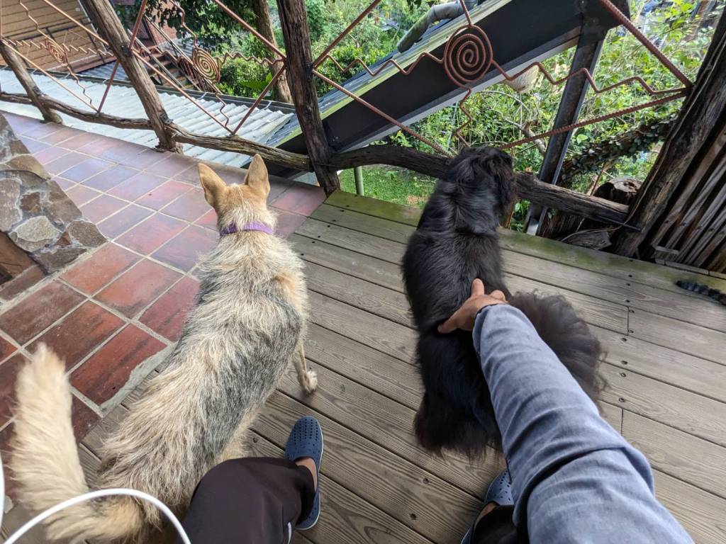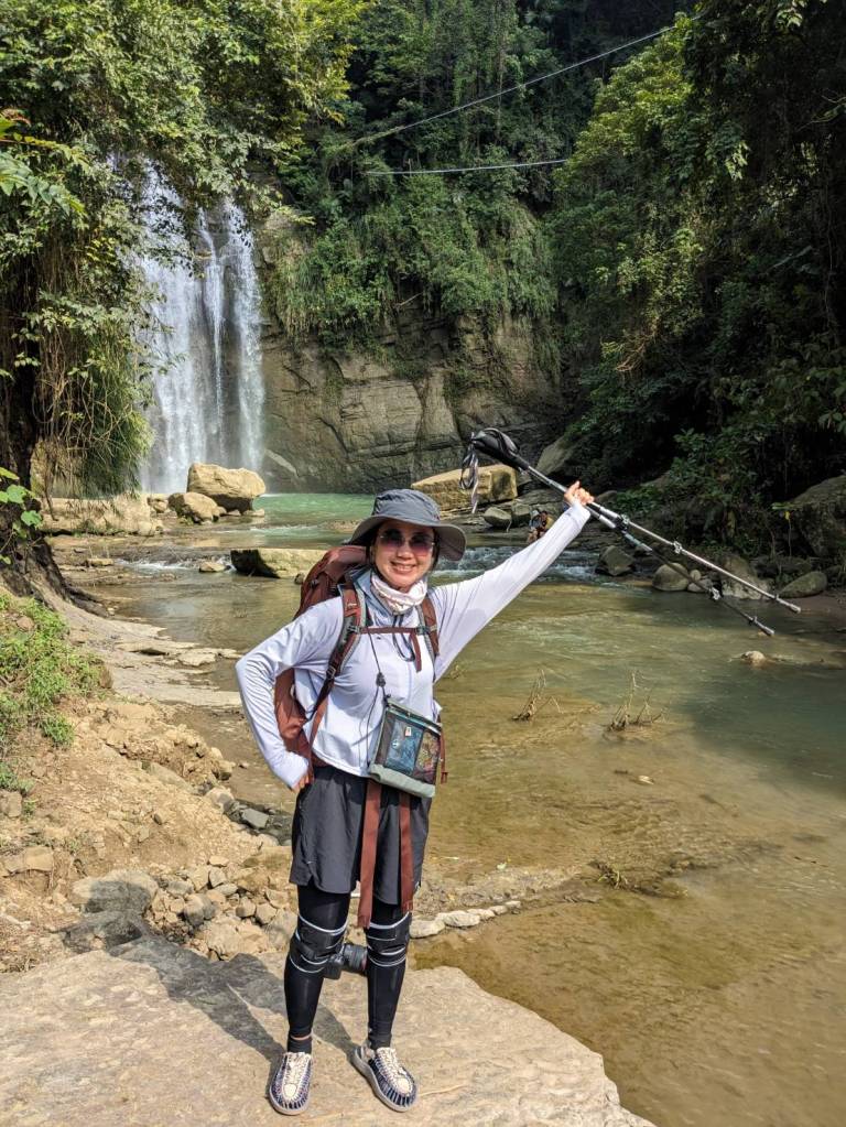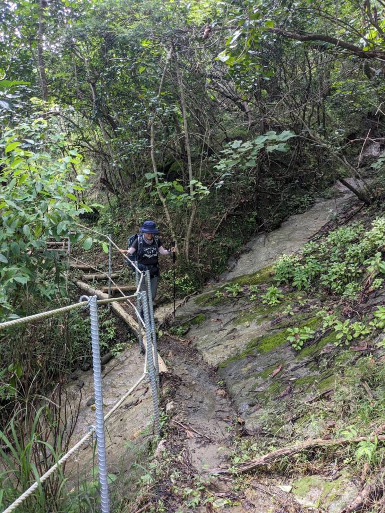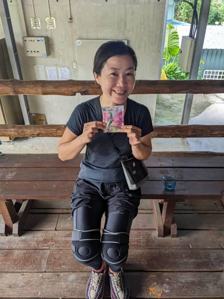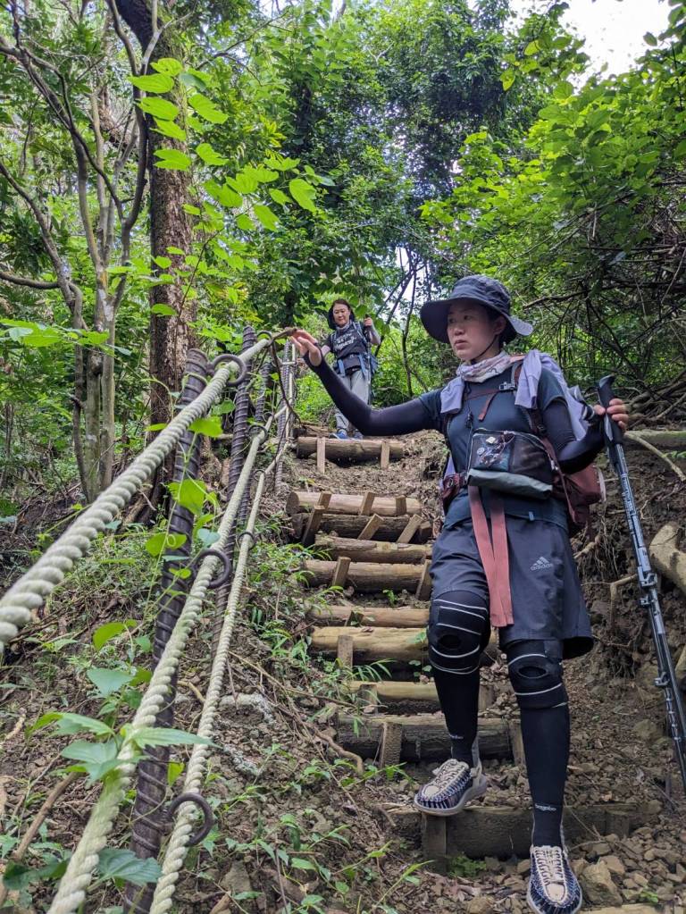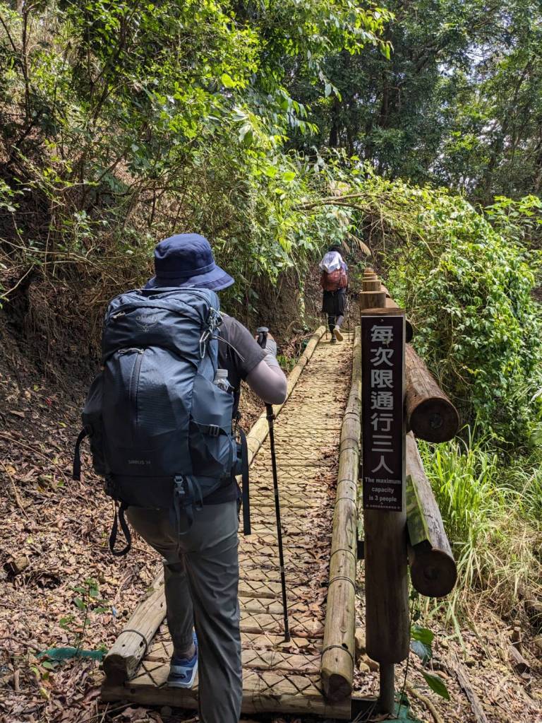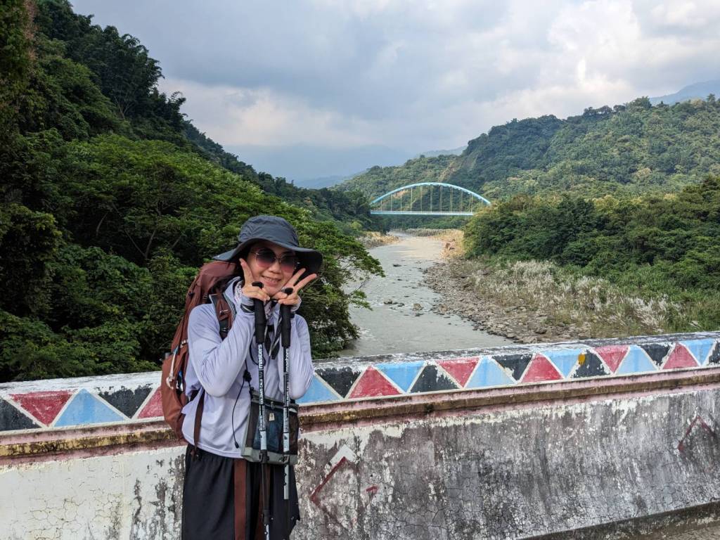 太座手拿著的是我在小徑撿到的打熊棒,不知不覺落在她的手上。