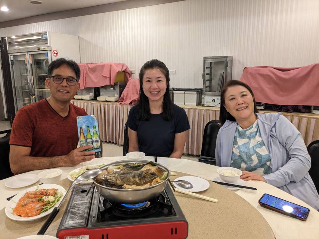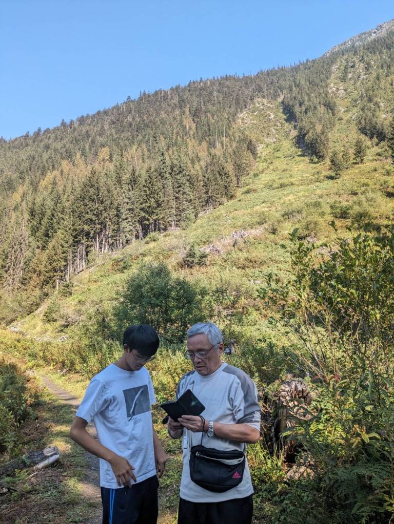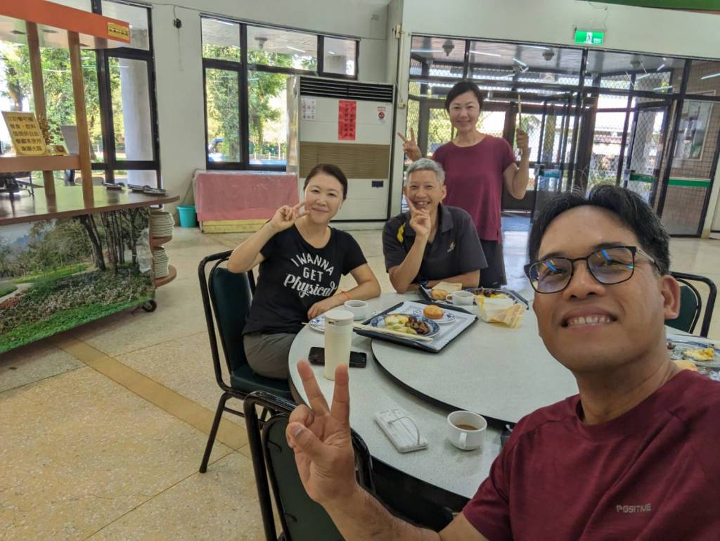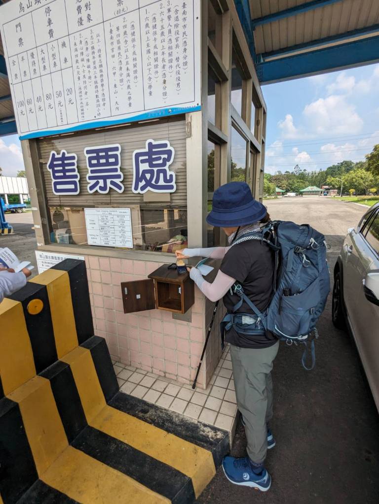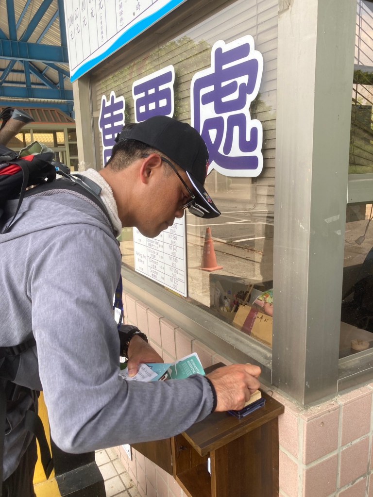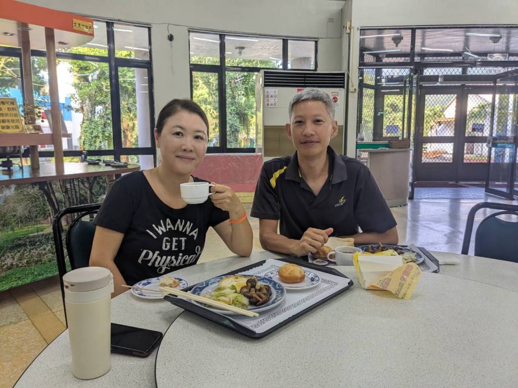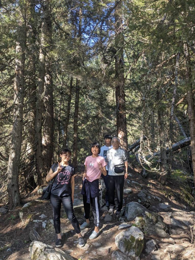 也剛走完步道,就讓家人在車上吃東西休息一下。