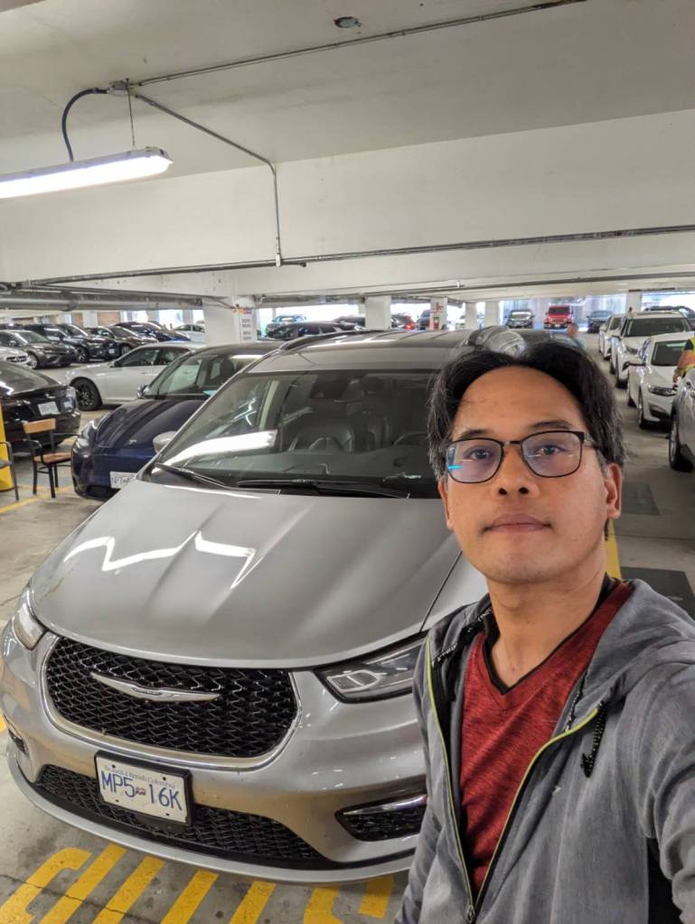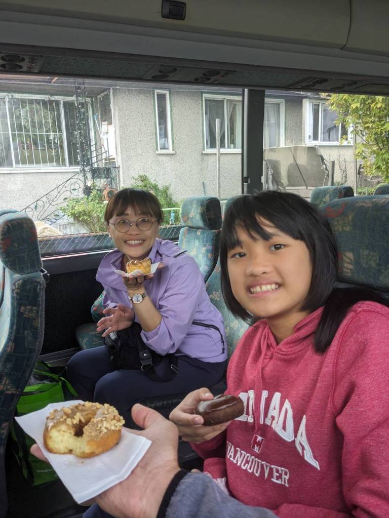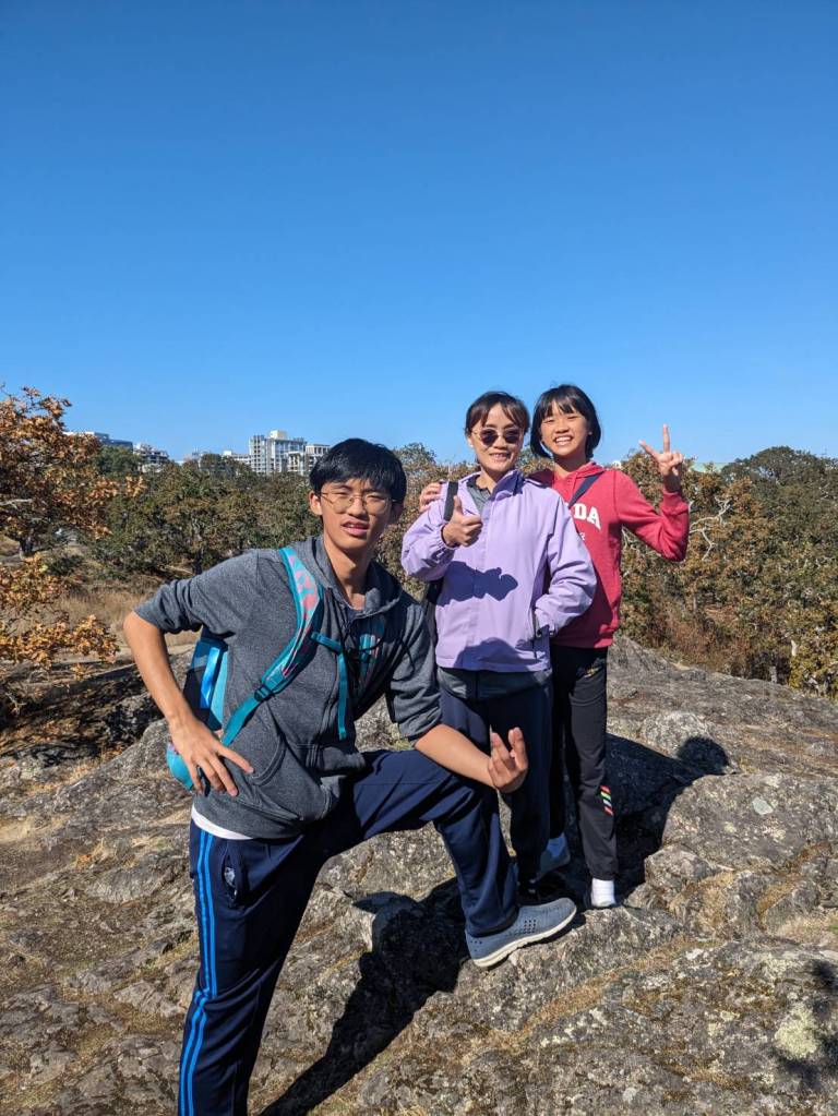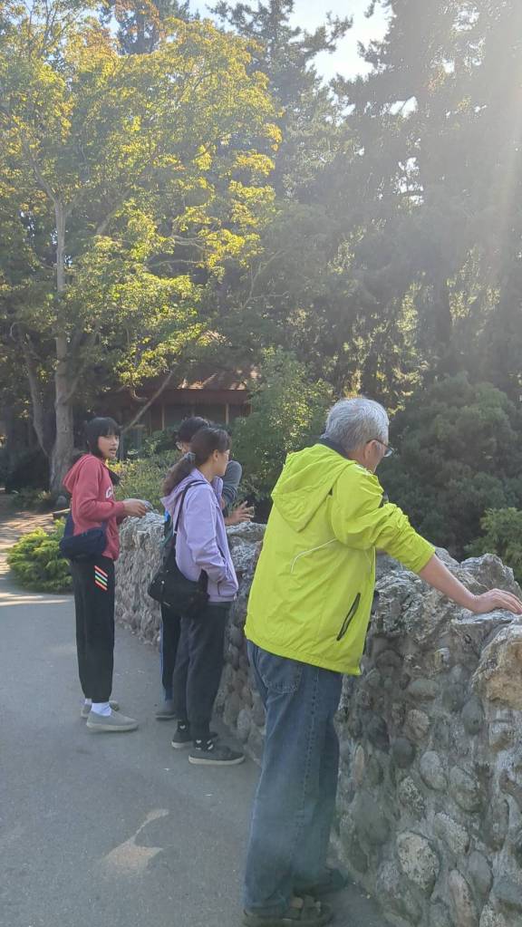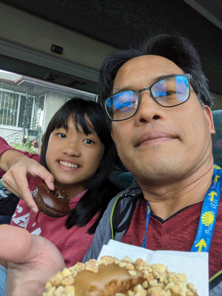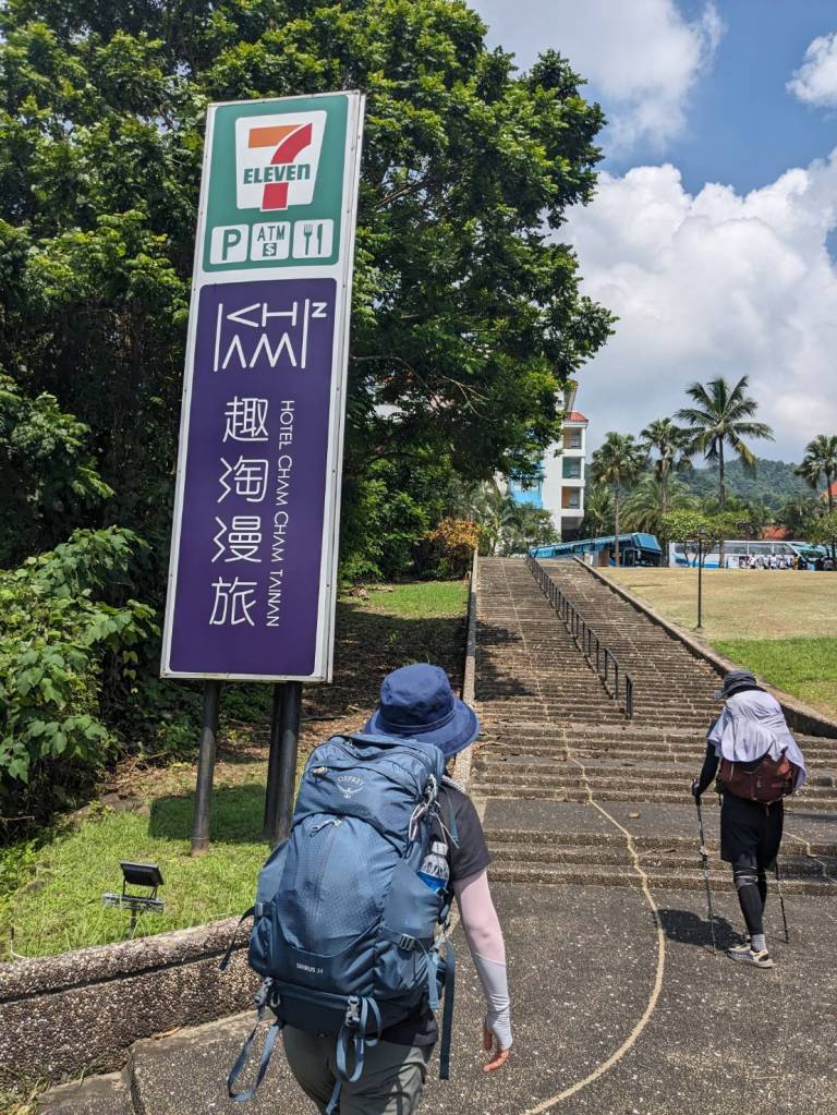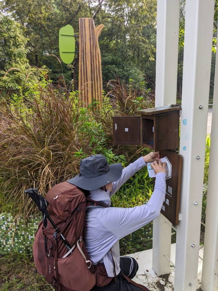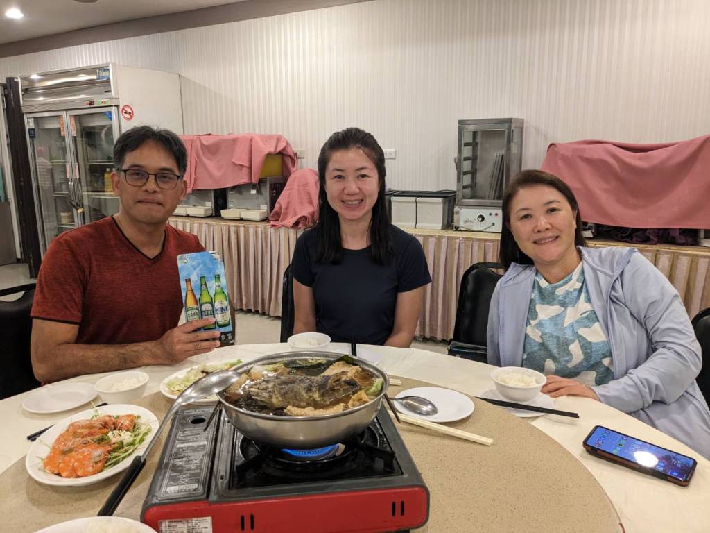 也剛走完步道,就讓家人在車上吃東西休息一下。