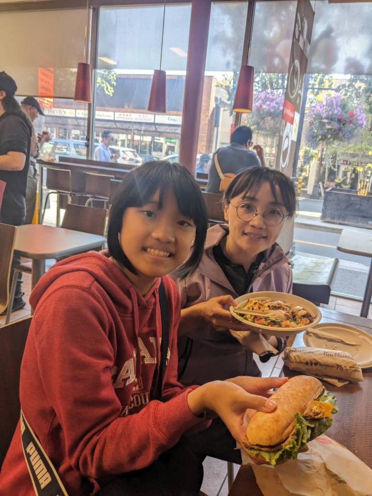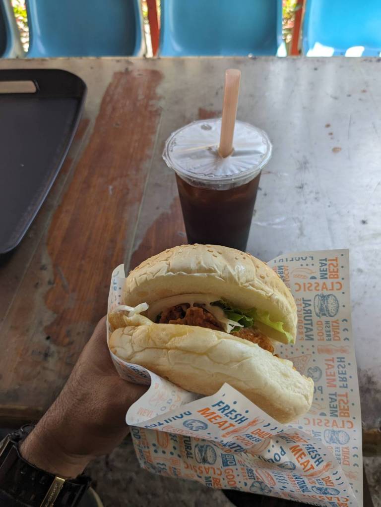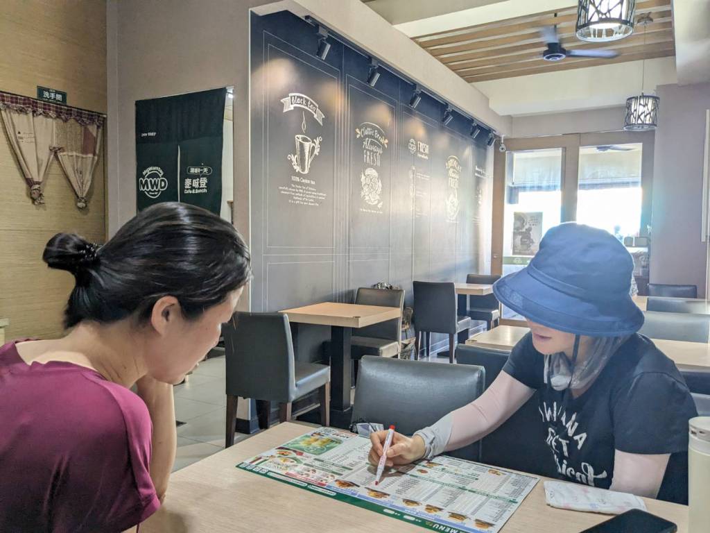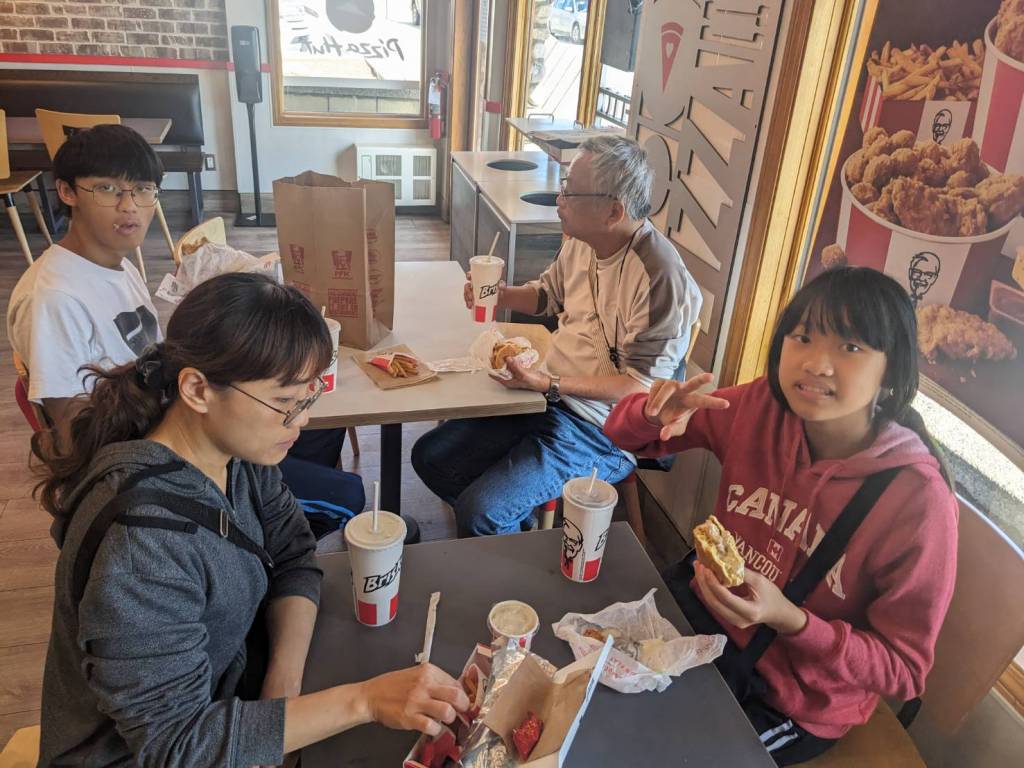 中午時分,漢堡店內已經大排長龍,還好我們可以擠在四人座位上用餐。