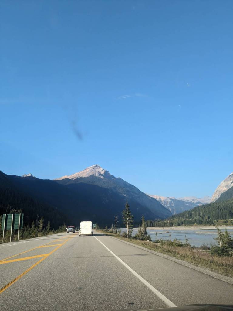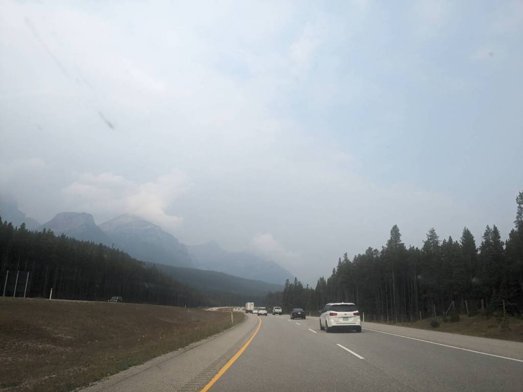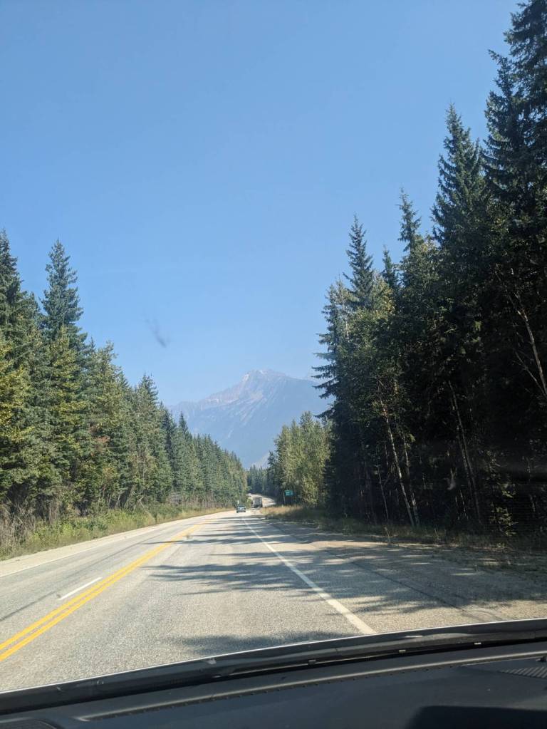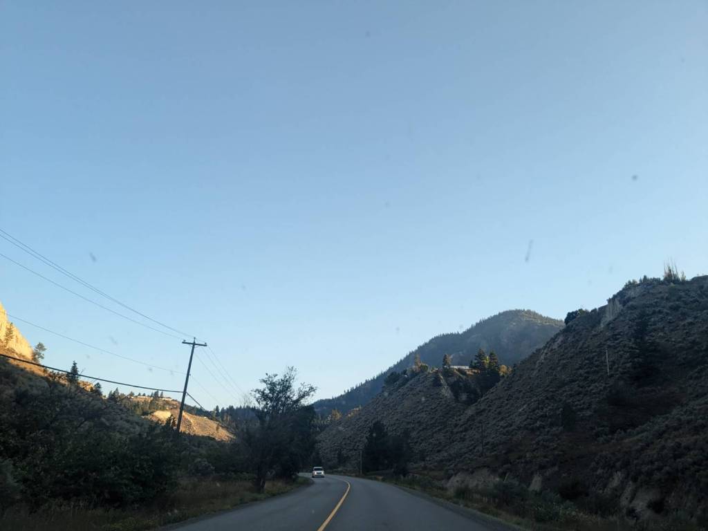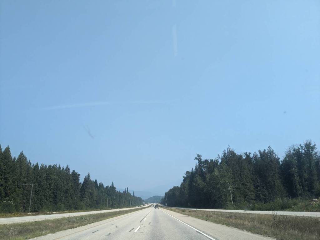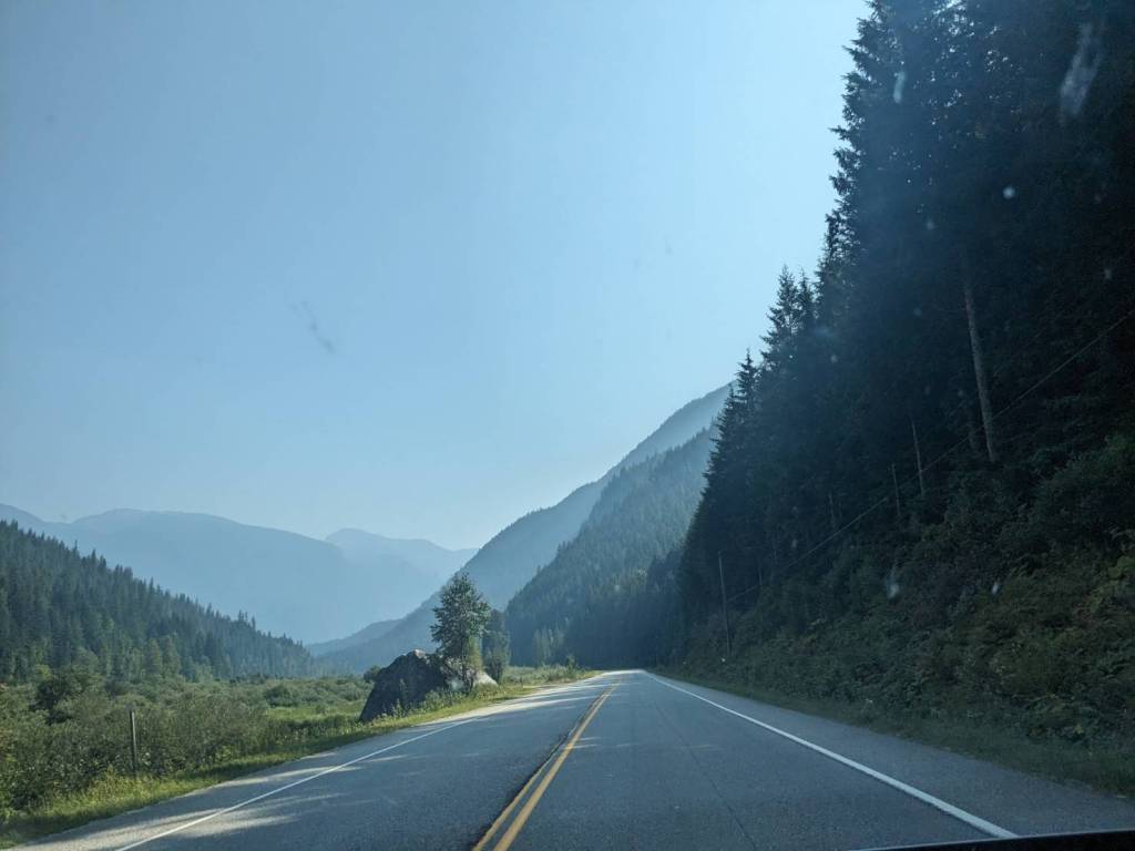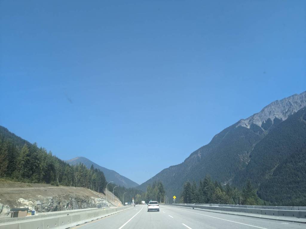 過了「薩蒙阿姆鎮」(Salmon Arm)後,感覺天空與群山清晰明亮許多,脫離野火霧霾的憂鬱後,感受到被大自然擁抱的喜悅。