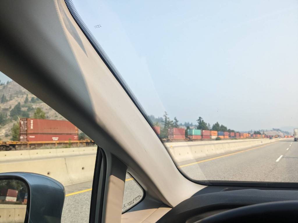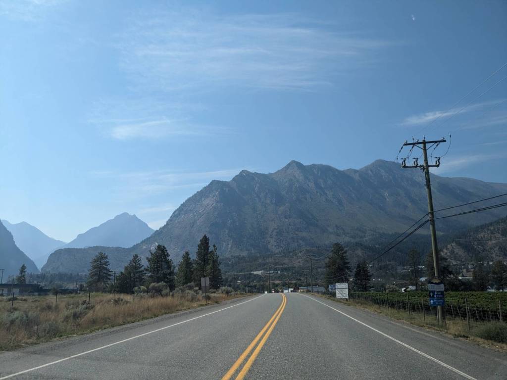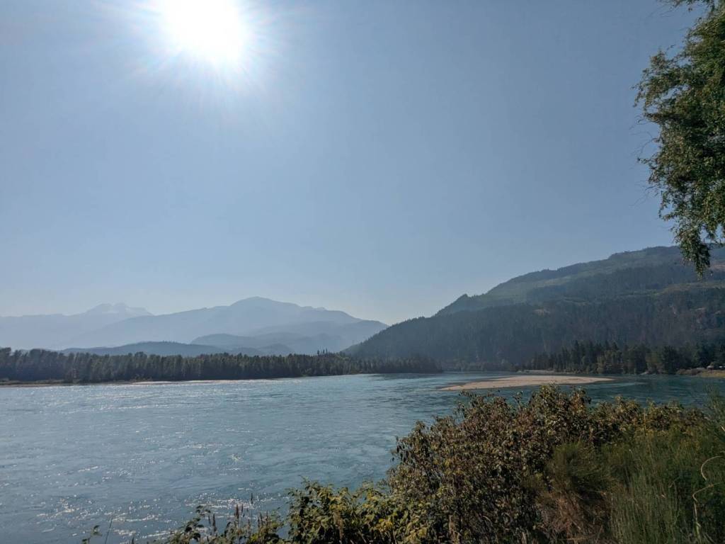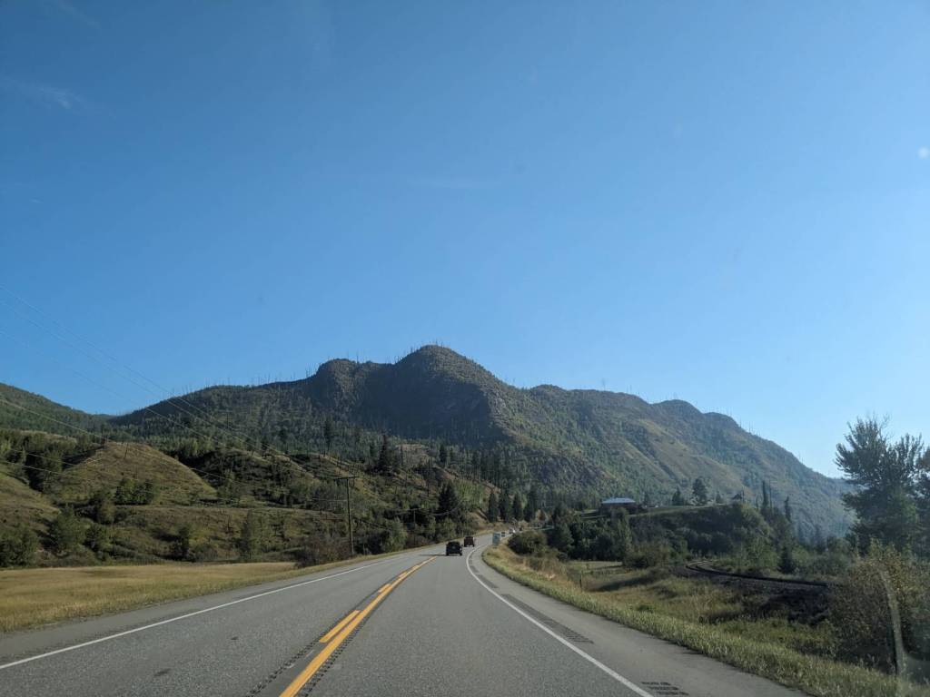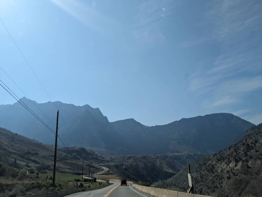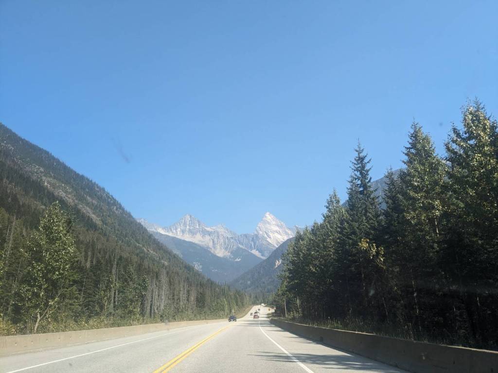 過了「薩蒙阿姆鎮」(Salmon Arm)後,感覺天空與群山清晰明亮許多,脫離野火霧霾的憂鬱後,感受到被大自然擁抱的喜悅。