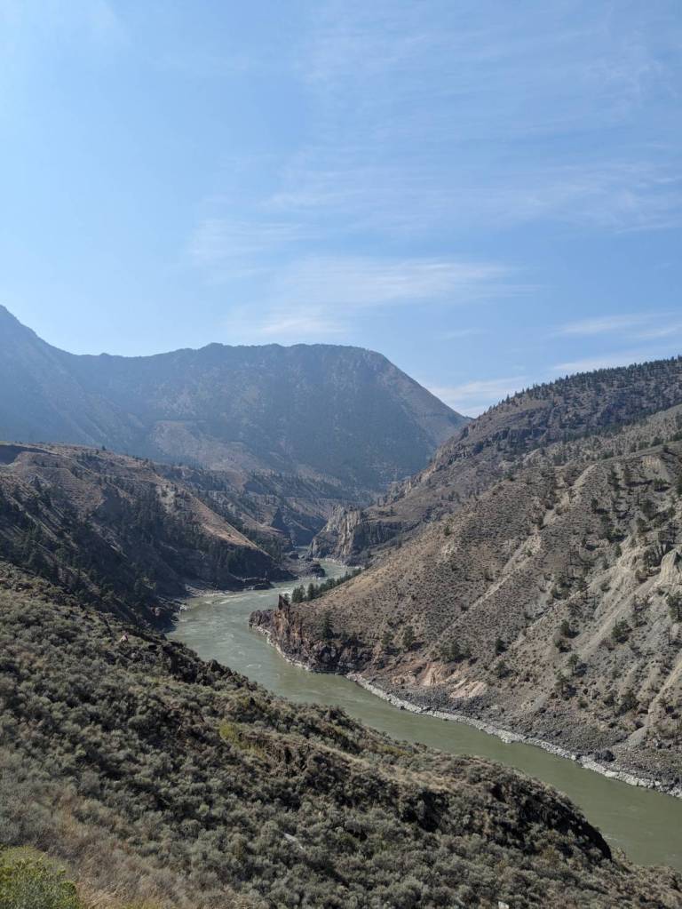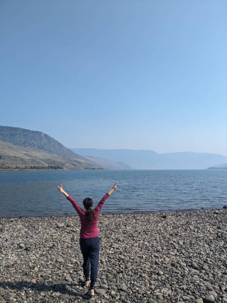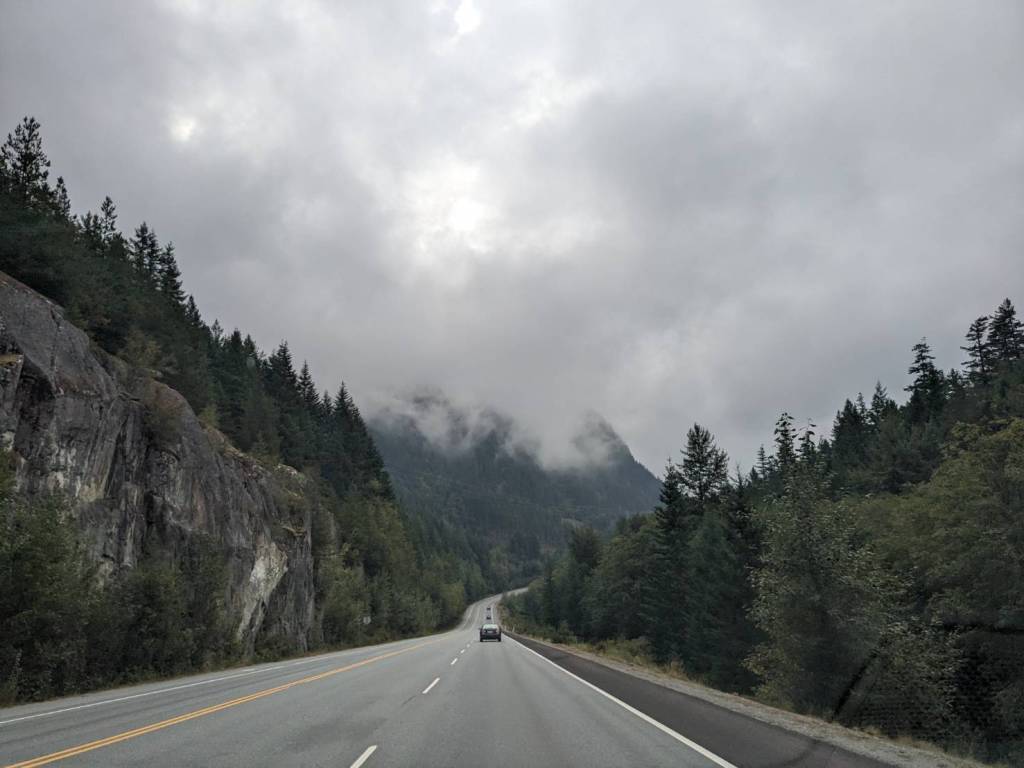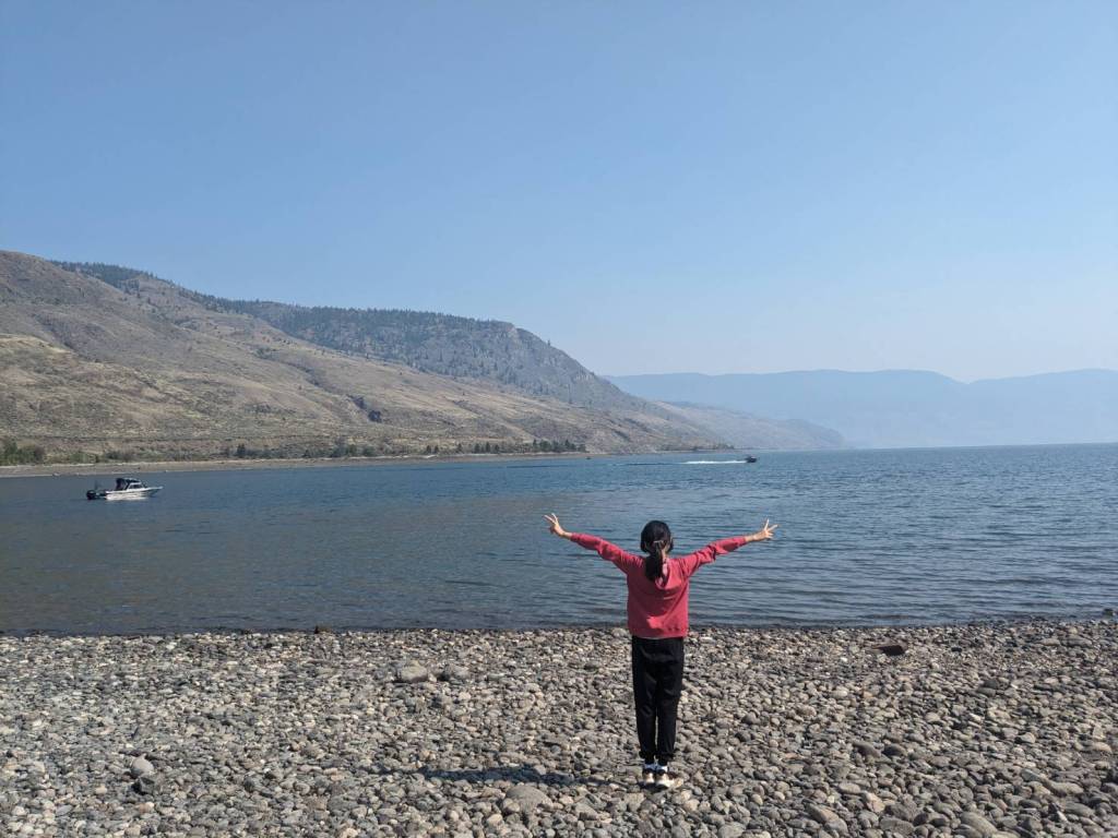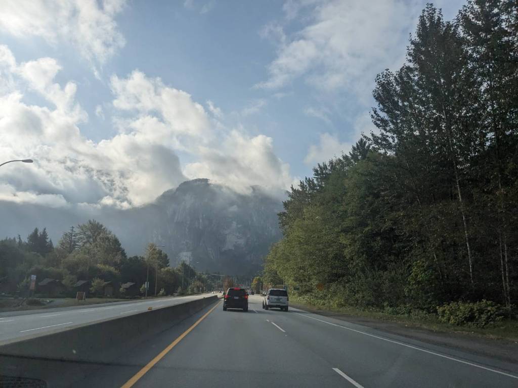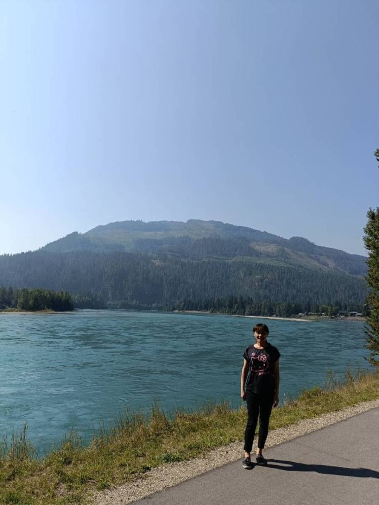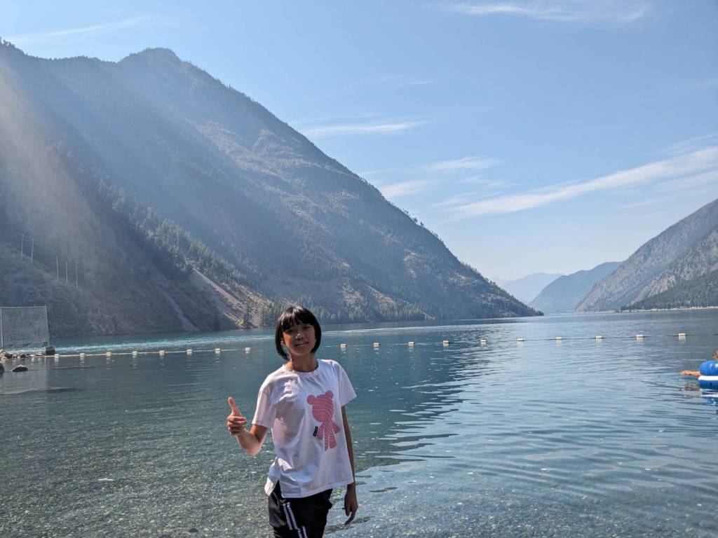 過了「薩蒙阿姆鎮」(Salmon Arm)後,感覺天空與群山清晰明亮許多,脫離野火霧霾的憂鬱後,感受到被大自然擁抱的喜悅。