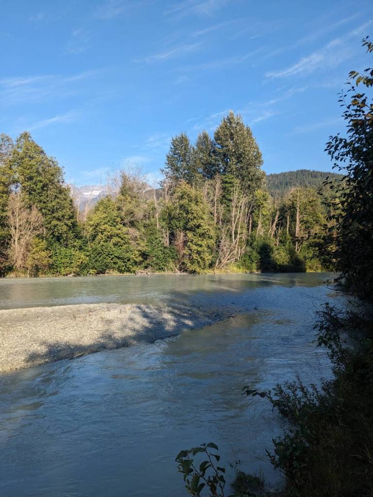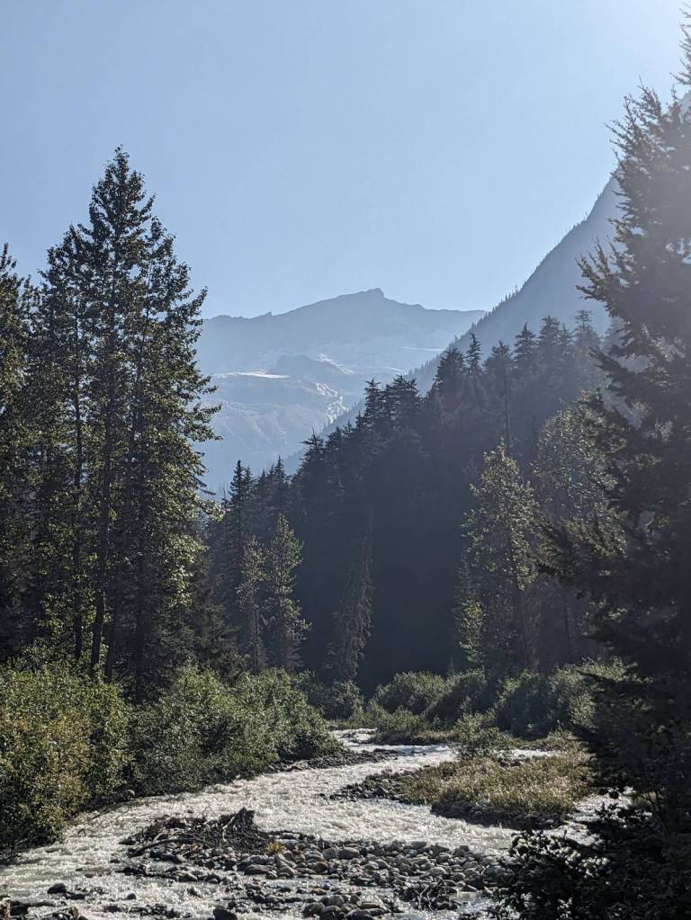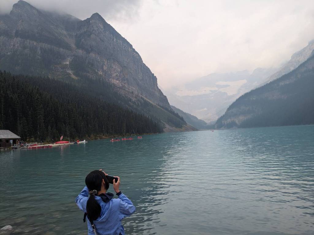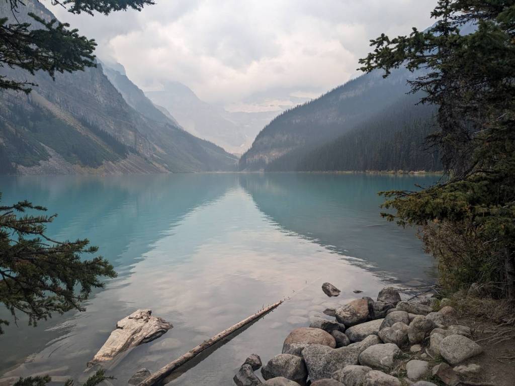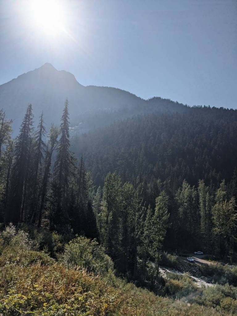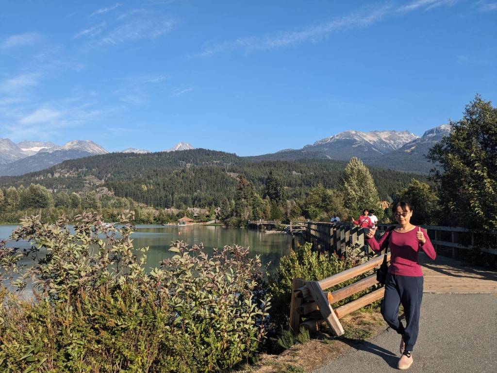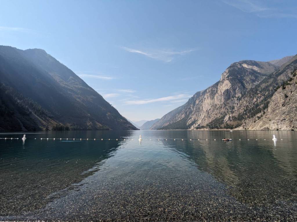 過了「薩蒙阿姆鎮」(Salmon Arm)後,感覺天空與群山清晰明亮許多,脫離野火霧霾的憂鬱後,感受到被大自然擁抱的喜悅。