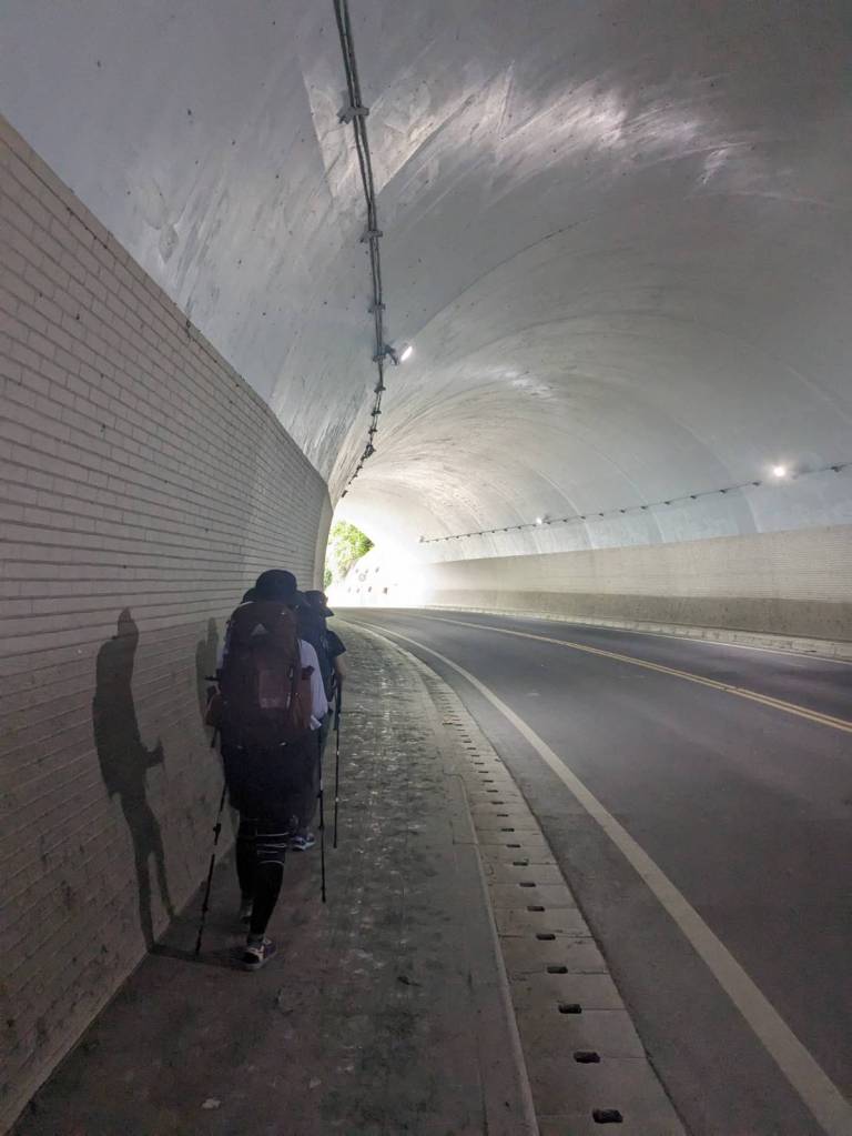 可以看到火車頭在上層山洞,而車尾在下層山洞。