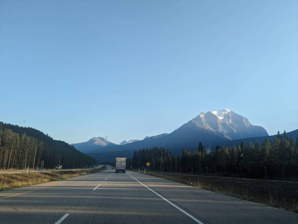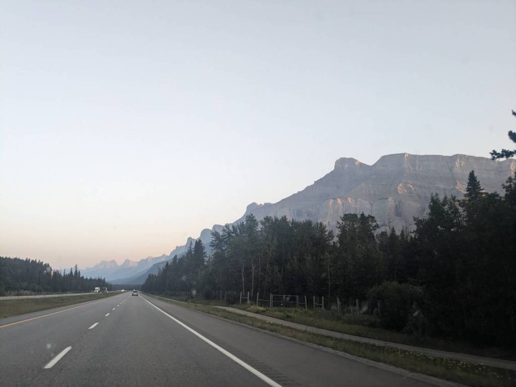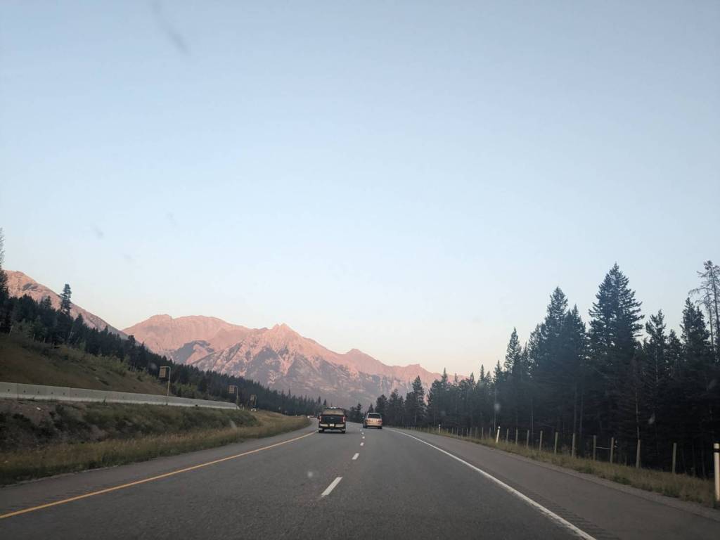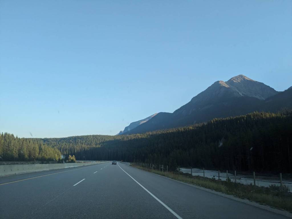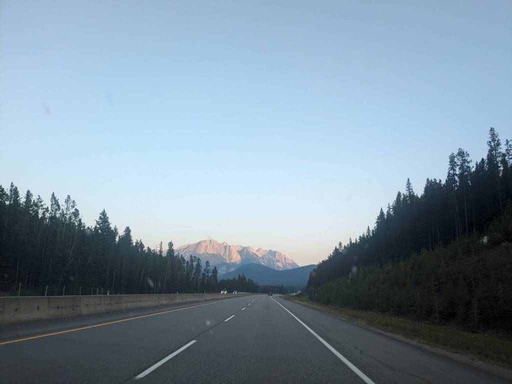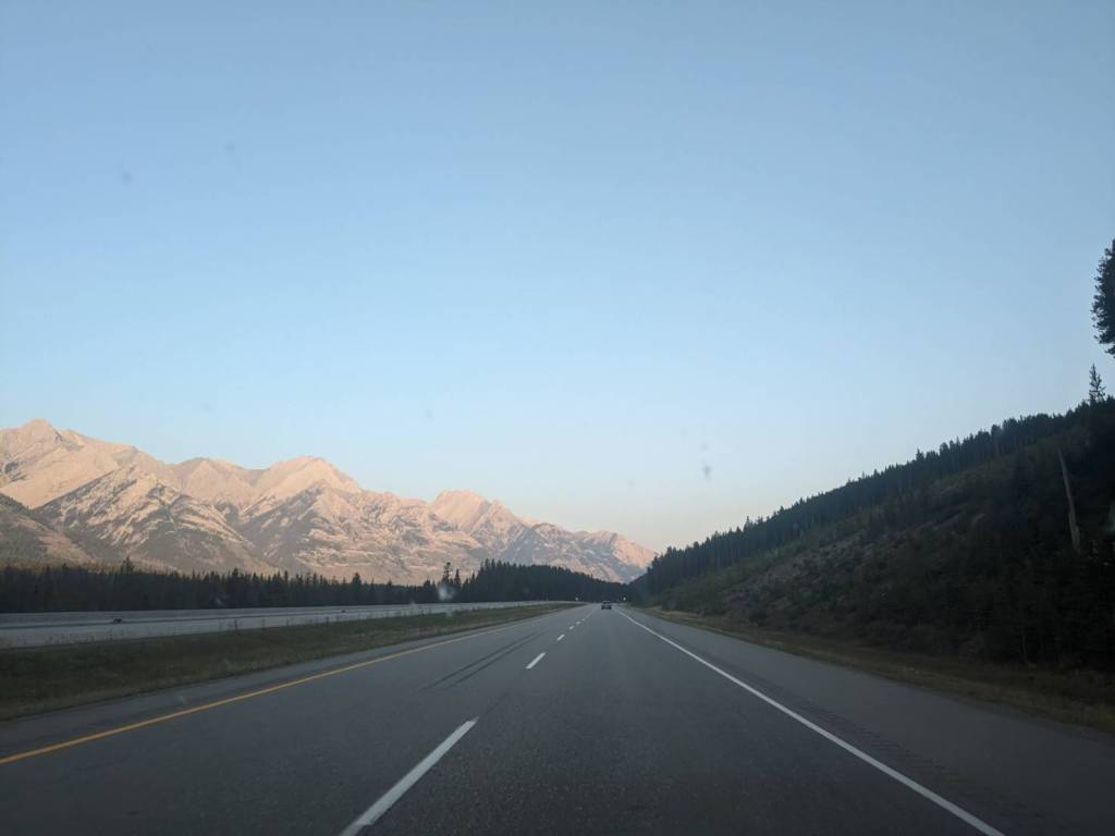 上午8點,太陽已經懸空高照,望向東方的目的地–「加拿大洛磯山脈」(Canadian Rockies)。