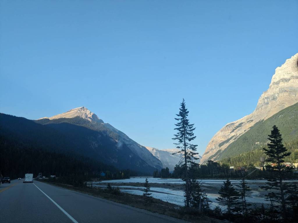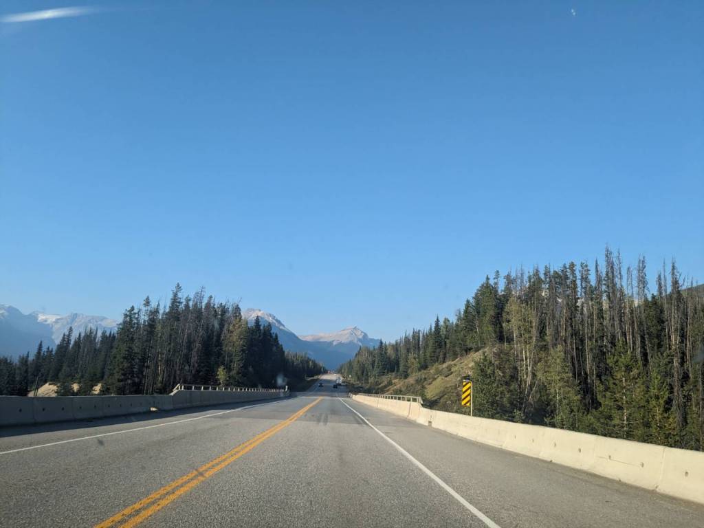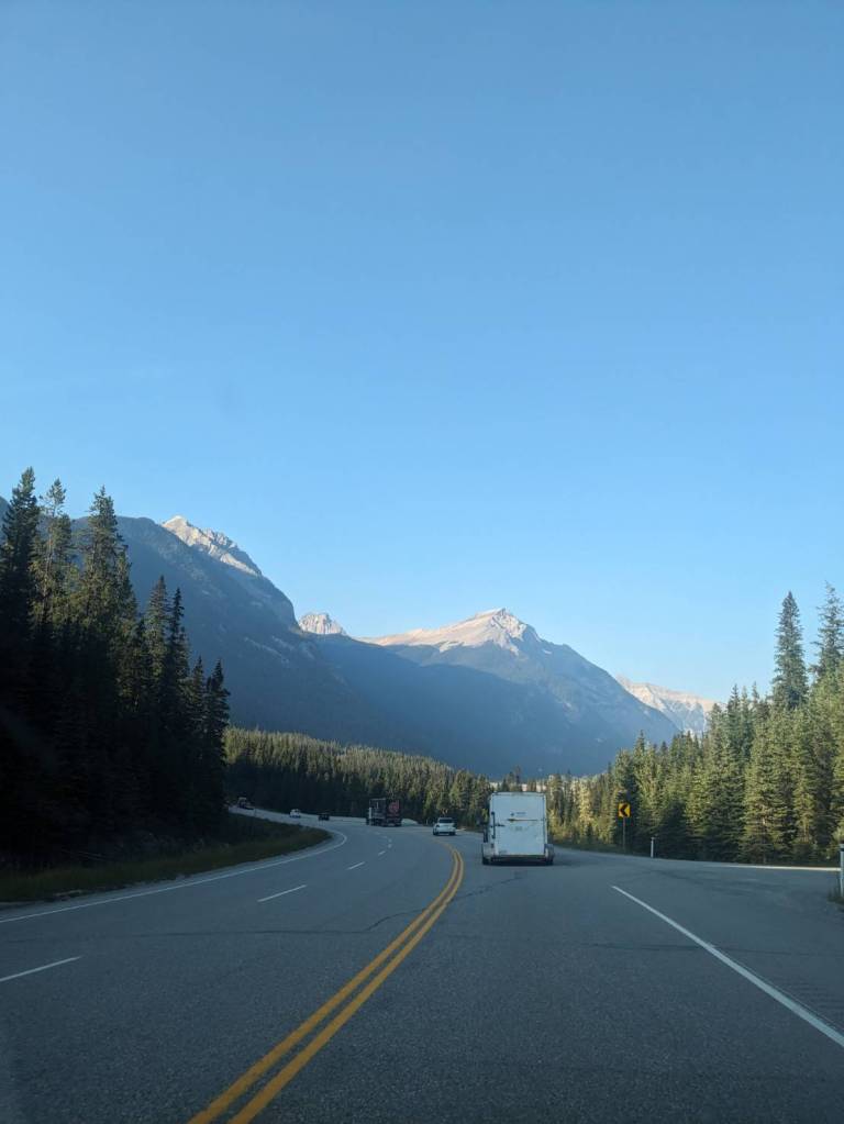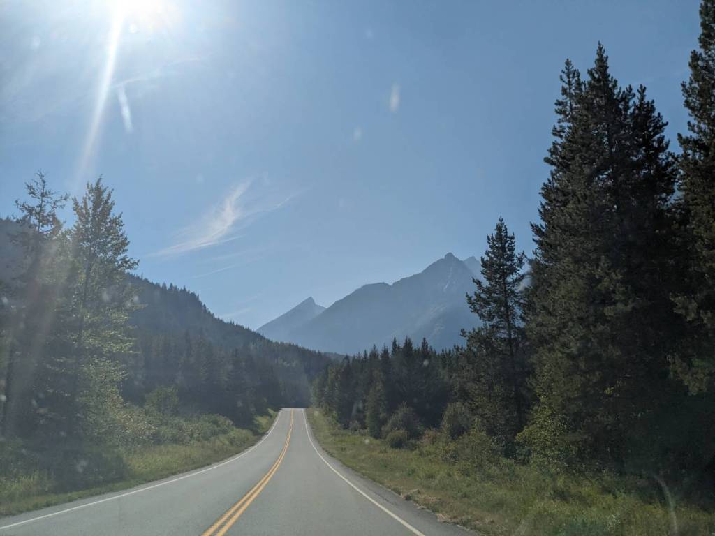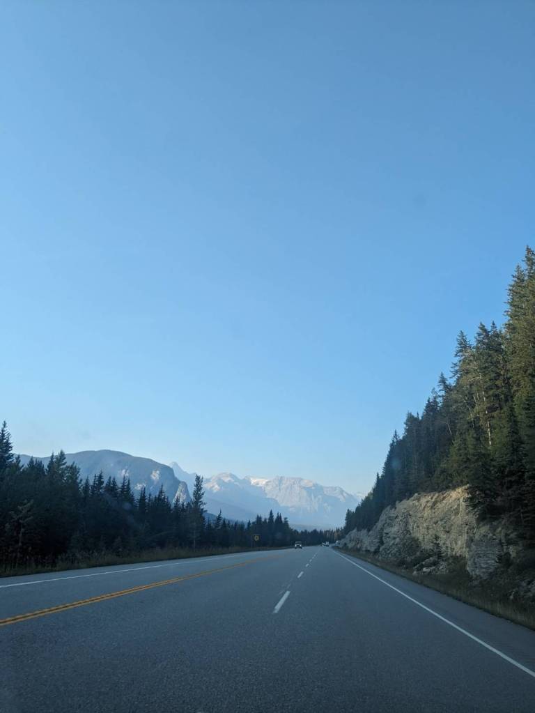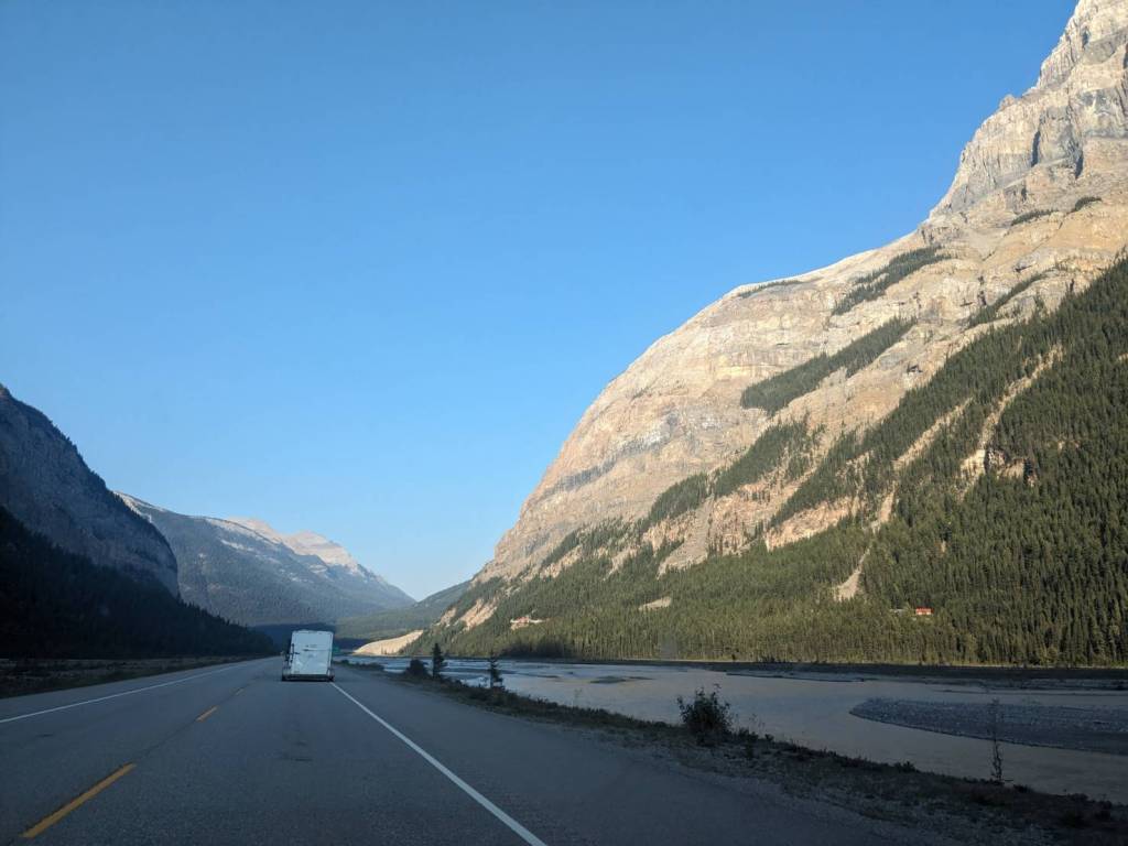上午8點,太陽已經懸空高照,望向東方的目的地–「加拿大洛磯山脈」(Canadian Rockies)。