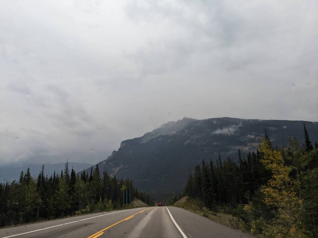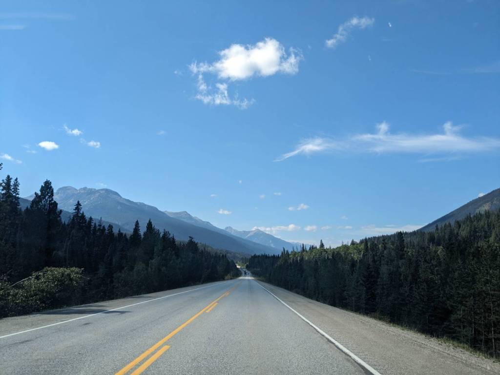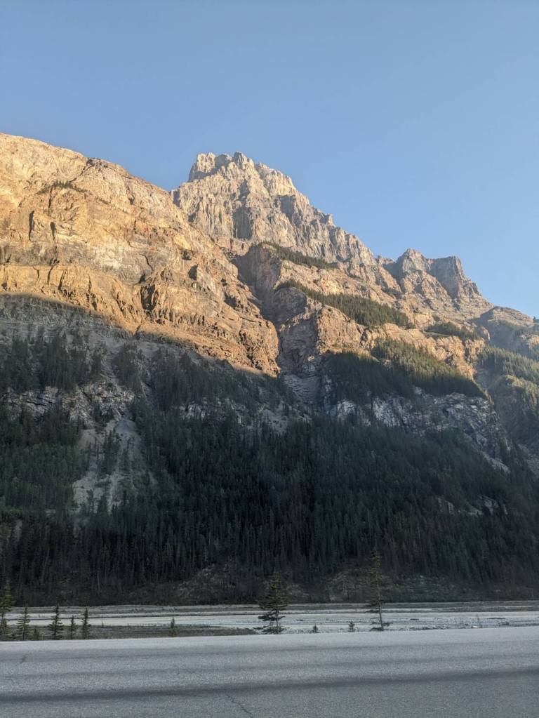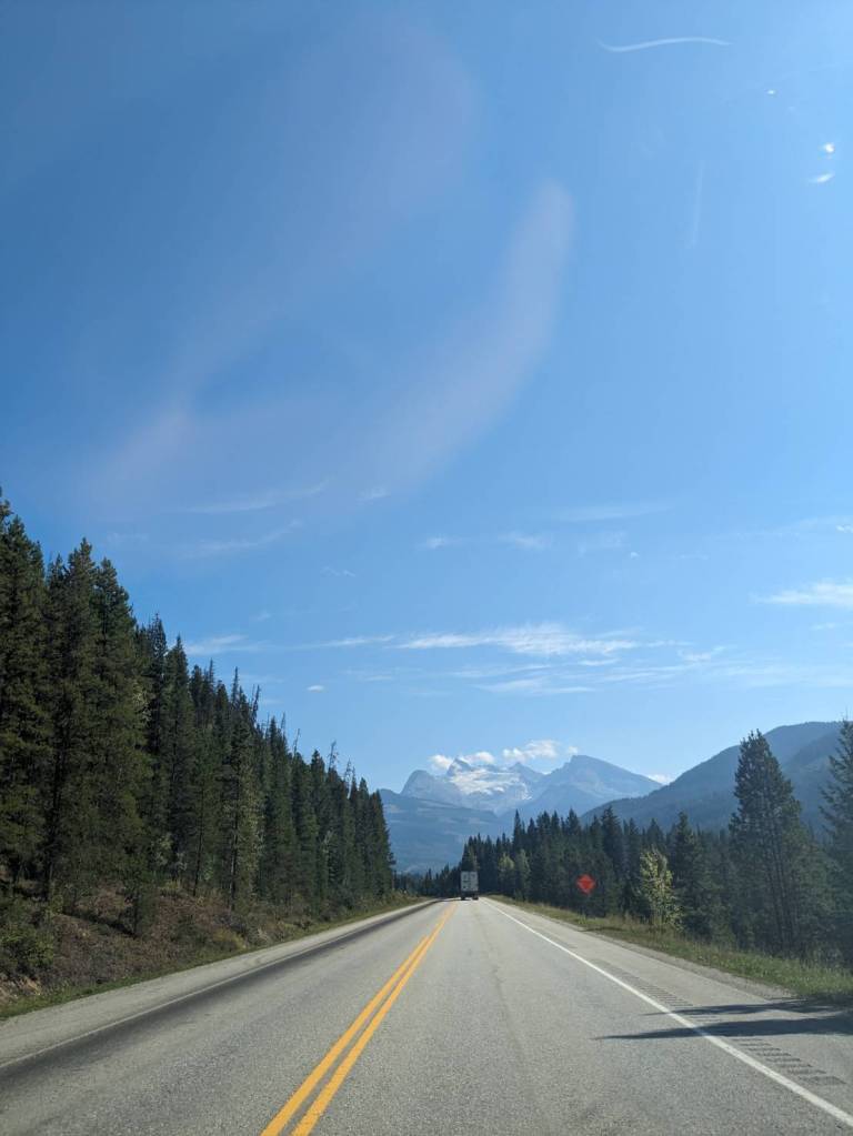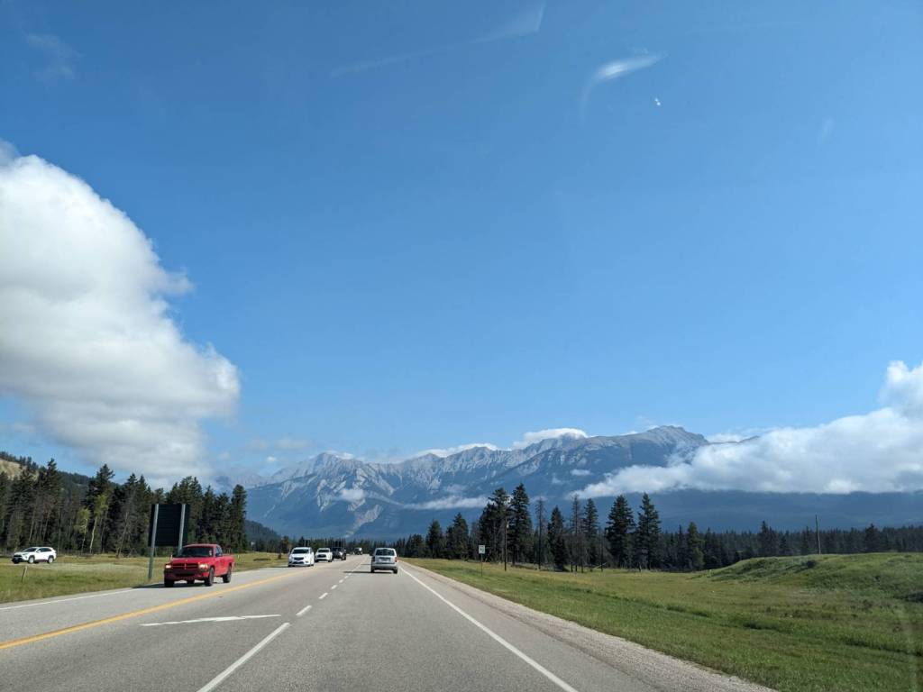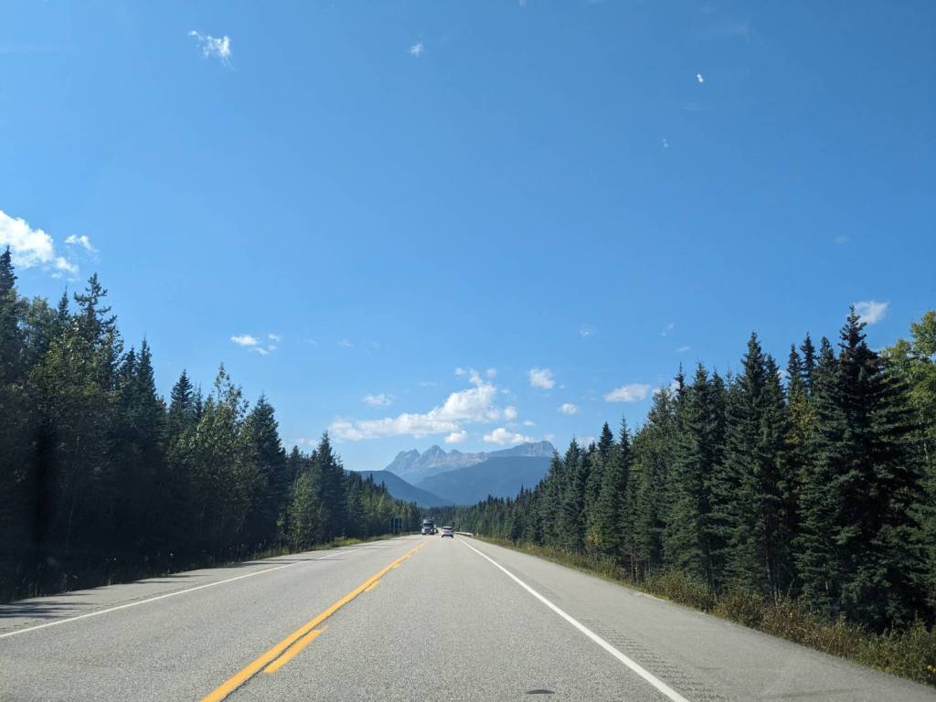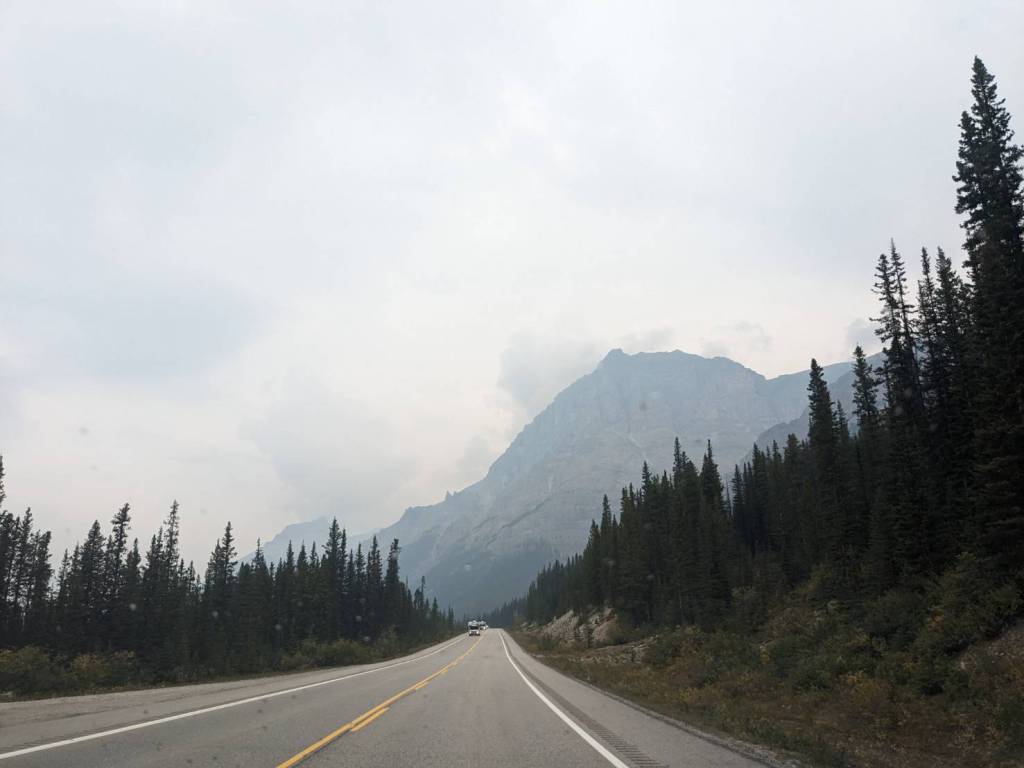 上午8點,太陽已經懸空高照,望向東方的目的地–「加拿大洛磯山脈」(Canadian Rockies)。