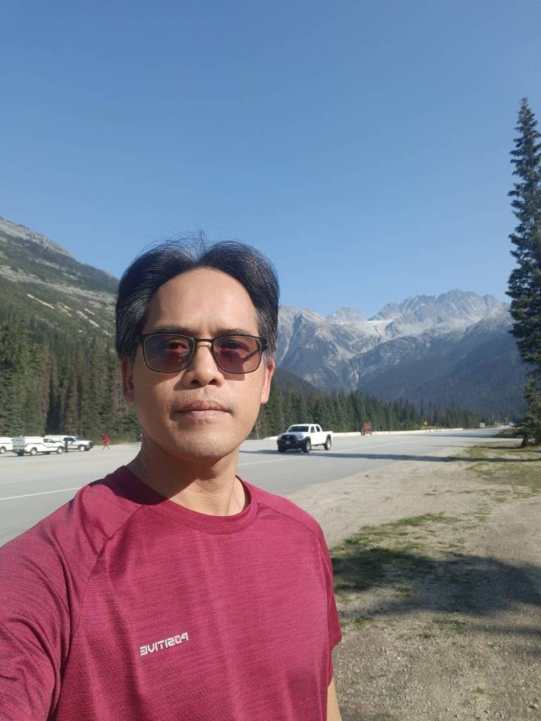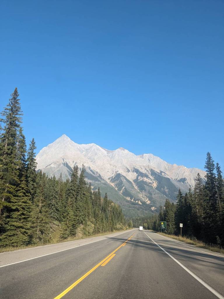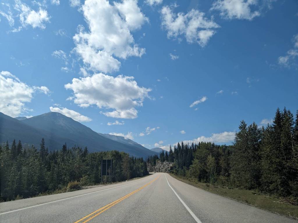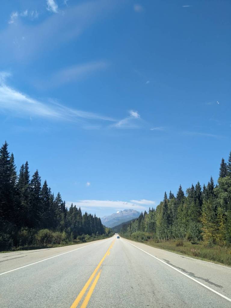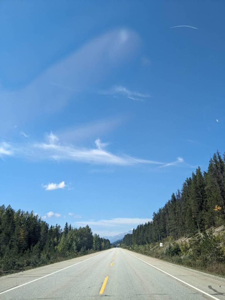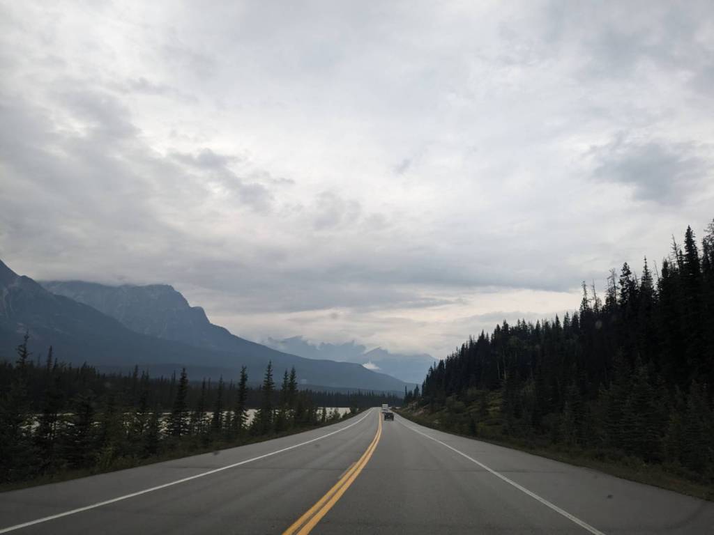 上午8點,太陽已經懸空高照,望向東方的目的地–「加拿大洛磯山脈」(Canadian Rockies)。