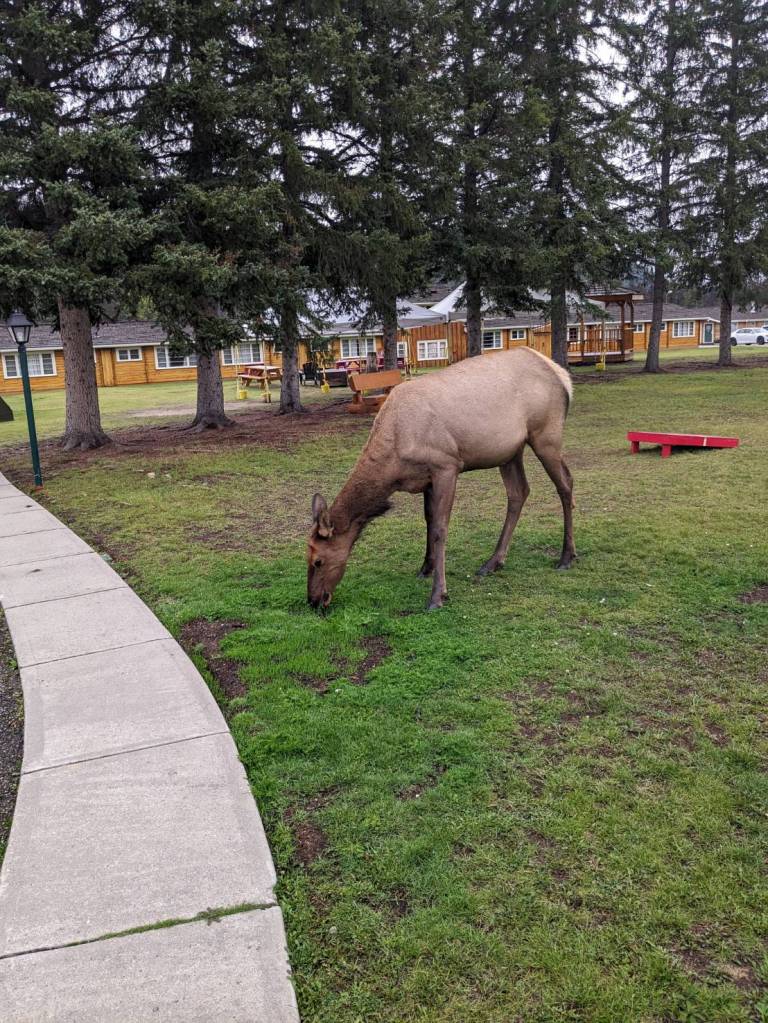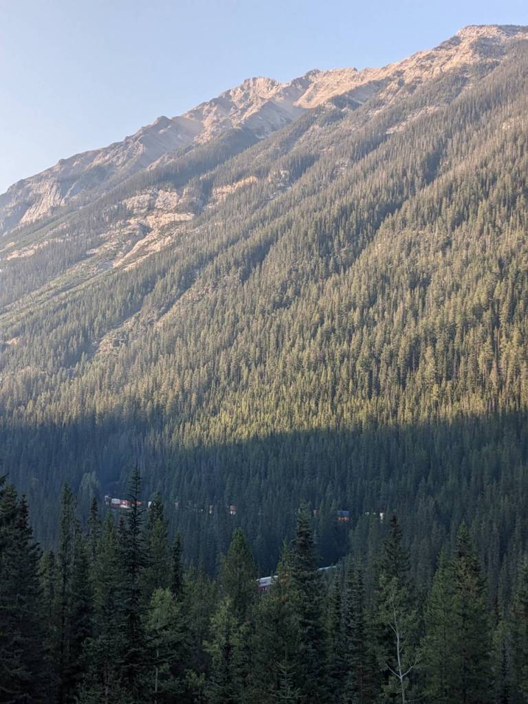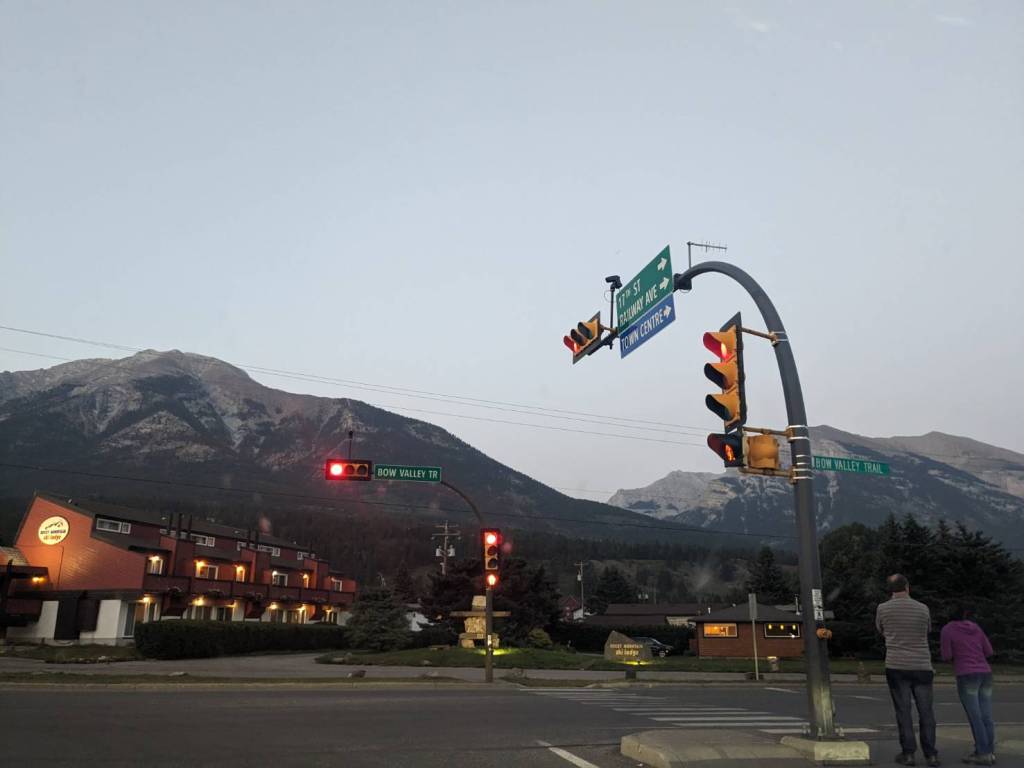 晚上8點,我們抵達「坎莫爾」(Canmore)市區,它被鐵路幹線分成兩半。