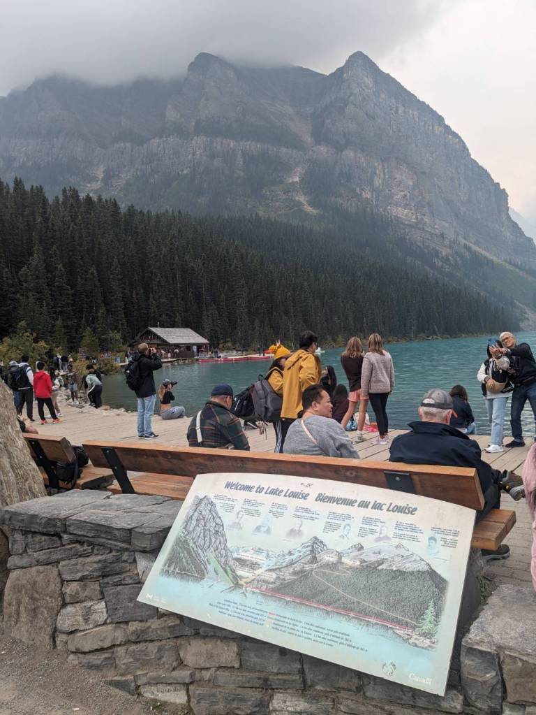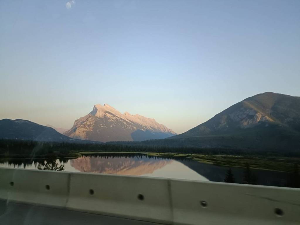 經過「朱砂湖觀景點」(Vermilion Lakes Viewpoint),可以看見雄偉的「藍道山」(Mount Rundle),這裡明天會過來停車參觀。