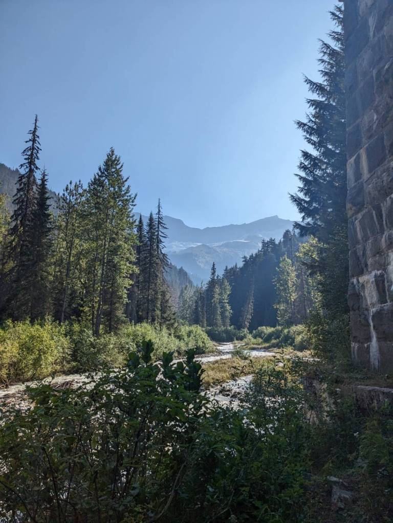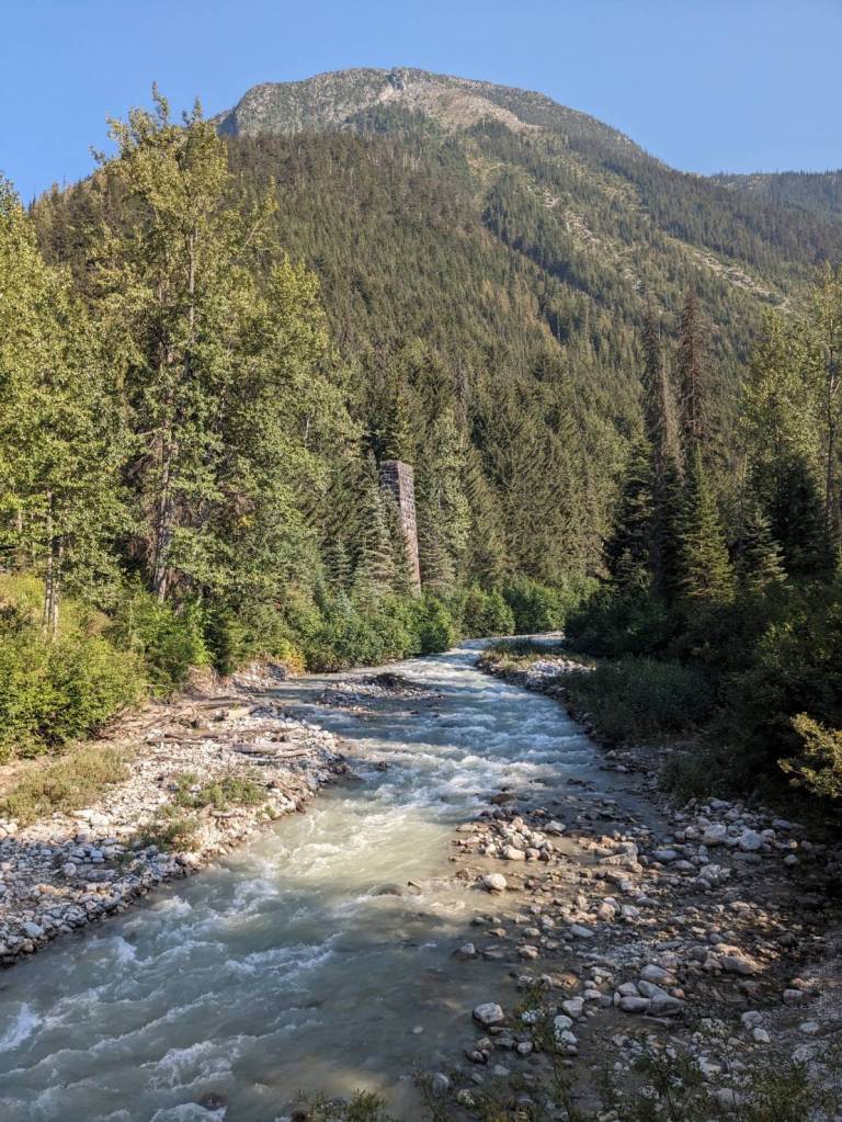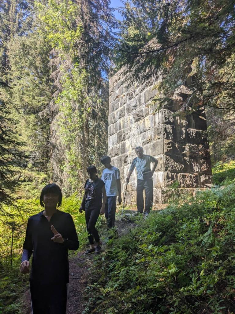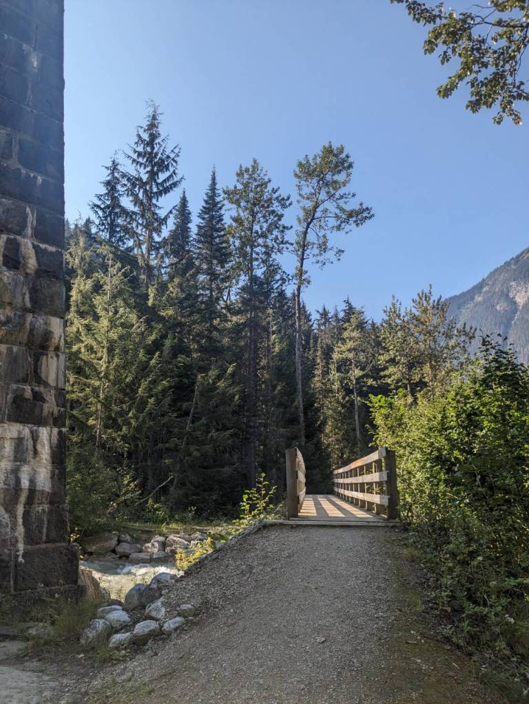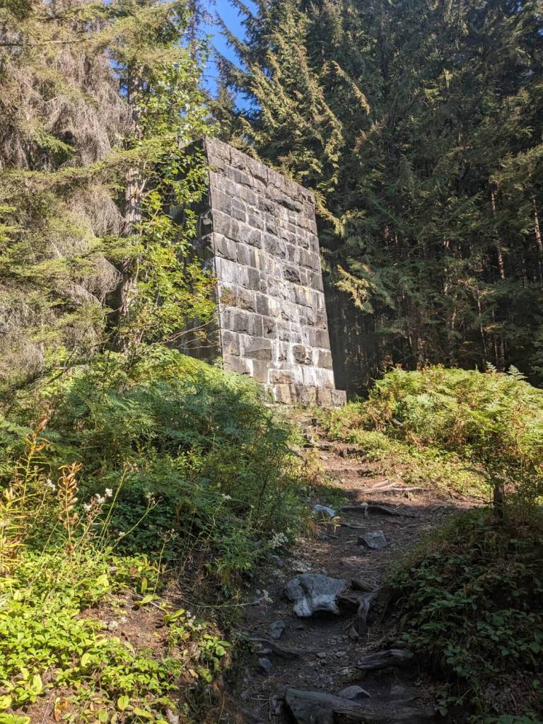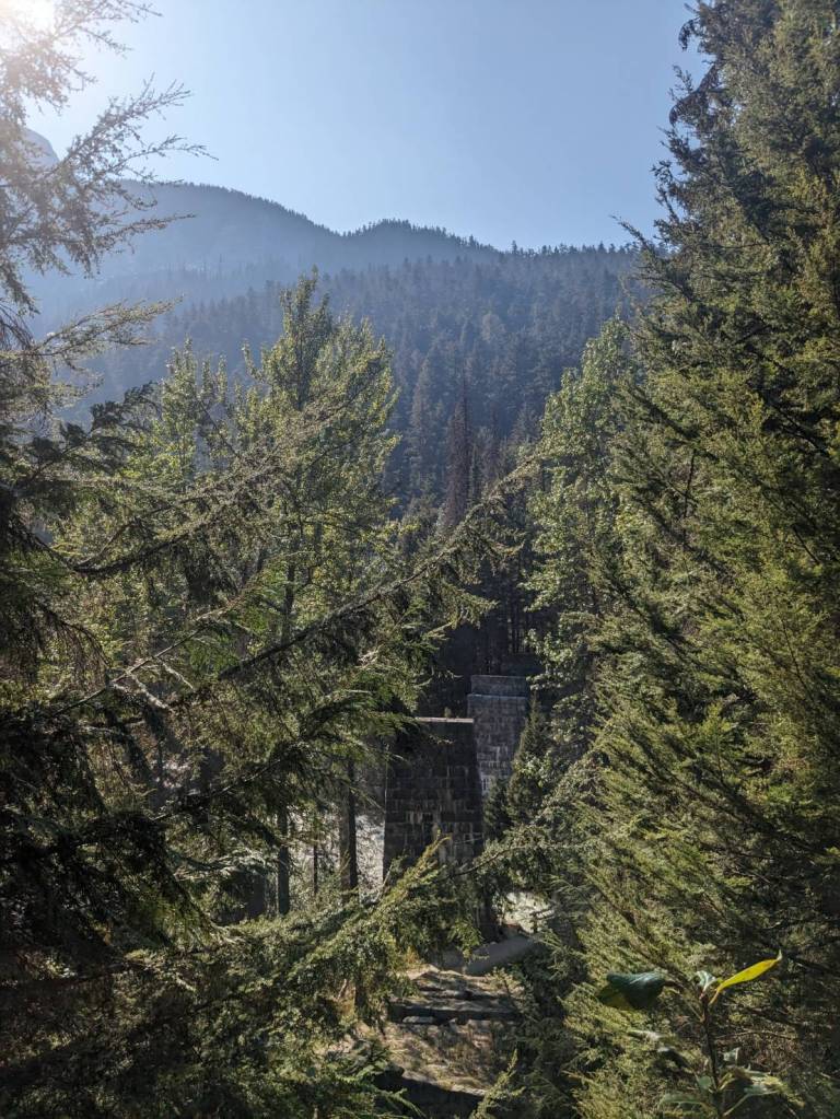 這些是曾經支撐鐵路橋的石柱,「加拿大太平洋鐵路」以「8」字形兩次穿過小溪,以便火車可以在較緩的斜坡上爬過山口,其風格類似於「幽鶴國家公園」(Yoho National Park)的「踢馬山口」(Kicking Horse Pass)的螺旋隧道。