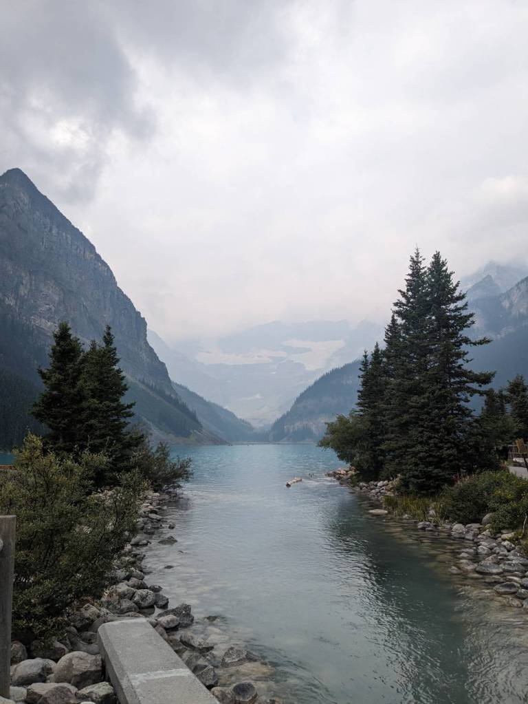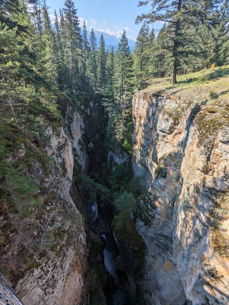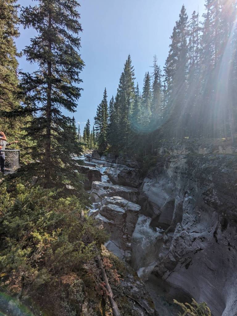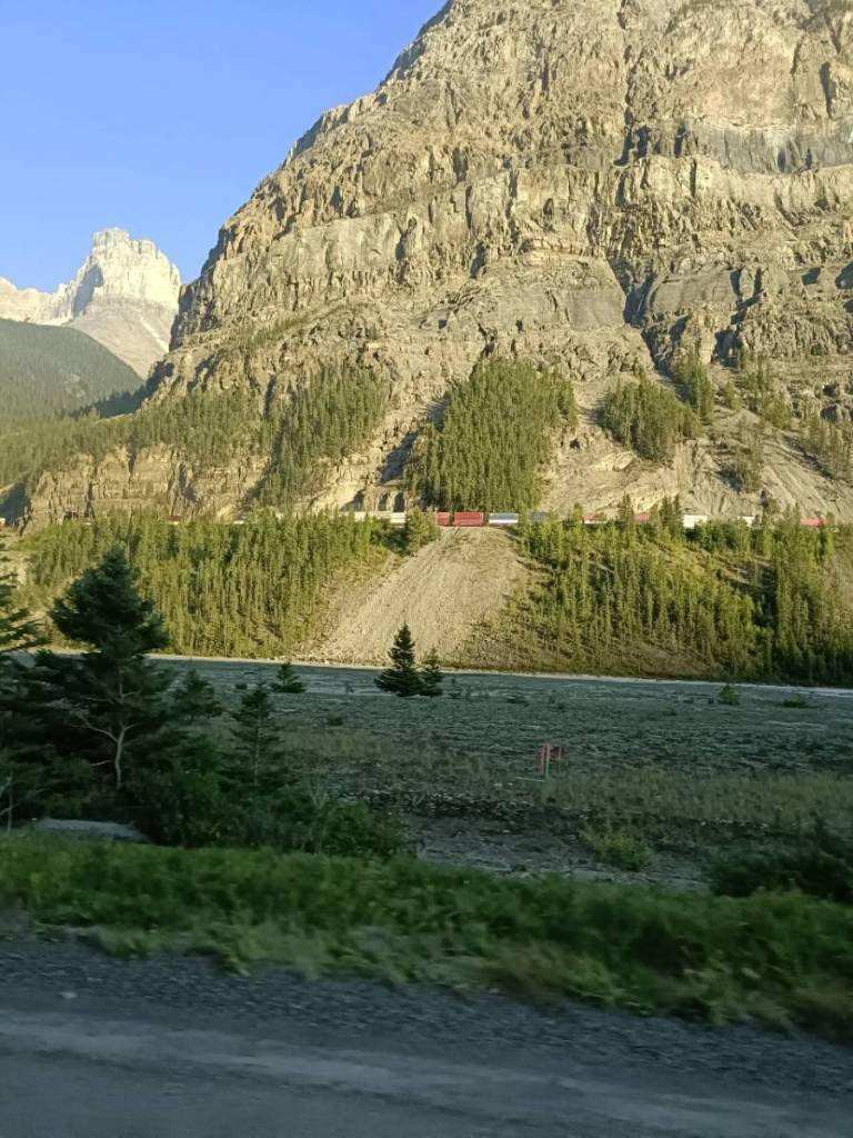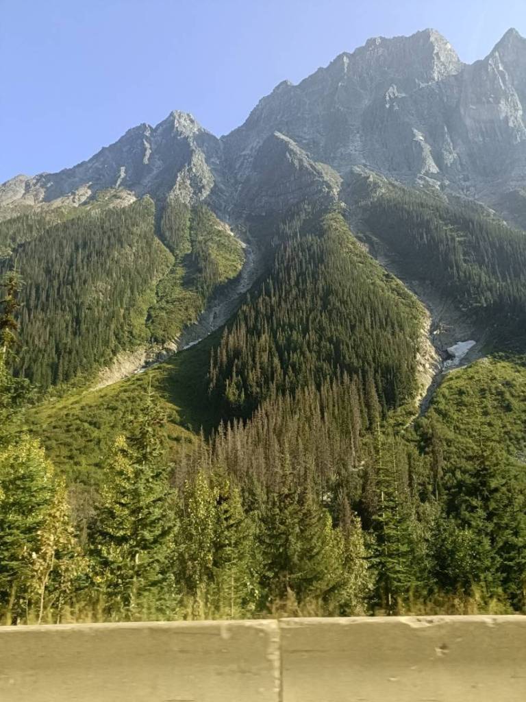 八月的洛磯山脈一片綠意盎然,實在難以想像嚴冬時的銀白世界,也由於這裡的山勢實在太陡峭了,為了防止突然地雪崩傷人,初冬時,加拿大政府都會派出軍隊,在尚未雪崩的時候用大砲先射擊幾下,讓其適時雪崩。