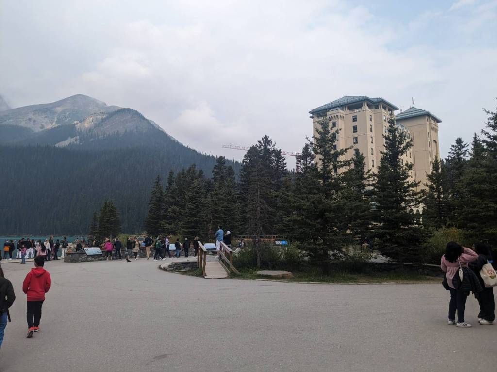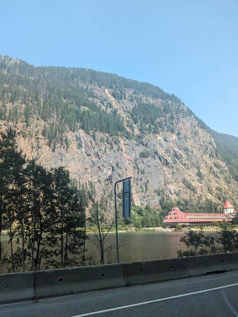 中午12點,開車經過「三谷峽湖」(Three Valley Lake),遠遠看見顯目兀立山與湖泊之間的「三谷湖城堡飯店」(Three Valley Lake Chateau)。