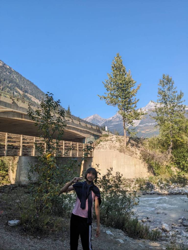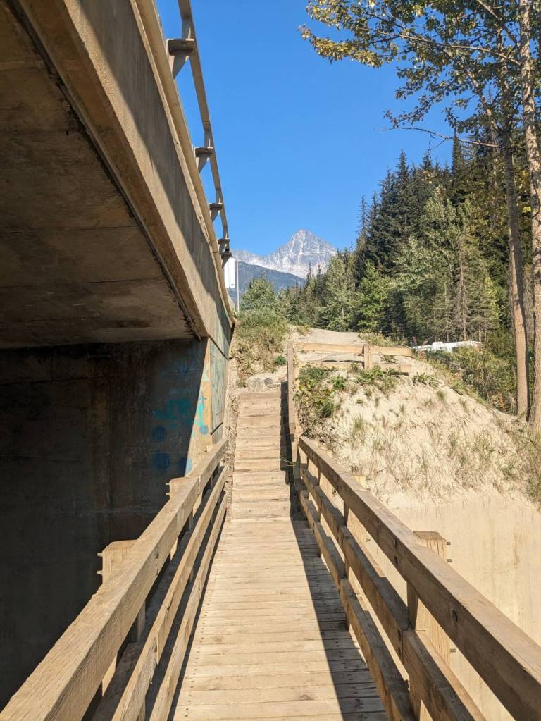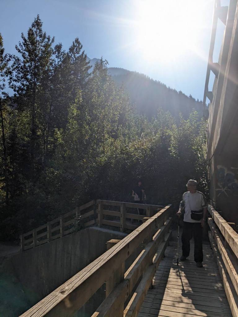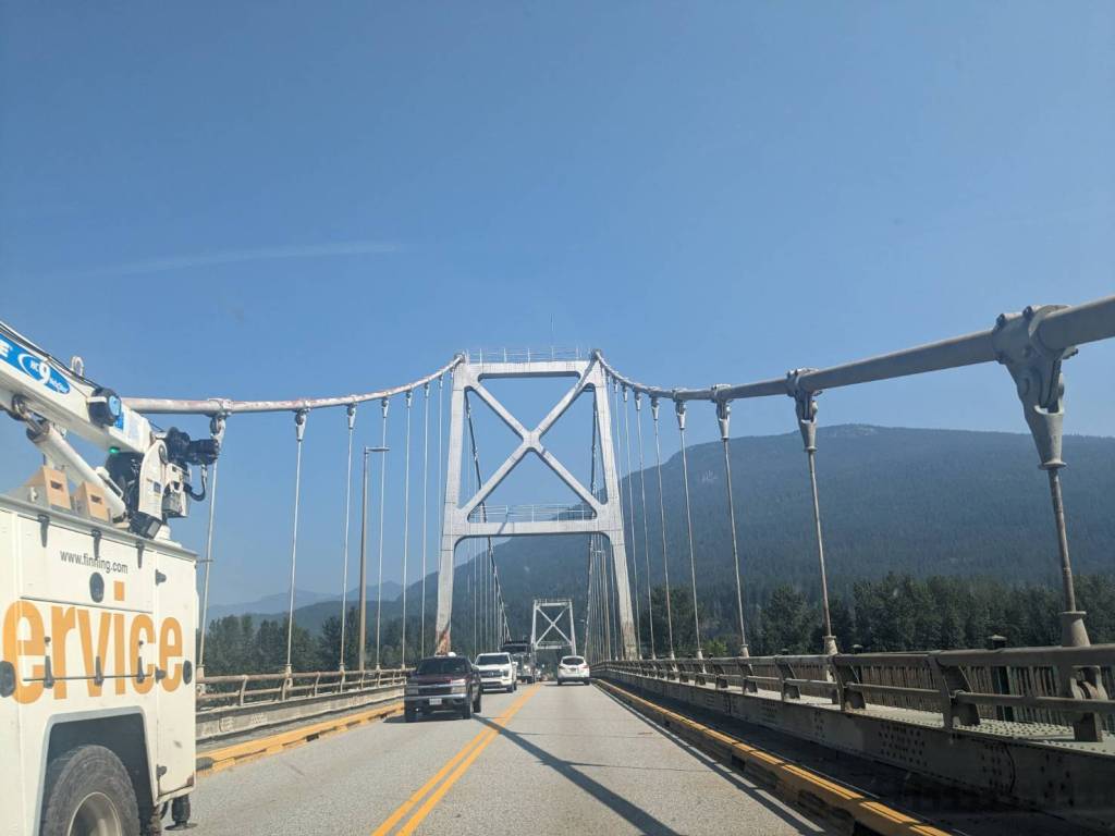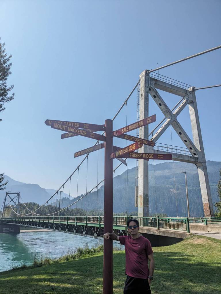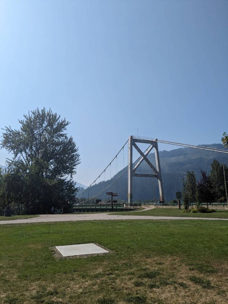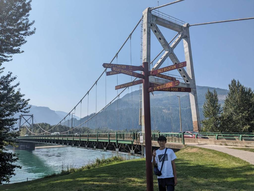 稍早經過的「雷夫爾斯托克吊橋」(Revelstoke Suspension Bridge)。