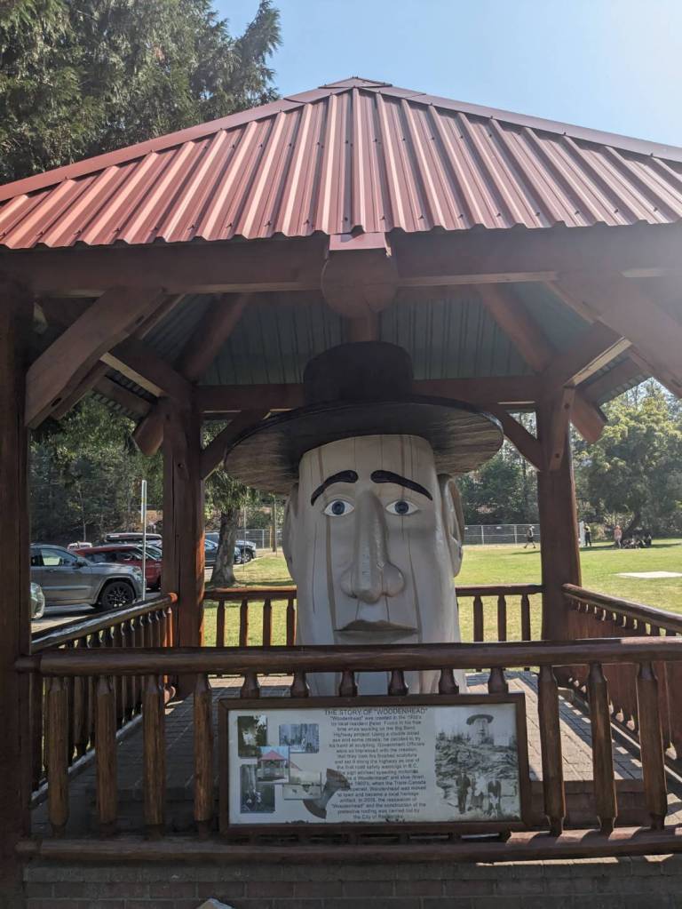 「木人頭」的由來是當地居民Peter Fuoco在1930年代在高速公路工作期間利用空閒時間創作的,他使用一把雙刃斧和一些鑿子來嘗試雕刻,由政府將完成的雕塑放置在高速公路沿線,作為「BC省」首批道路安全警告之一;該標誌建議超速行駛的駕駛人「不要成為木頭人」或減速。1960年代,橫貫加拿大的高速公路開通後,「木人頭」被搬到鎮上,成為當地的文化遺產,2005年,「木人頭」被再次修復並建造屋頂來保護它。
