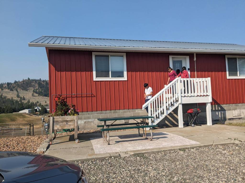 出發前再跟落腳一晚的小屋合影留念,但我們住的是照片看不到的地下室。