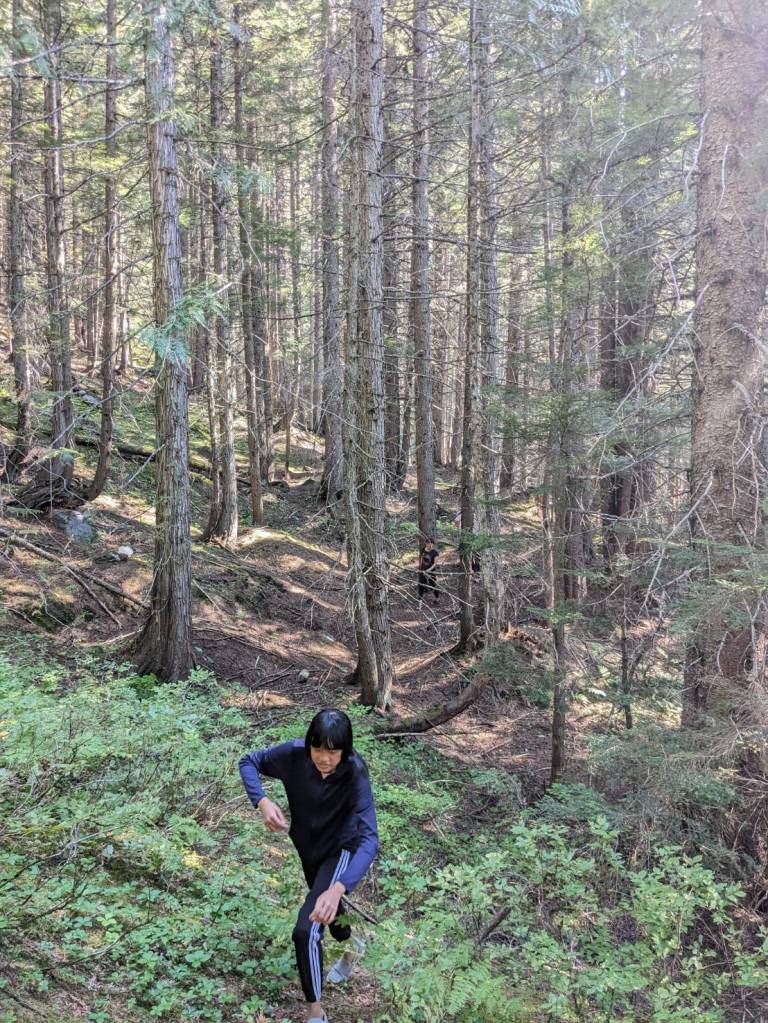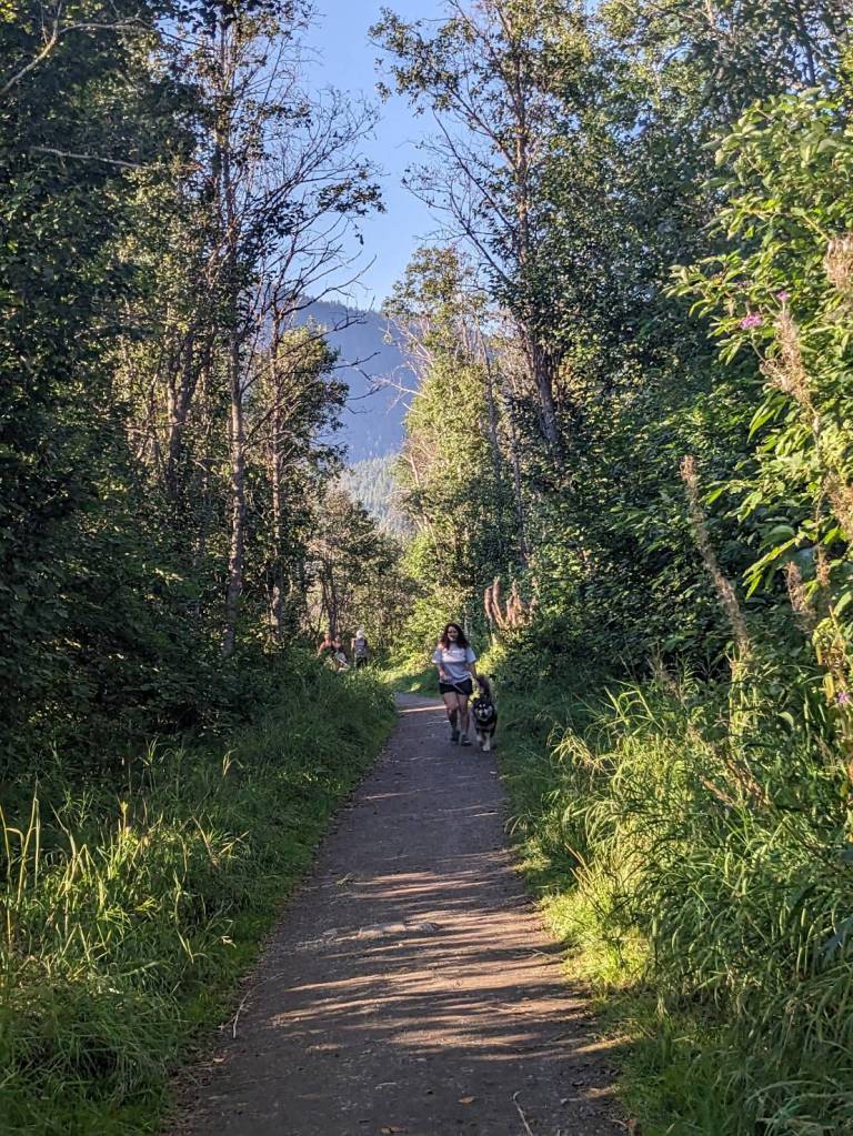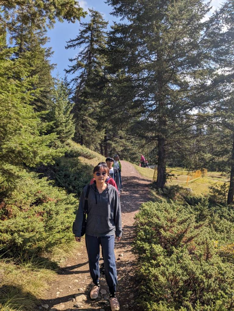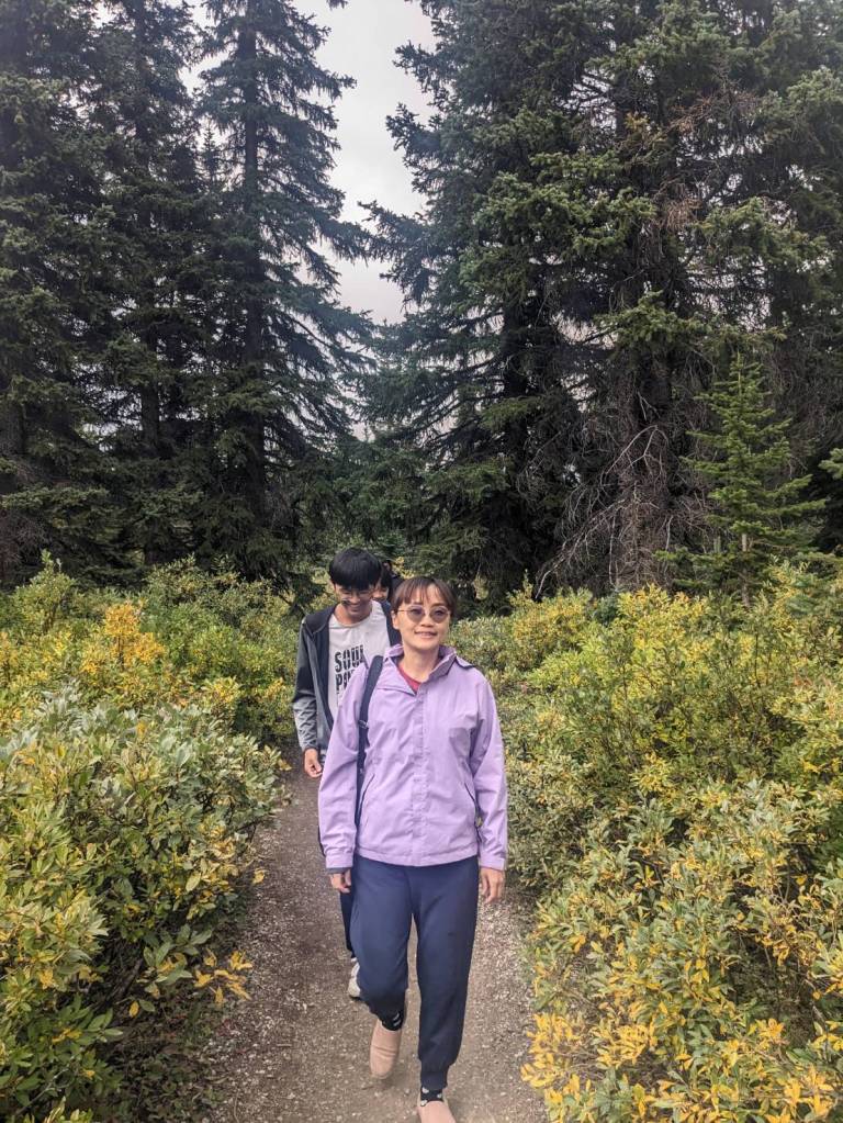 在「冰川國家公園」(Glacier National Park)「盧波布魯克步道」(Loop Brook Trail)的樹林間漫步。