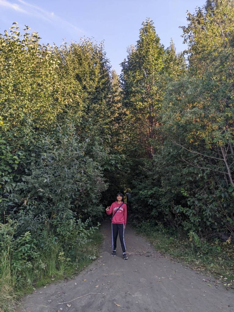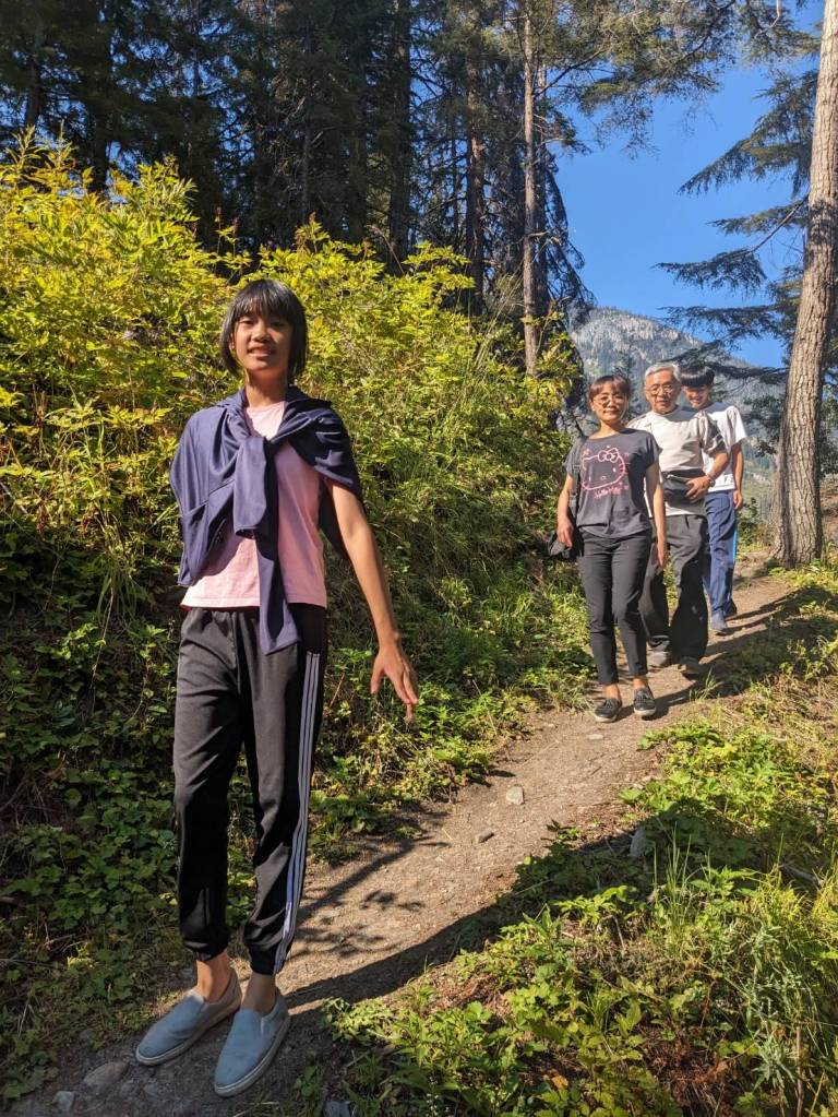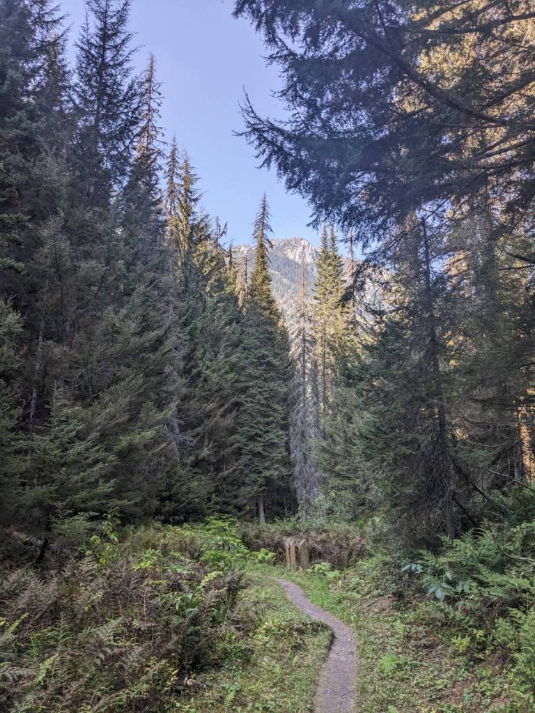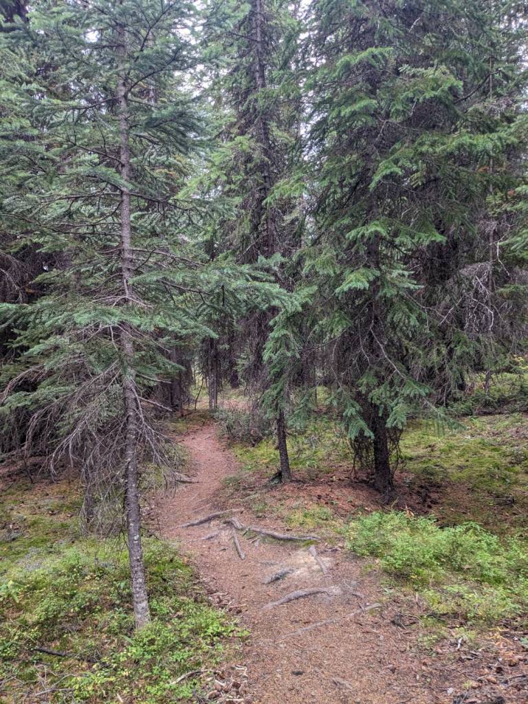 在「冰川國家公園」(Glacier National Park)「盧波布魯克步道」(Loop Brook Trail)的樹林間漫步。