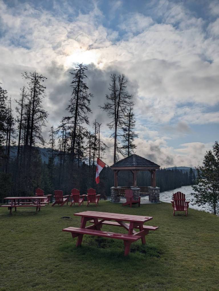 走到這裡,跨過木橋越過小溪後即到一處露營地,此處即是返程處,而露營需網上註冊登記,付23加幣可住一晚。