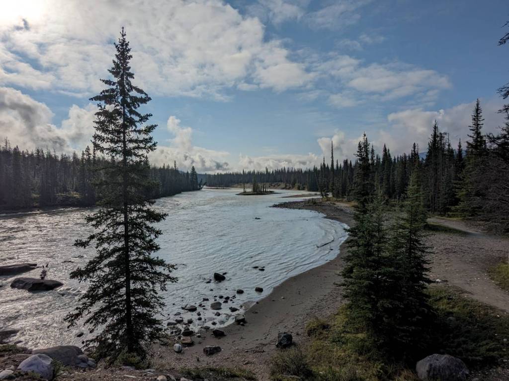 開始轉向「班夫」了,換成美麗的「弓河」(Bow River)陪著我們並肩前行。