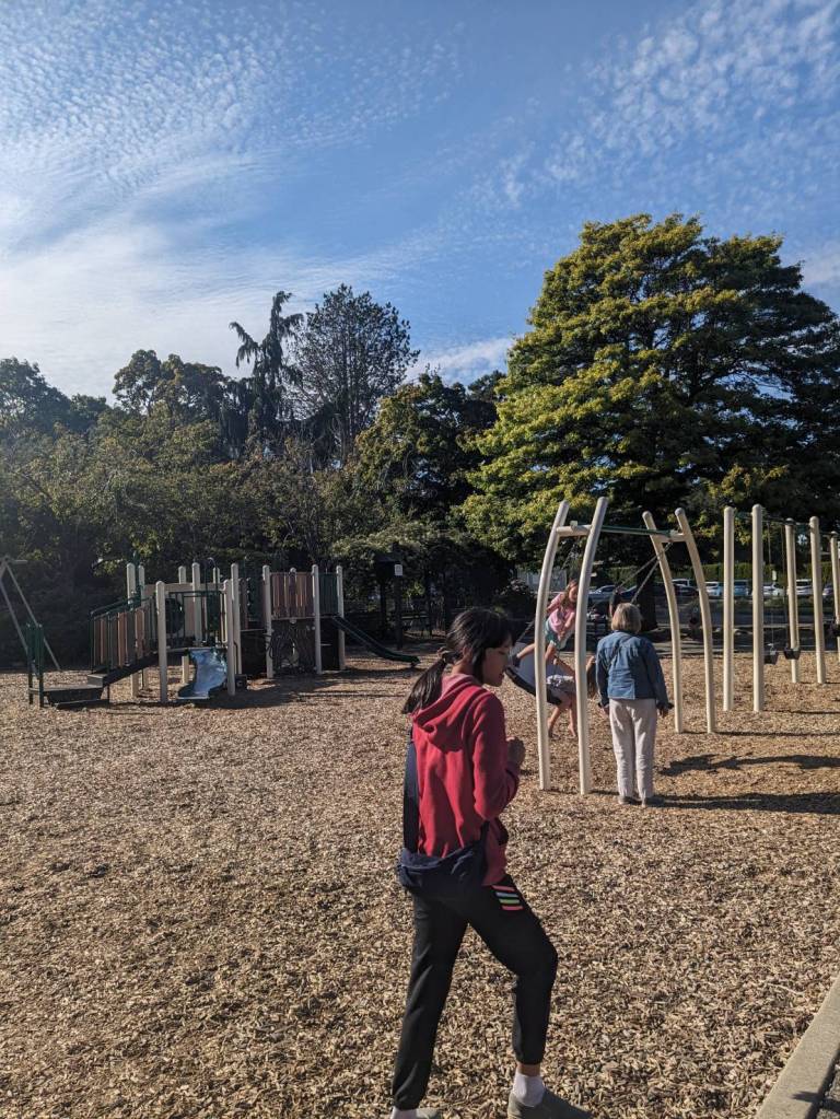 相對於媽媽跟女兒的活力,庭睿他坐車坐累了。