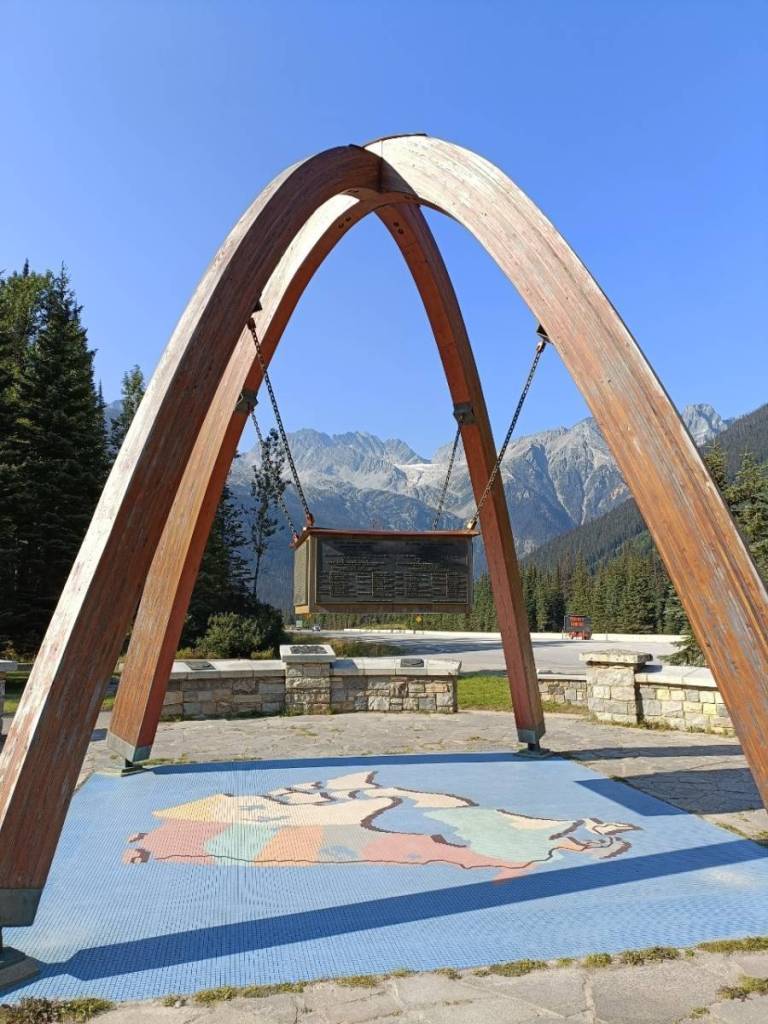 不到10分鐘,來到「羅傑士峽道紀念拱門」(Rogers Pass Memorial Park),難得經過就進來看一下吧!這裡也是「楓葉一號」公路的最高點,海拔1,327公尺。